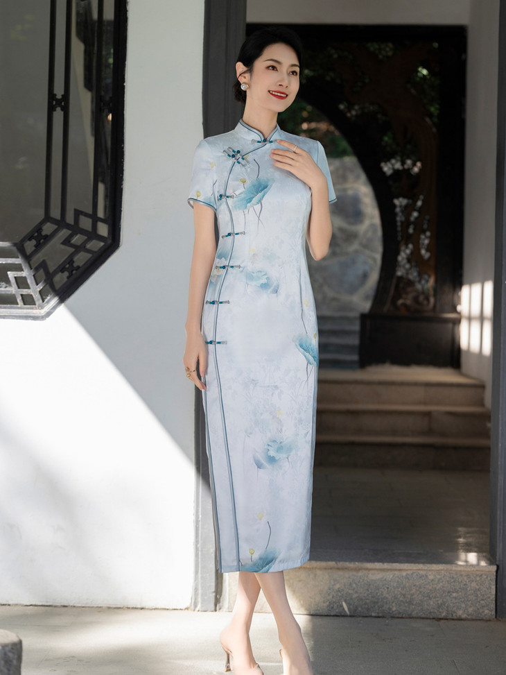 冬季加绒加厚保暖旗袍大摆裙,日常改良优雅大码修身显瘦减龄XS857
