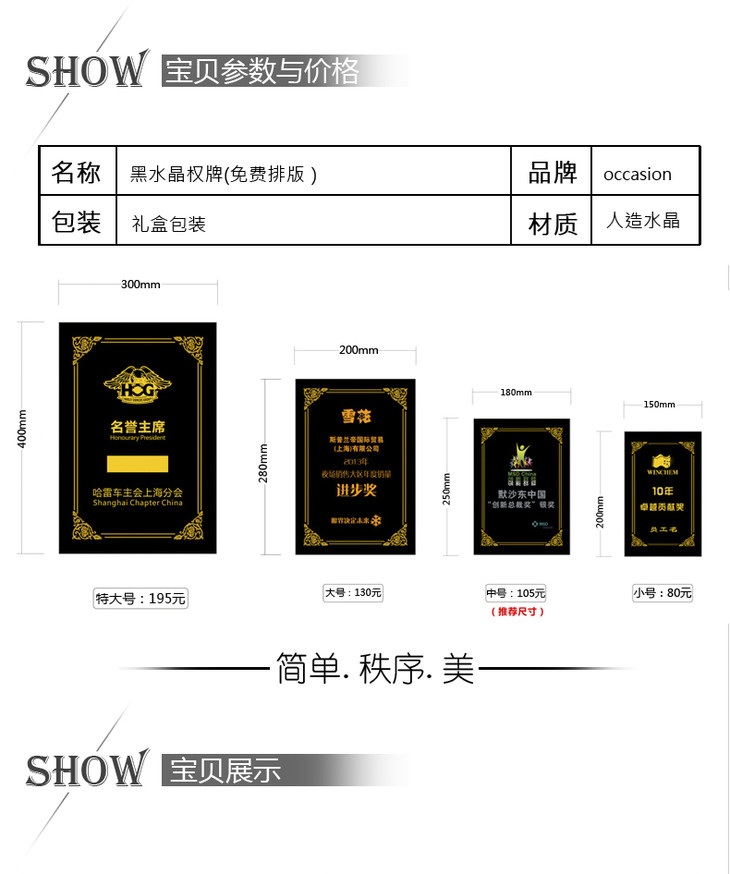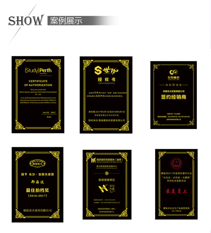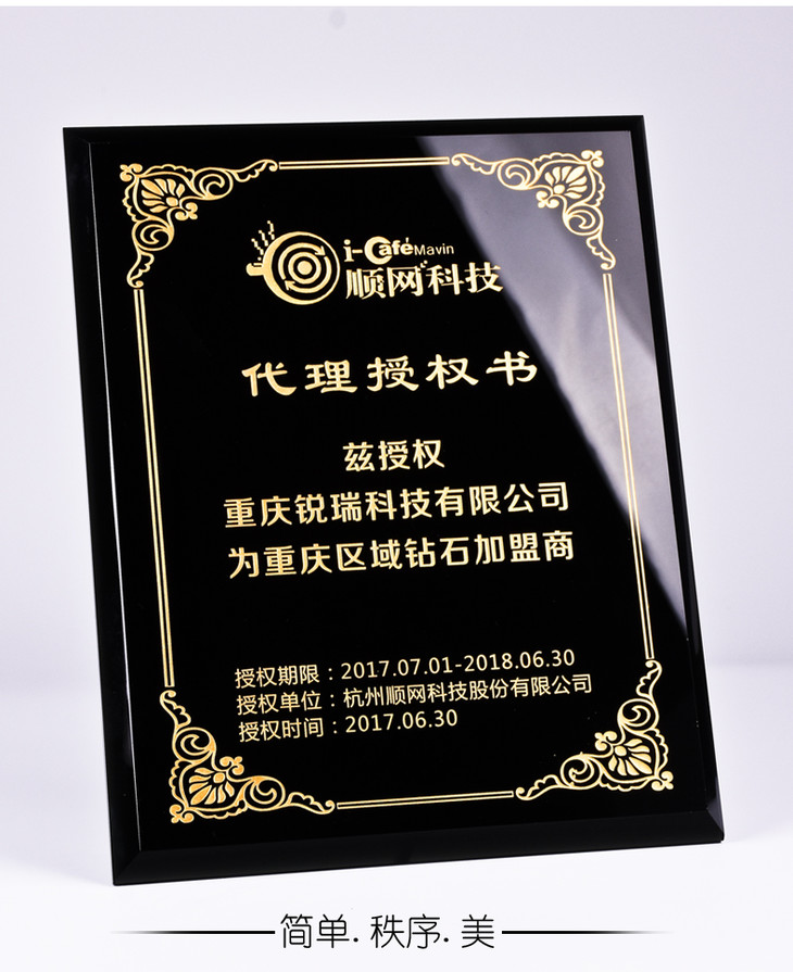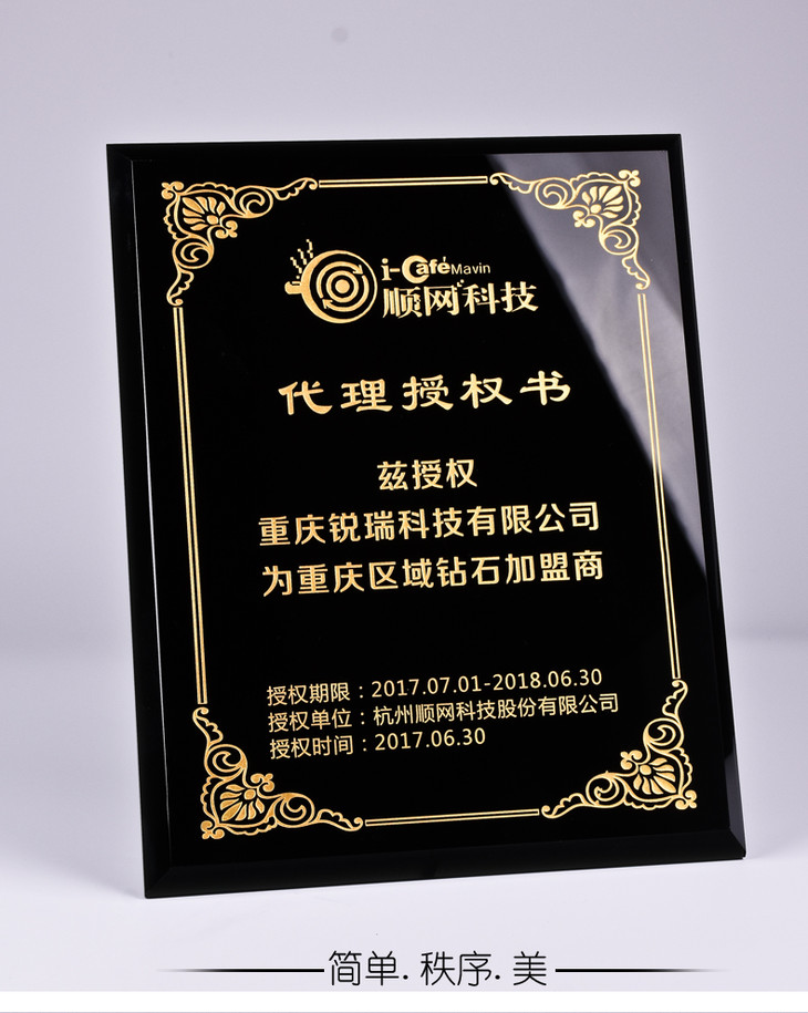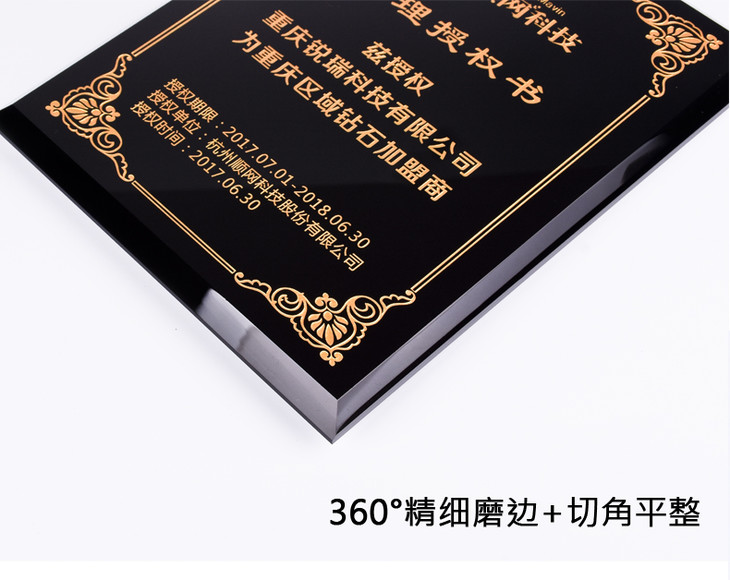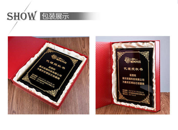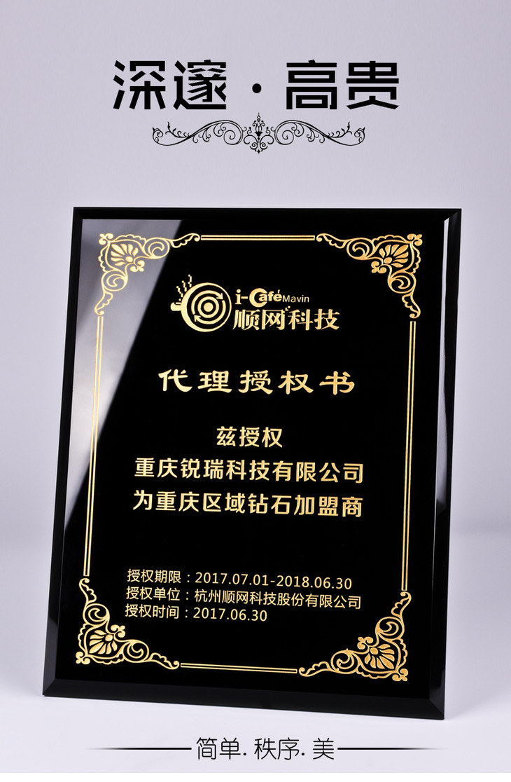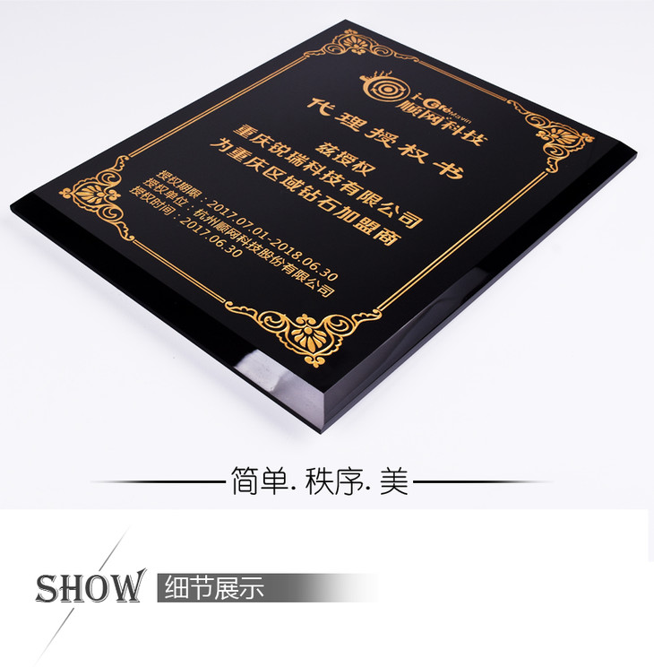高档黑水晶授权牌加盟牌定制定做创意水晶奖杯奖牌代理商证书牌匾