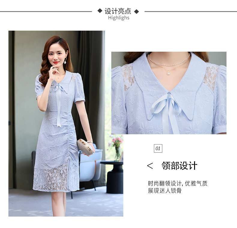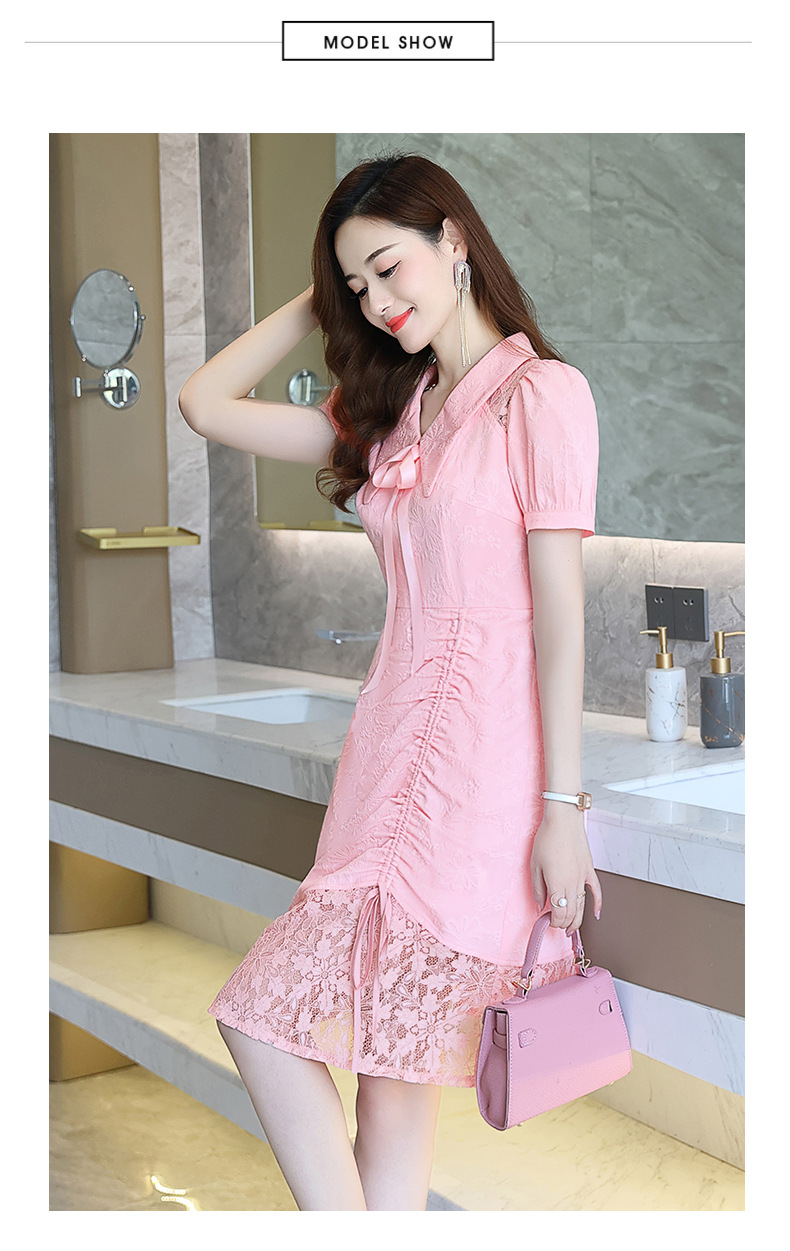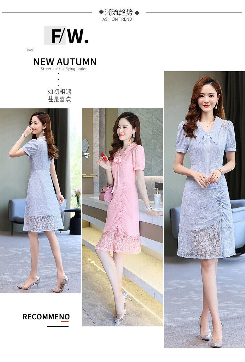 2022夏季女装新品韩版修身中长款蕾丝拼接连衣裙 HR-YBER2255