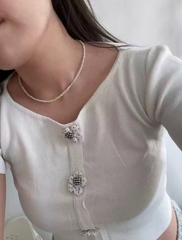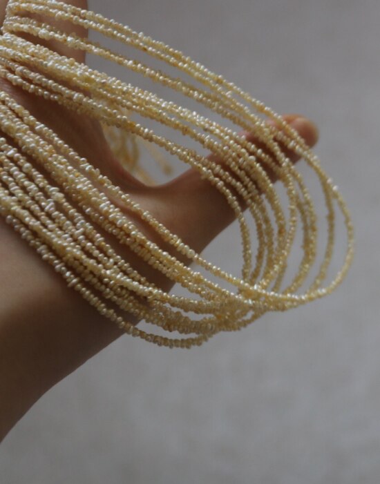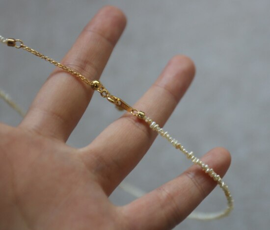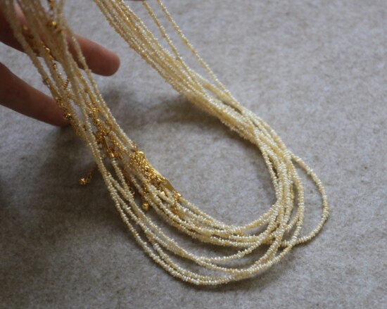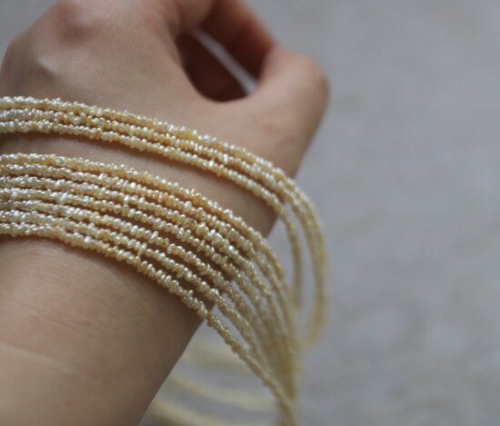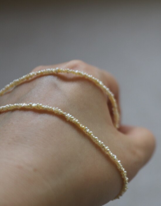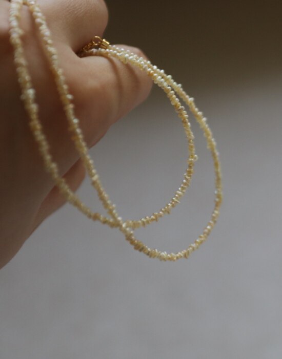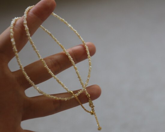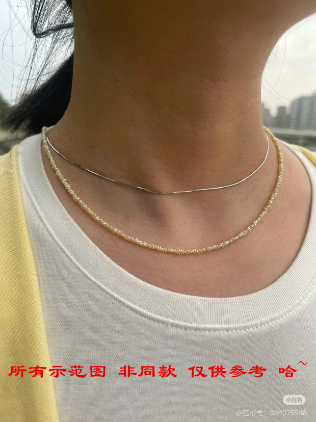年少不知珍珠美 哈!天然海水 Akoya 羽黄金 Keshi 2.5mm 黄白相间 锁骨链