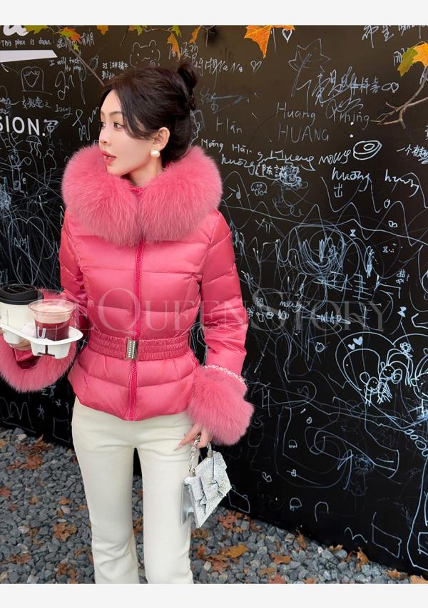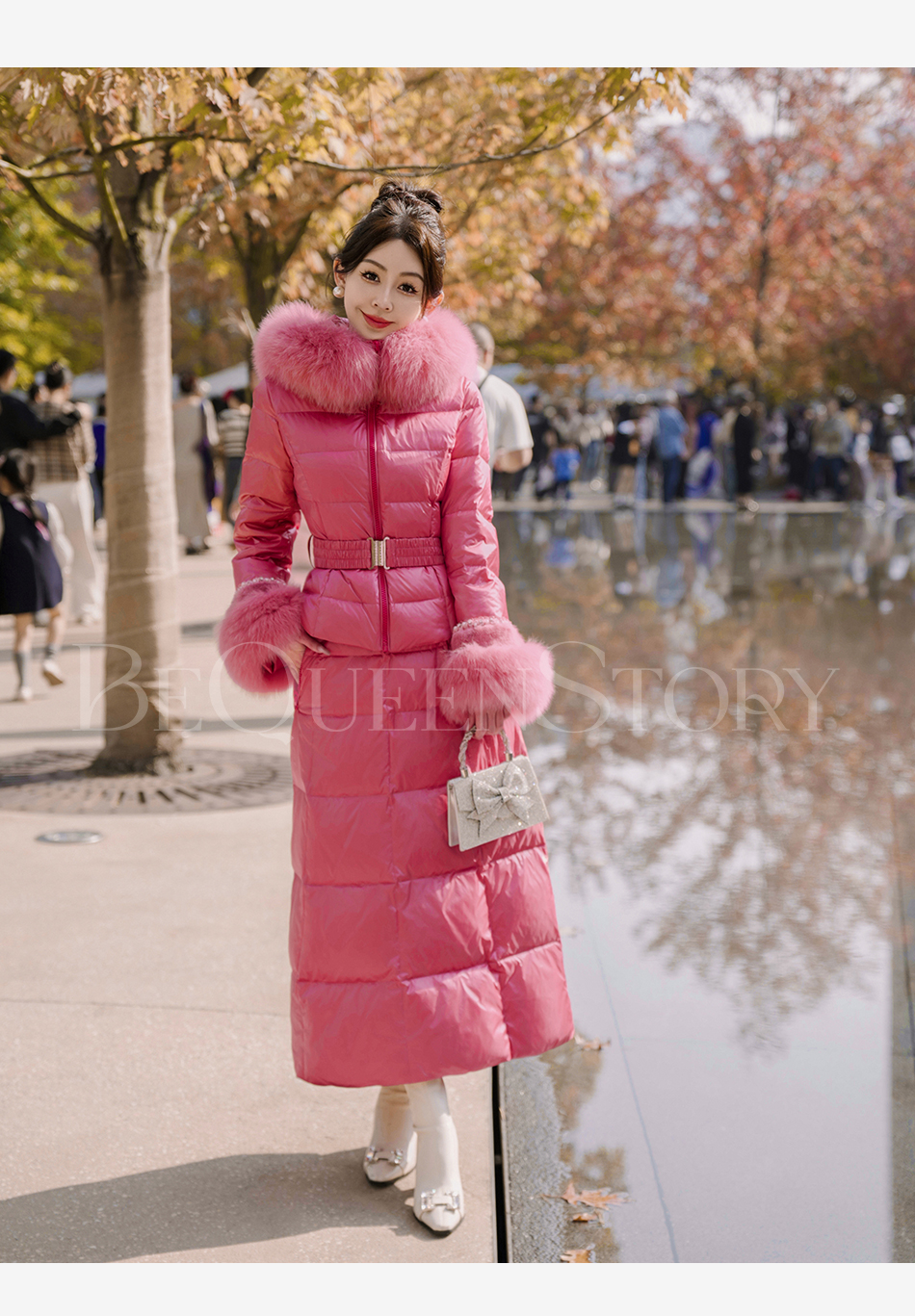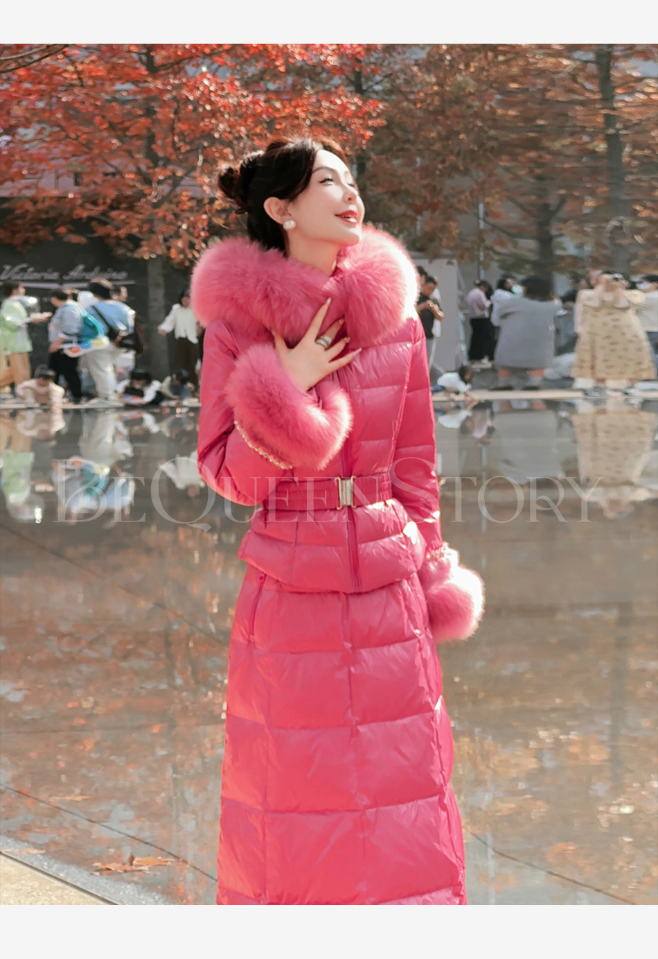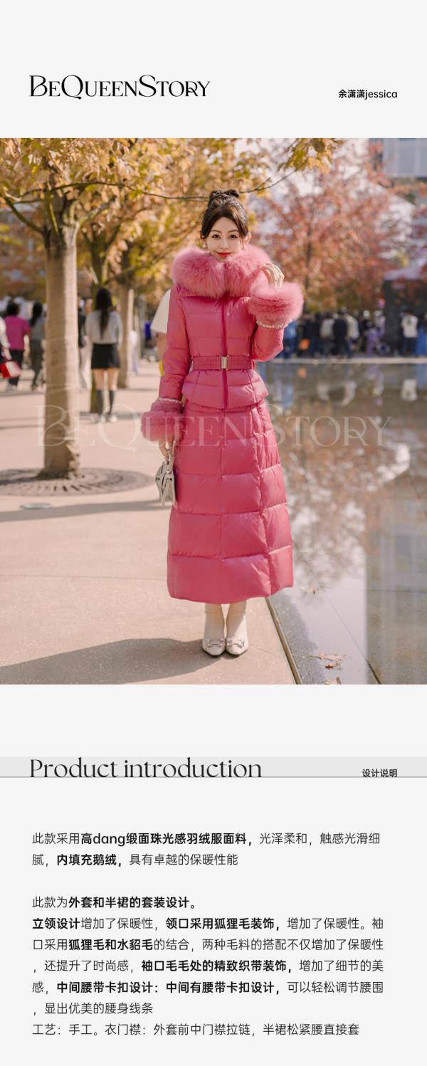 余潇潇红人上新【风华绝代】气质缎面珠光立领外套松紧半裙鵝绒套装