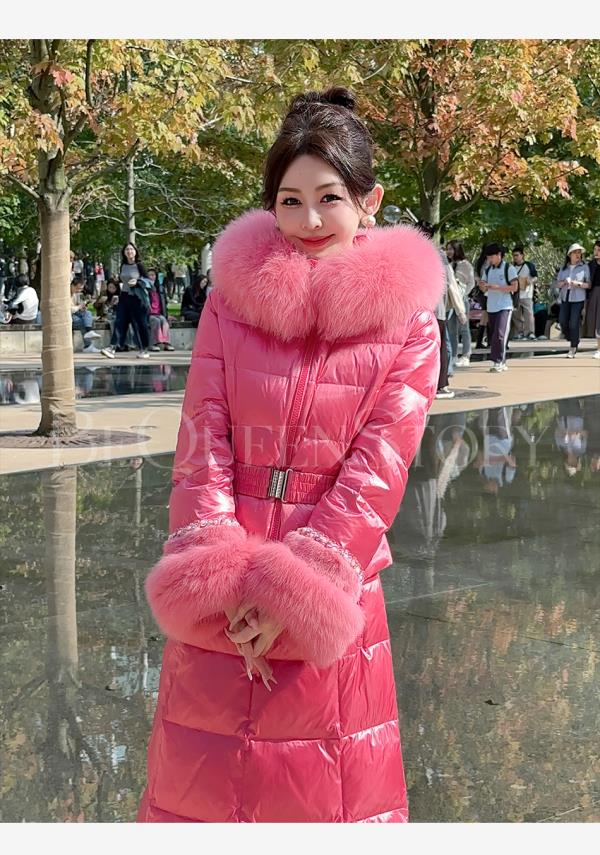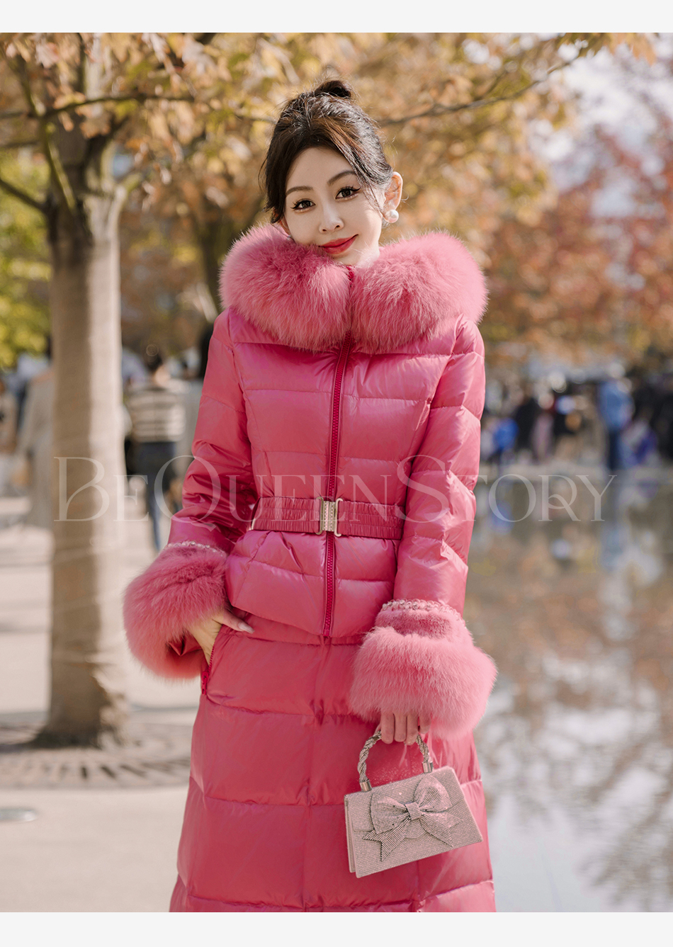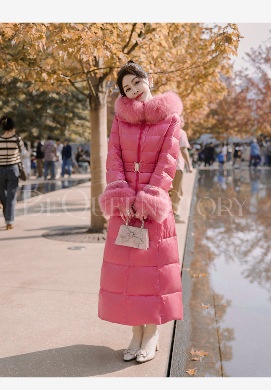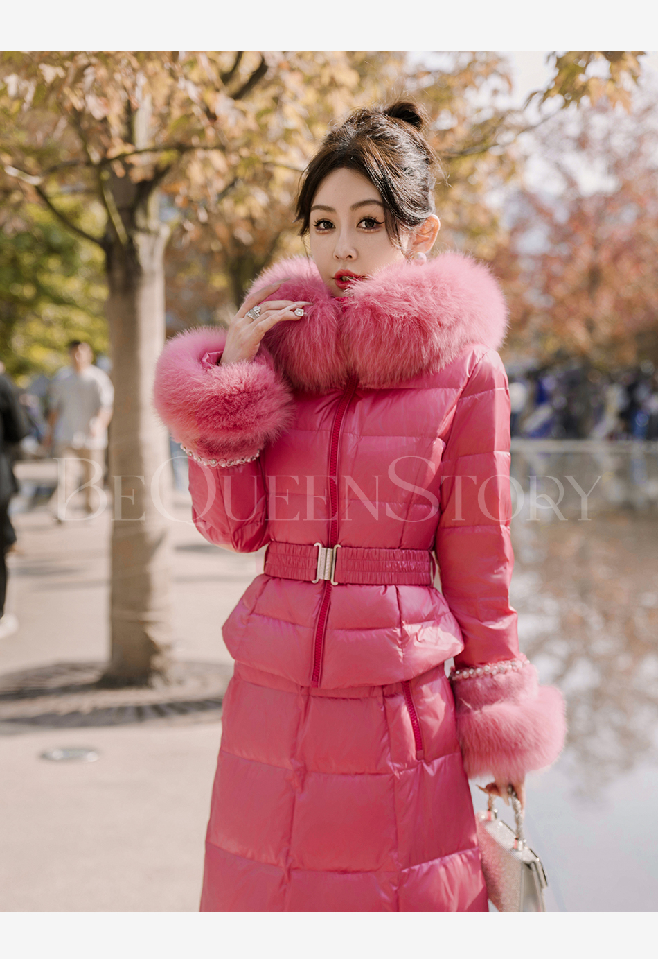 余潇潇红人上新【风华绝代】气质缎面珠光立领外套松紧半裙鵝绒套装