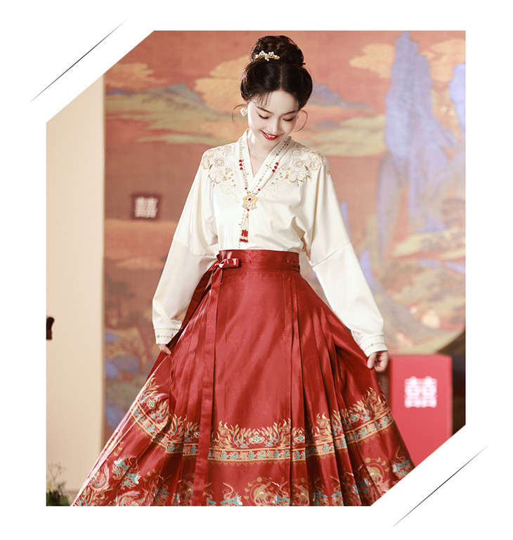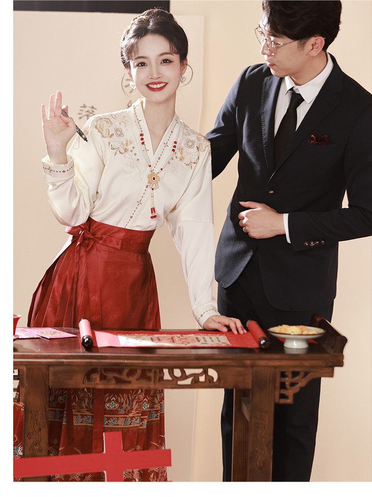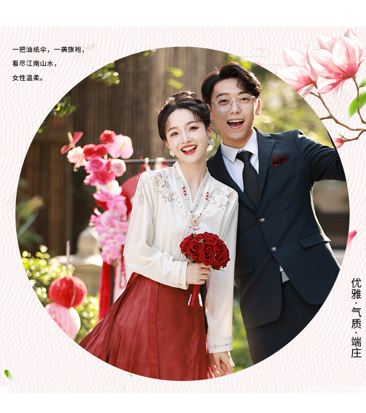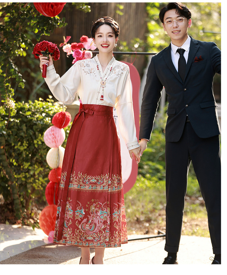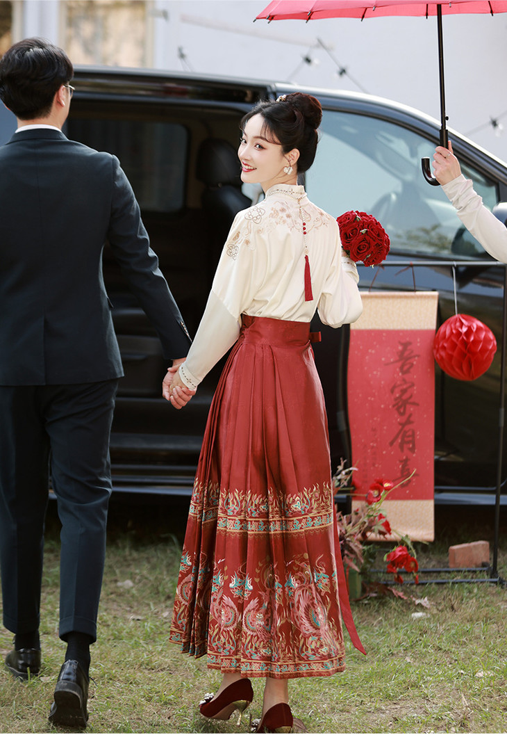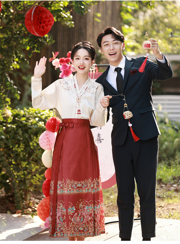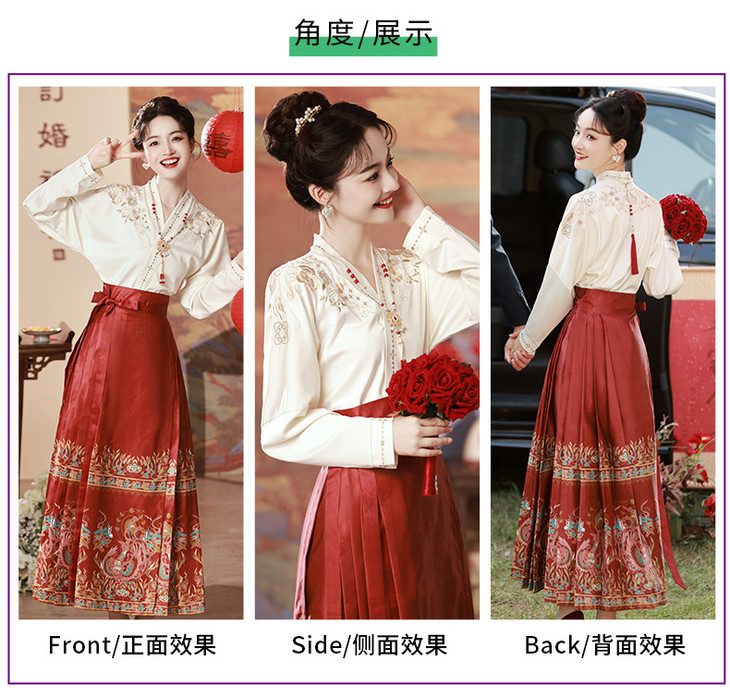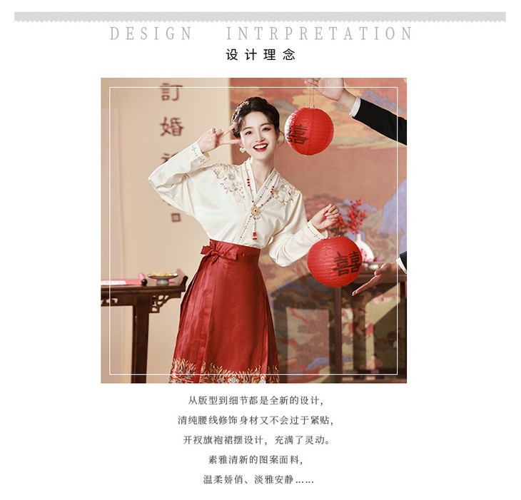 新中式国风汉服敬酒服金红色改良明制马面裙MLS101