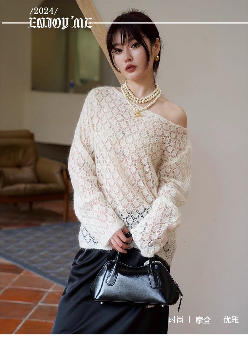 【门店同款】ENJOY秋季时光回廊甜美镂空针织上衣 159151564