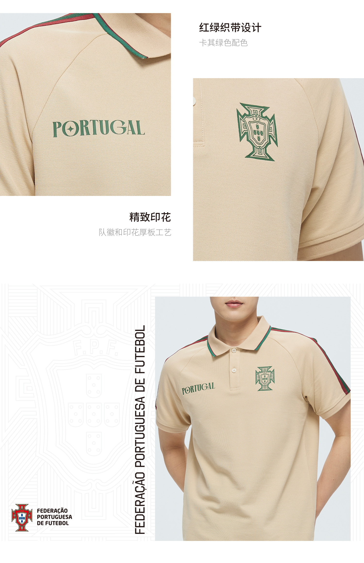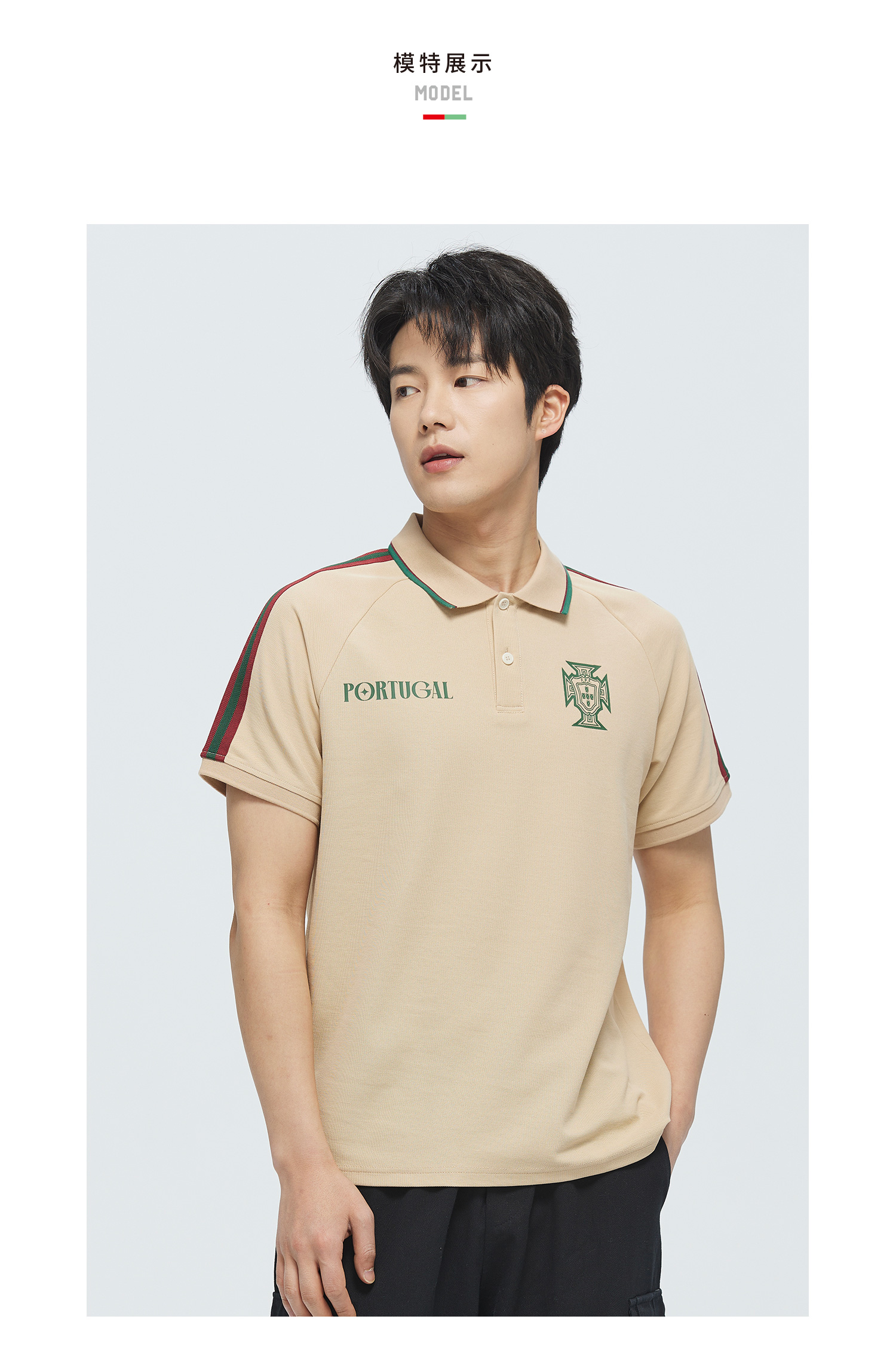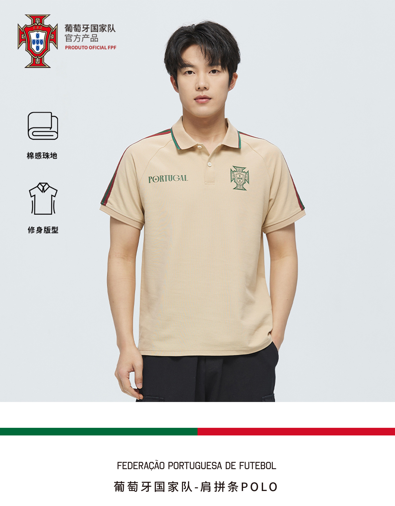 【官方正版】葡萄牙国家队 | 春夏修身薄款肩拼条POLO衫