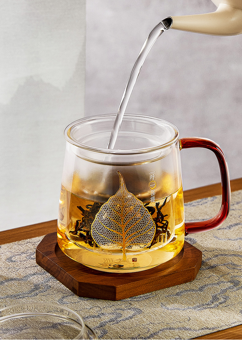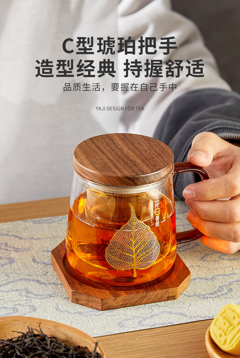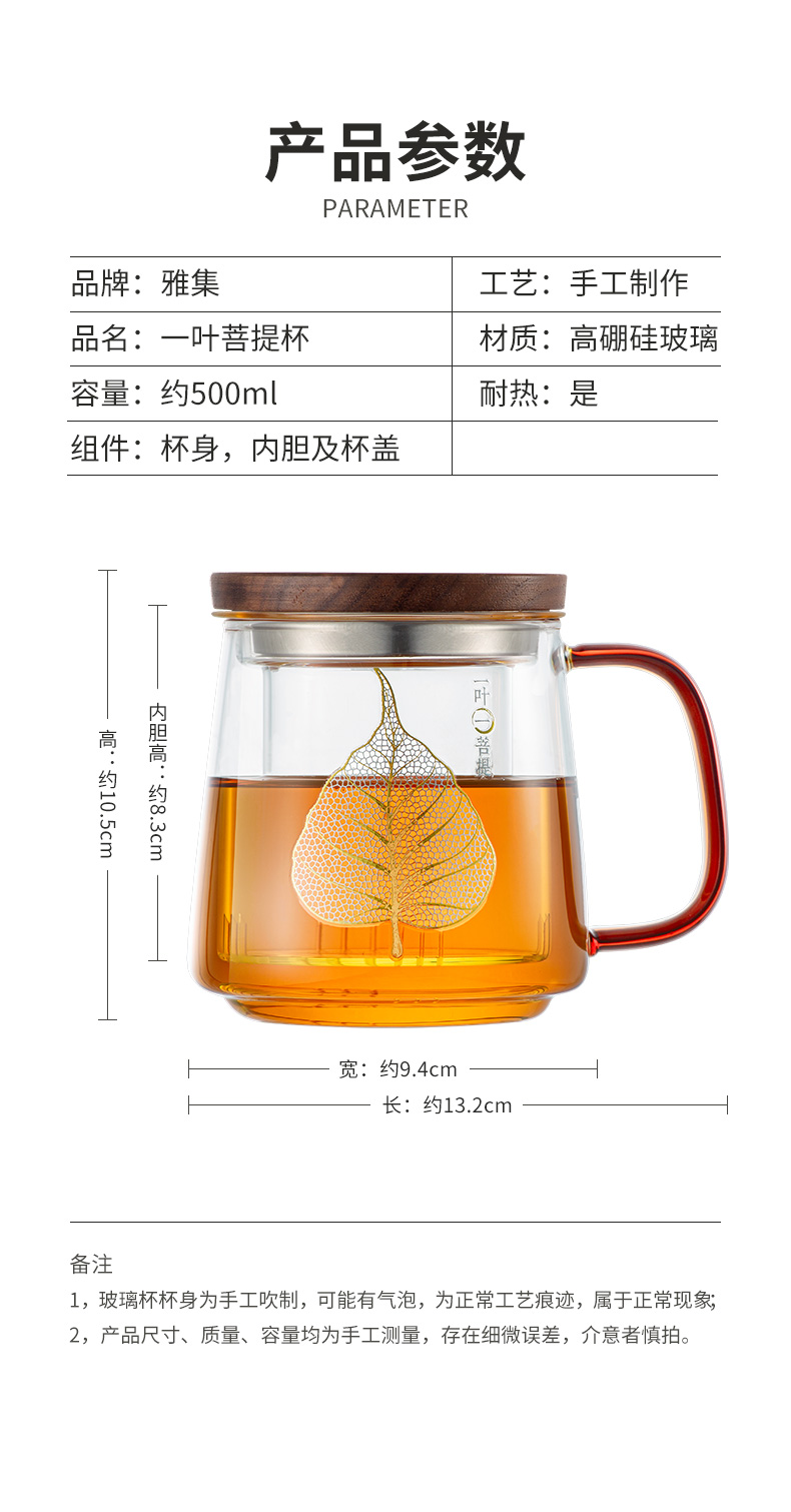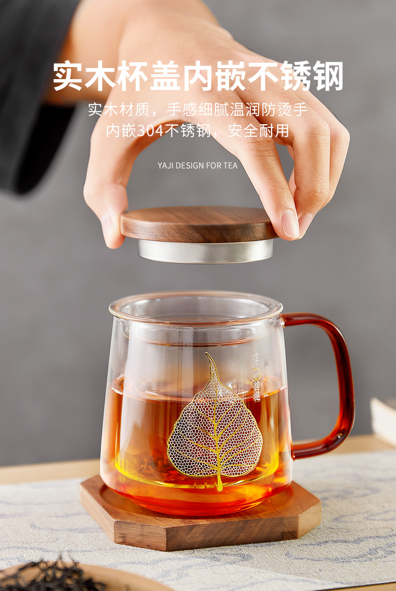 雅集玻璃杯一叶菩提杯500ml(木盖款)