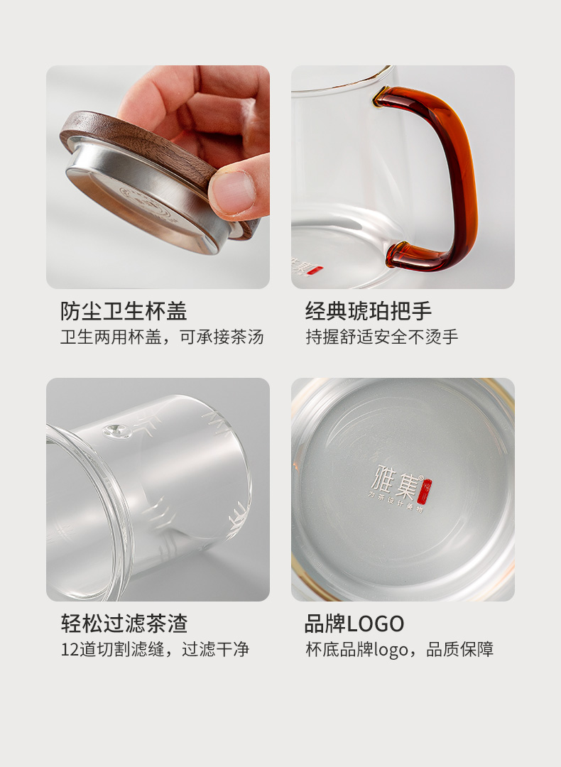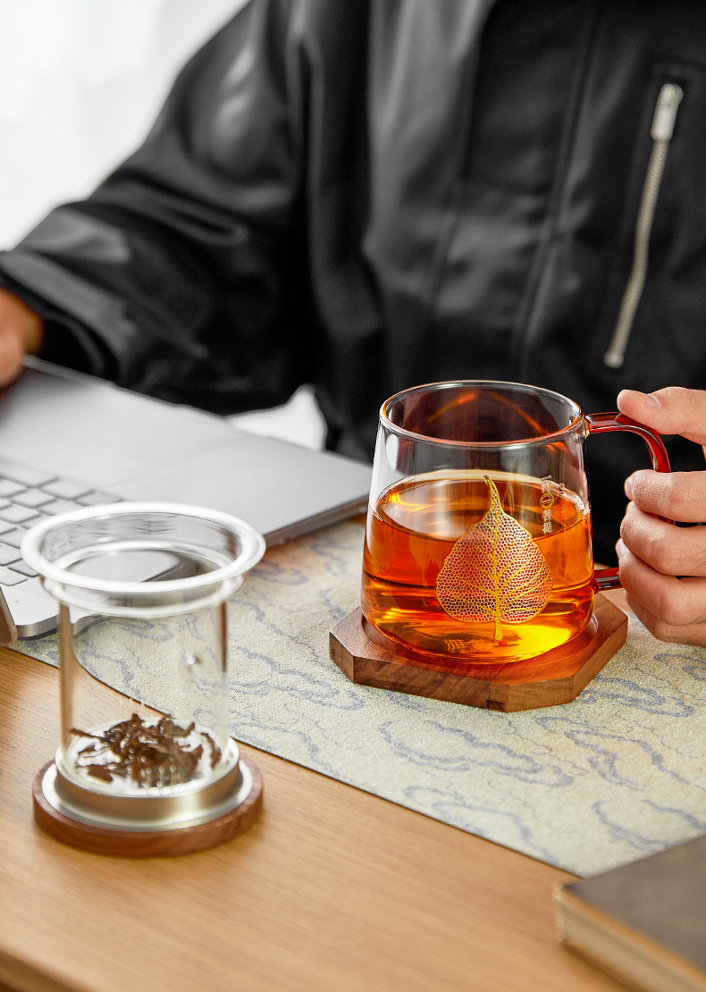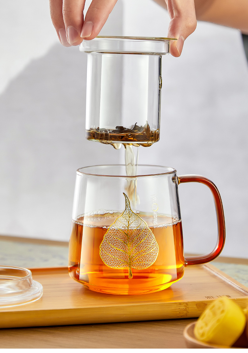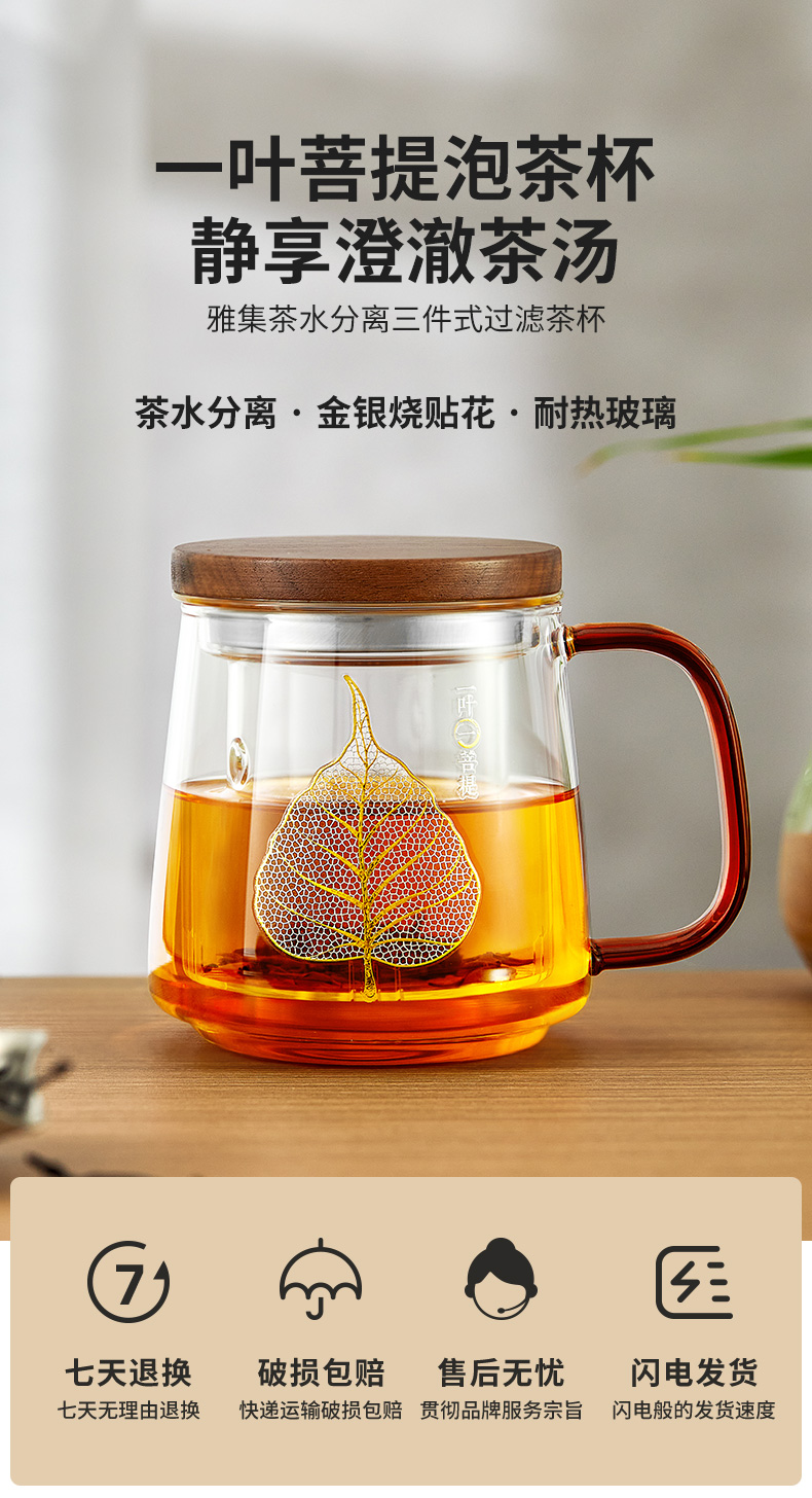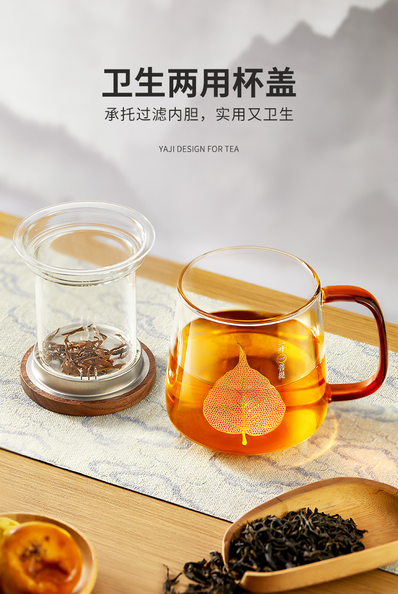 雅集玻璃杯一叶菩提杯500ml(木盖款)