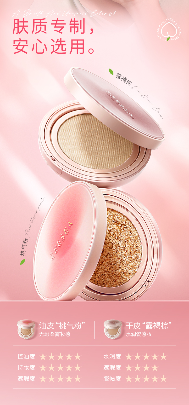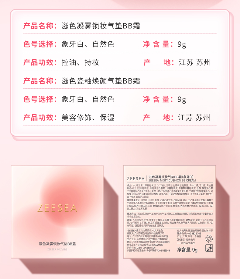 [气垫]【满79立减60元】ZEESEA滋色瓷釉焕颜气垫BB霜(桃气限定款)