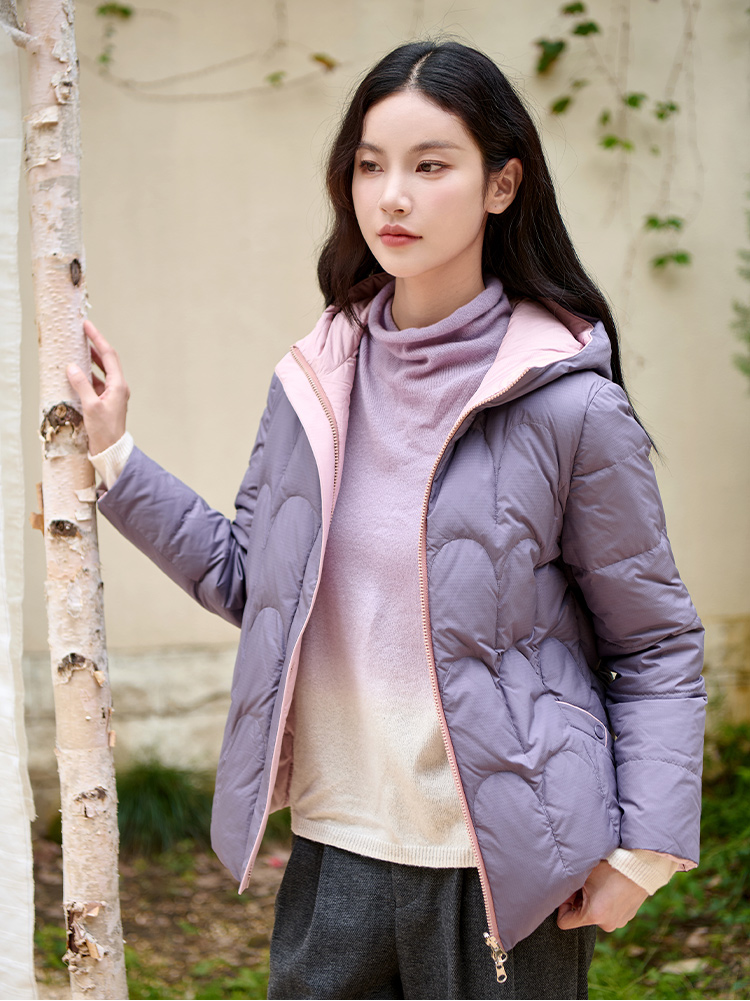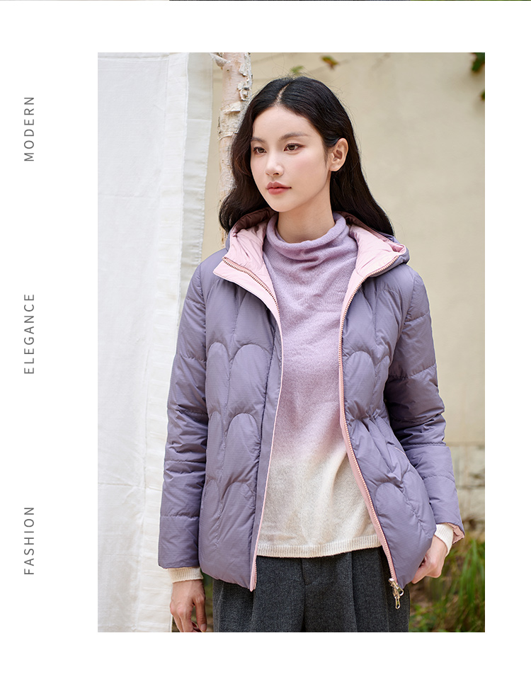 佐尔美冬季新款 双面穿气质连帽羽绒服女M44YY02