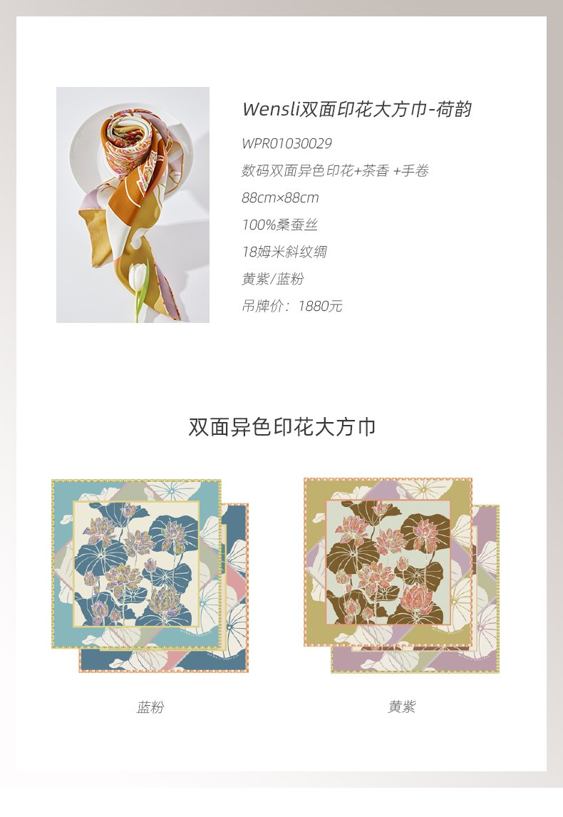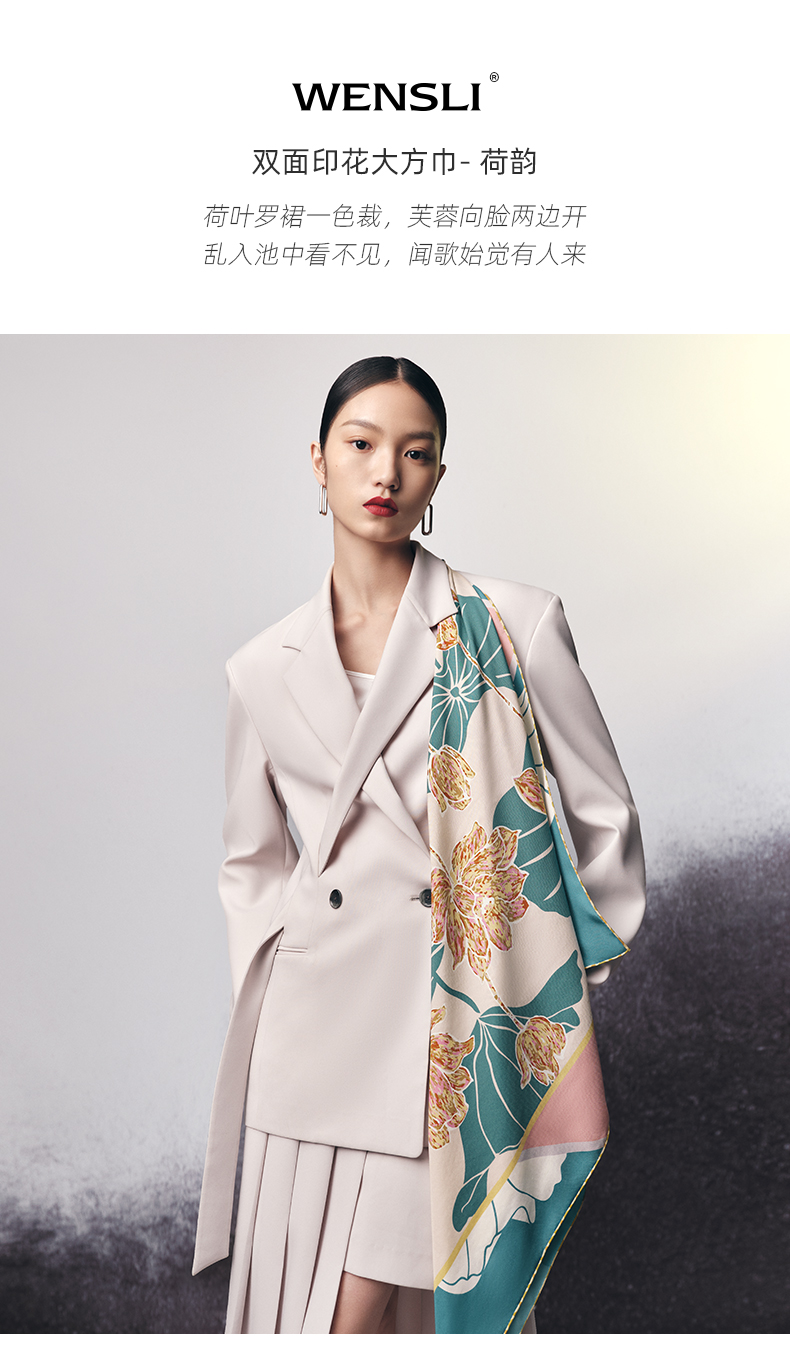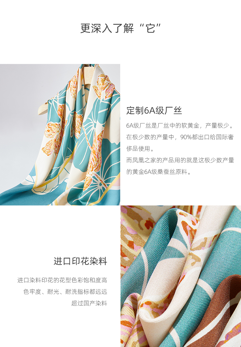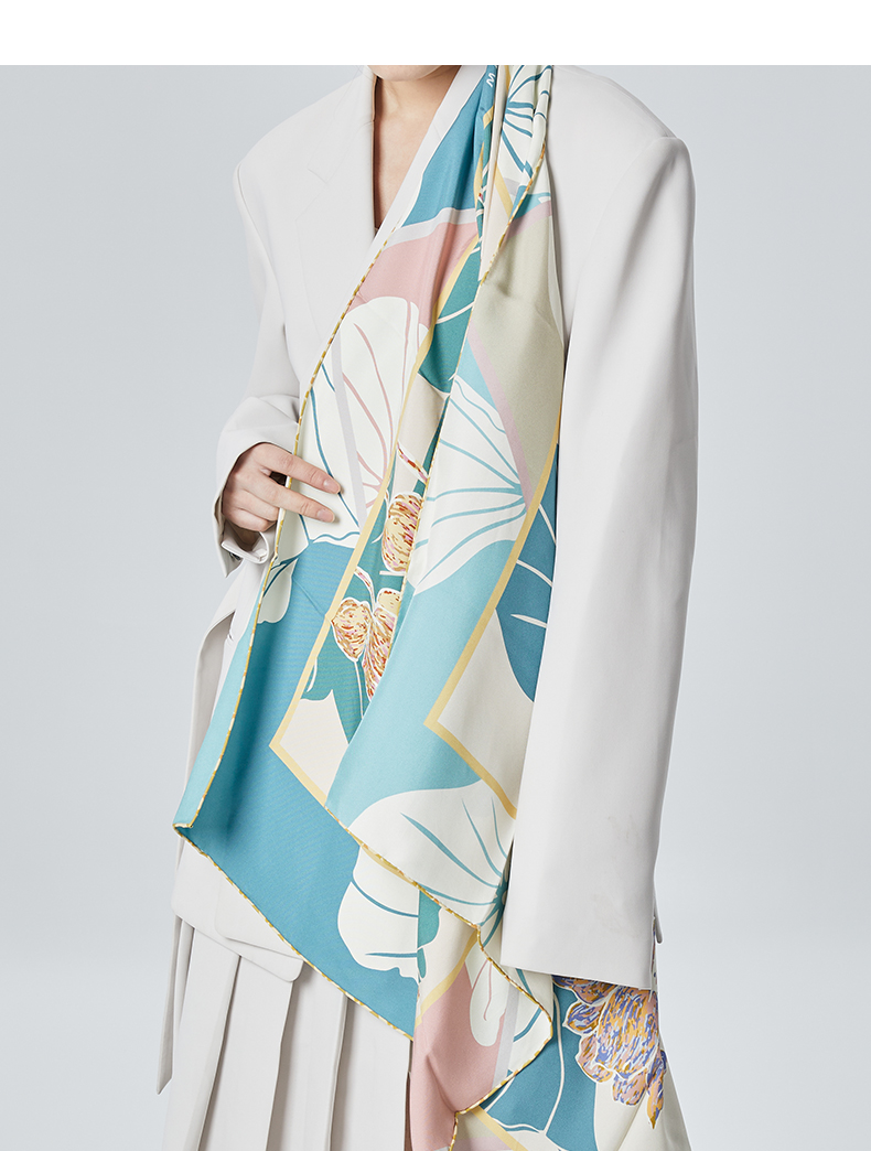 凤凰之家“荷韵”88厘米双面印花大方巾