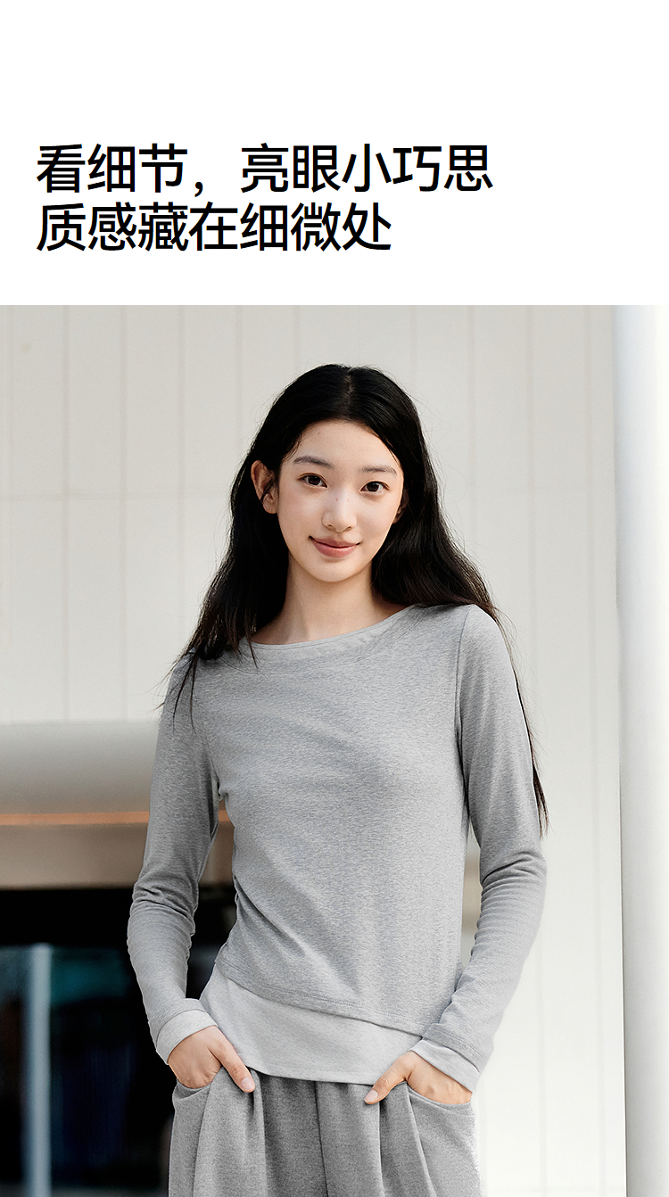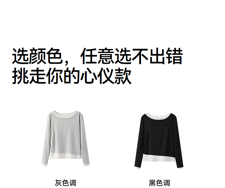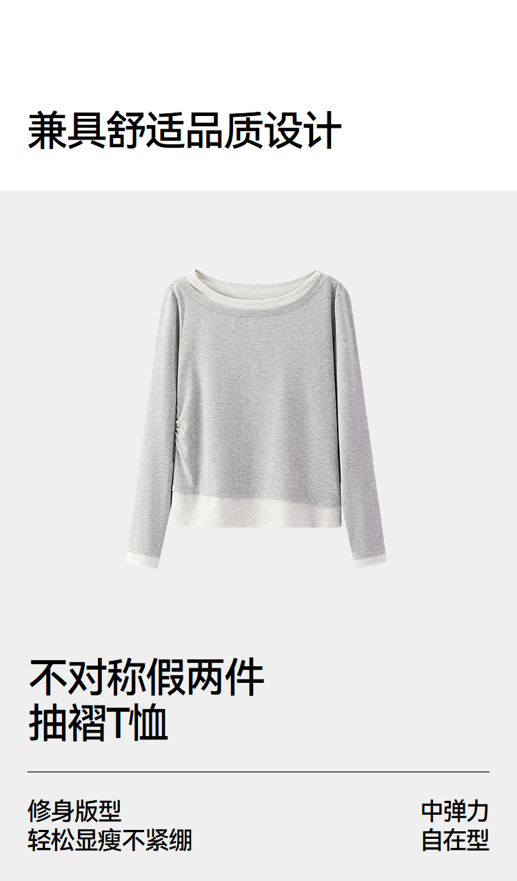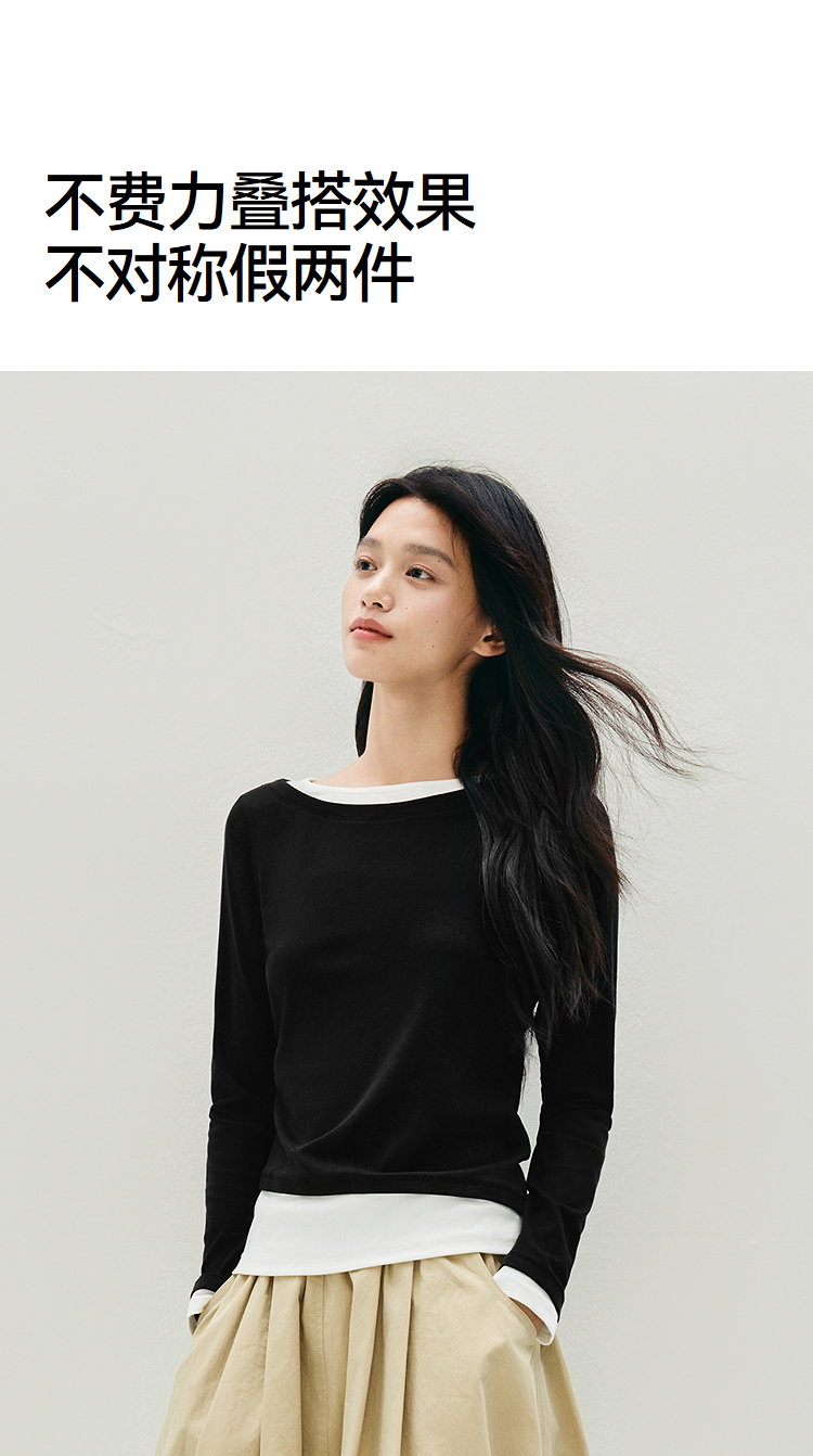 森马长袖T恤女不对称假两件2025秋季新款小心机修身拼色衣服百搭