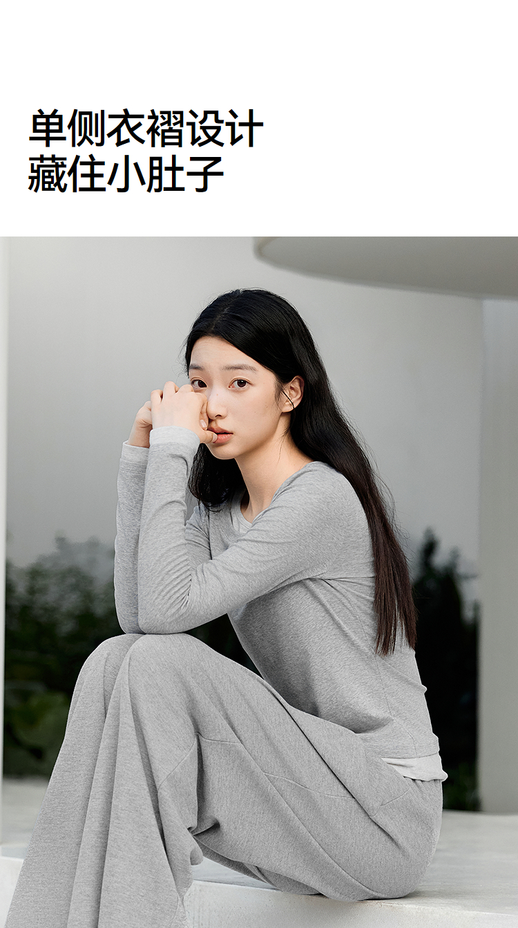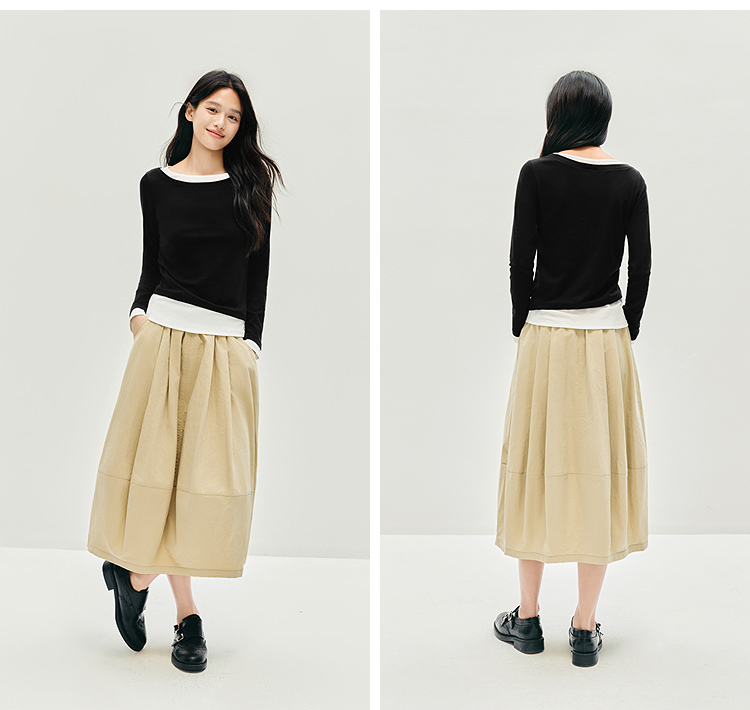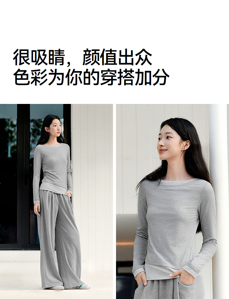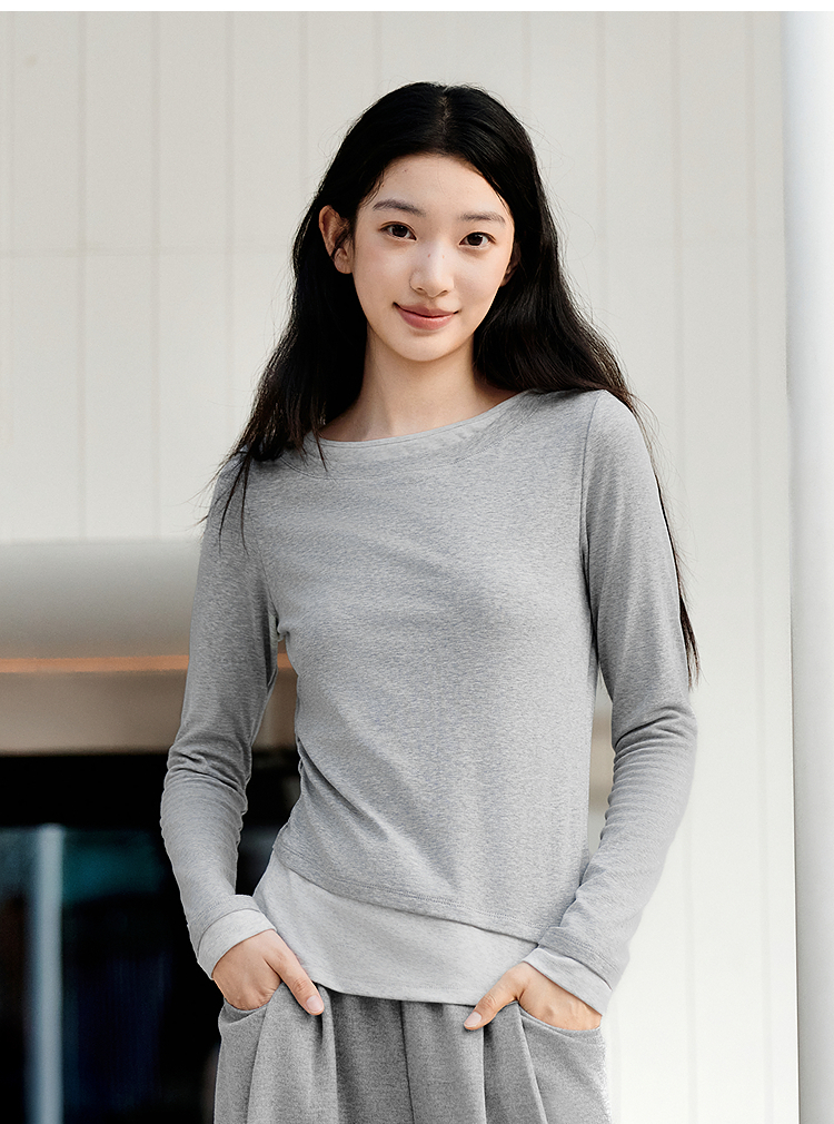 森马长袖T恤女不对称假两件2025秋季新款小心机修身拼色衣服百搭