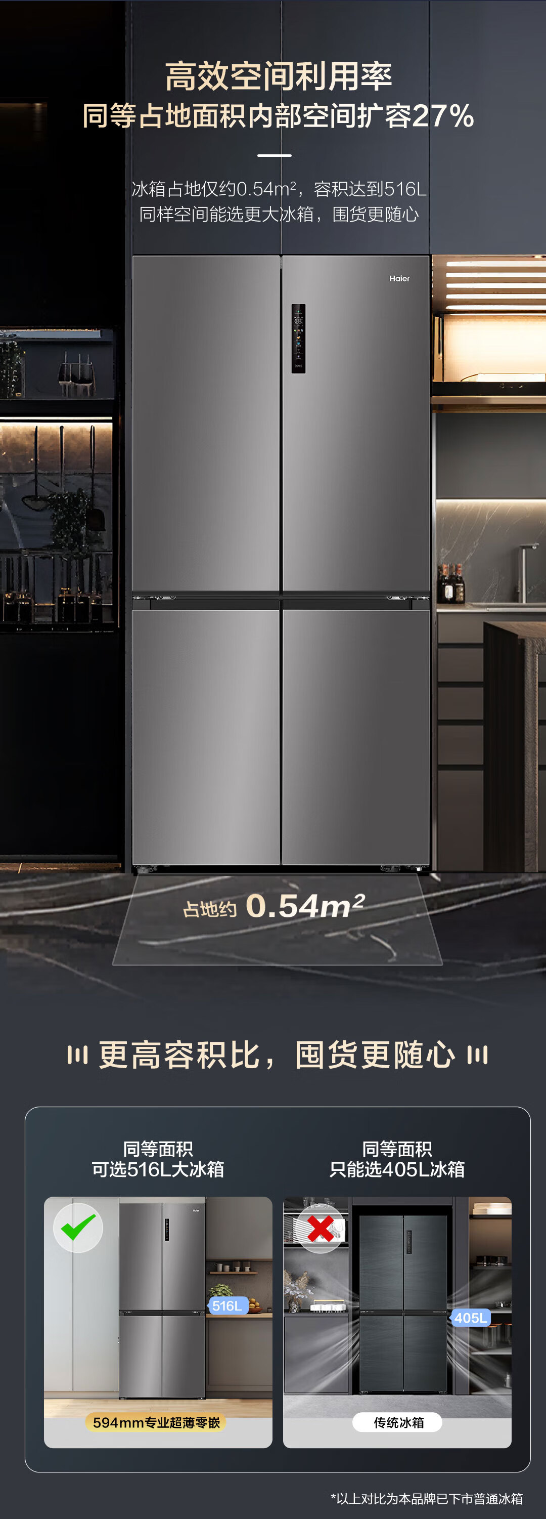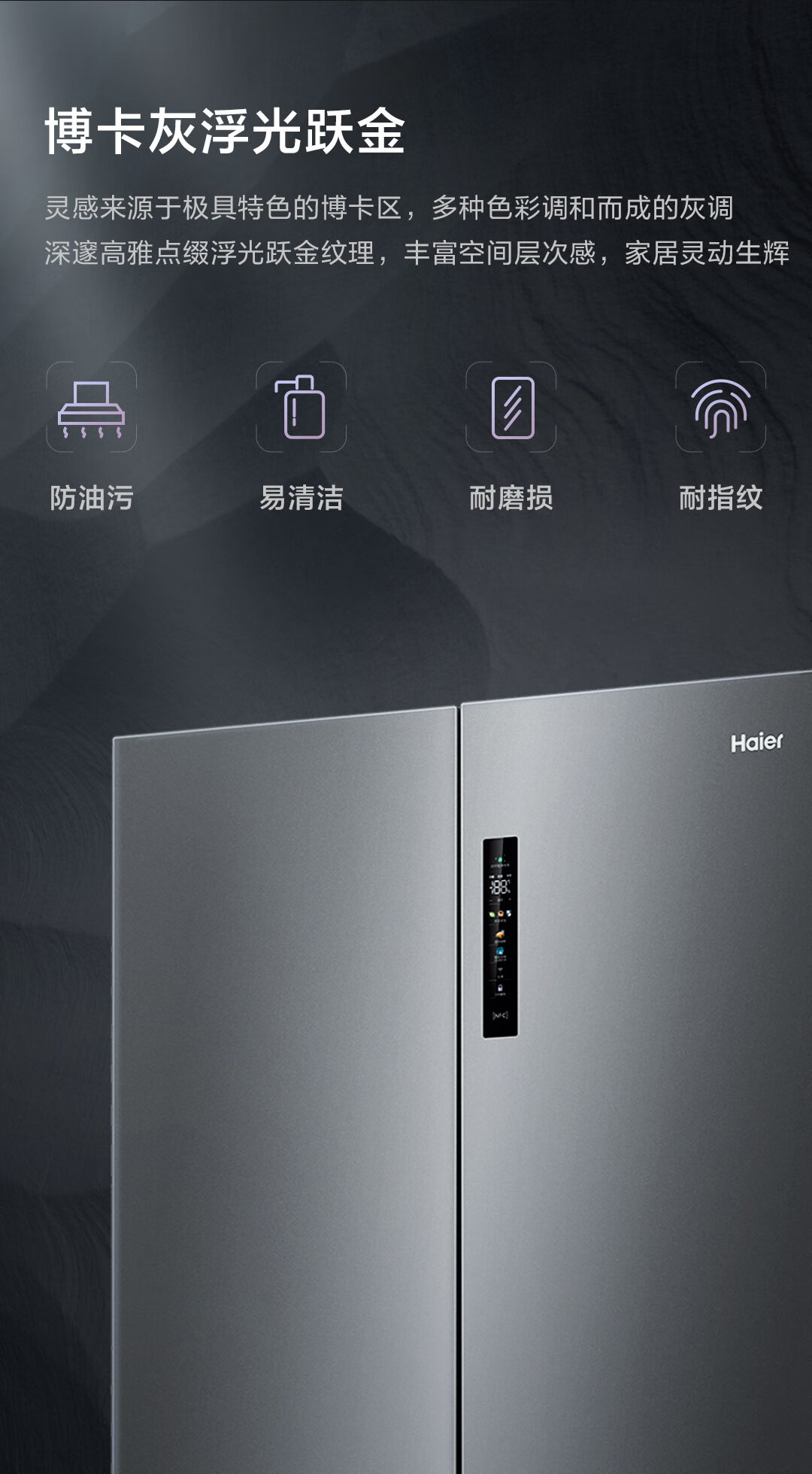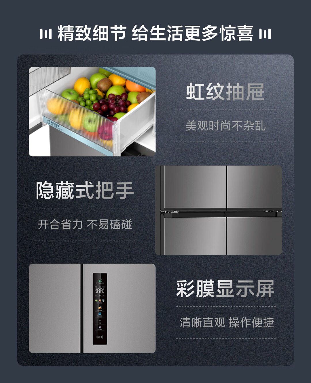 海尔(Haier)516升594mm专业超薄零嵌十字T型四开门电冰箱嵌一级能效BCD-516WGHTDB9GYU1博卡灰