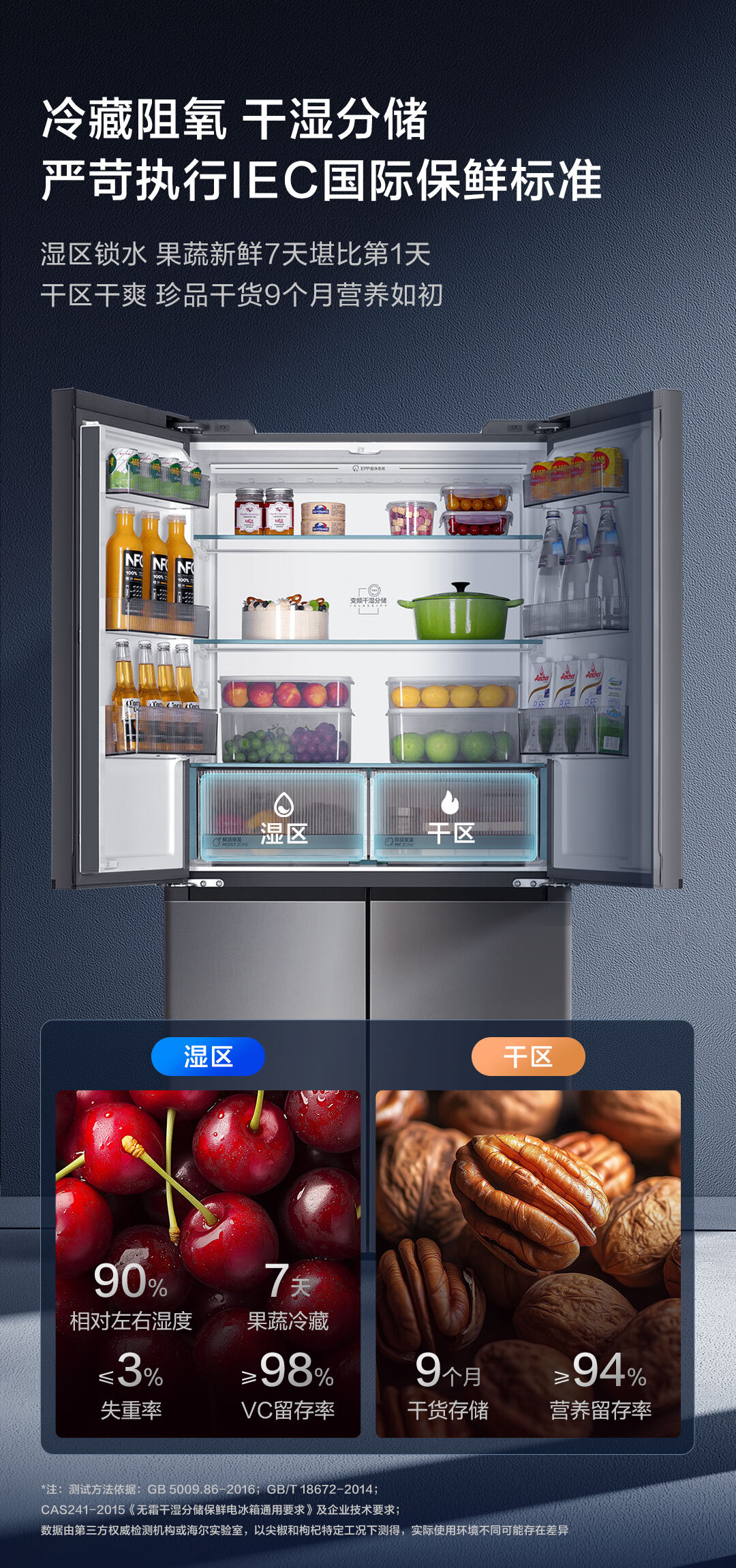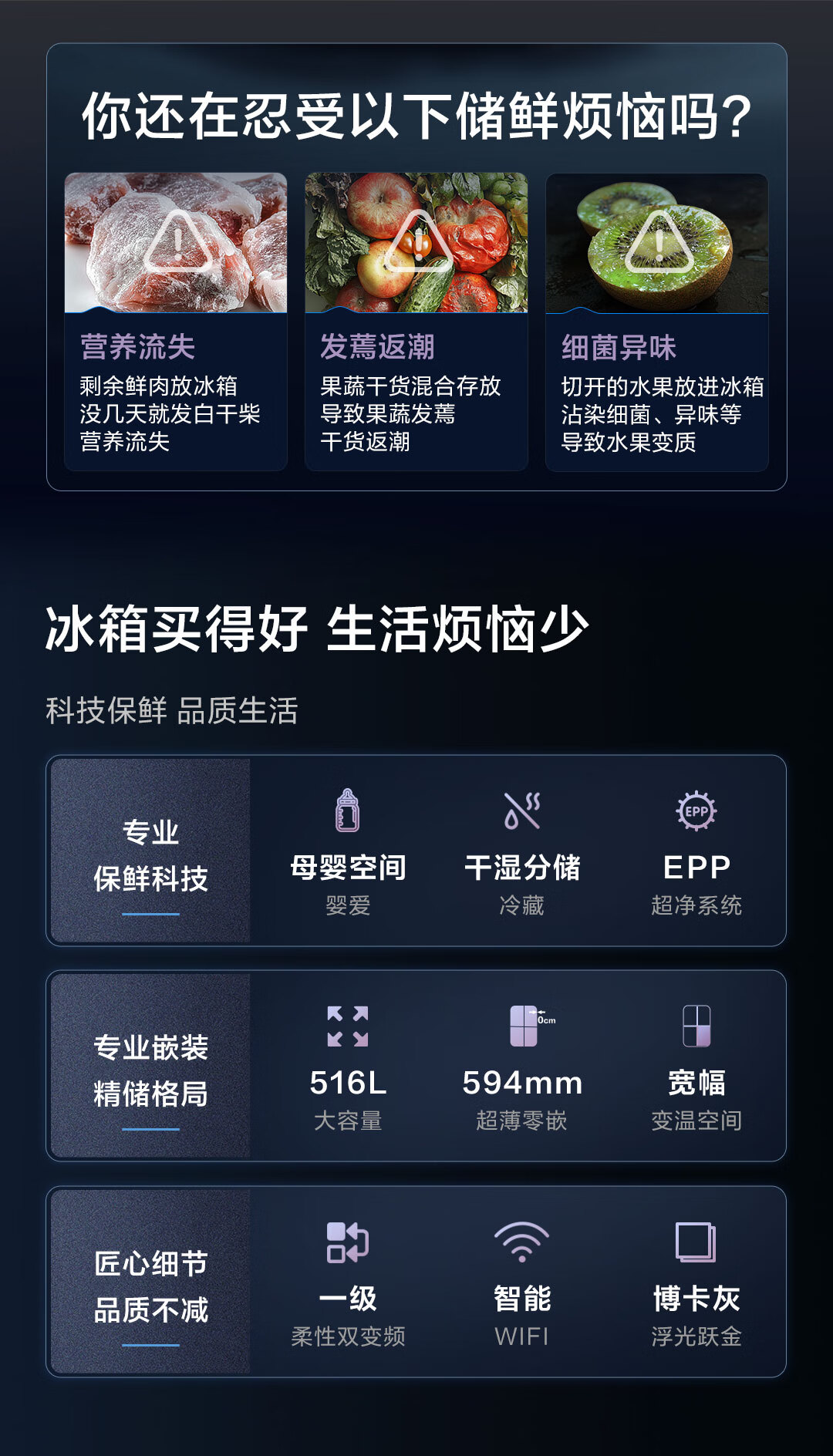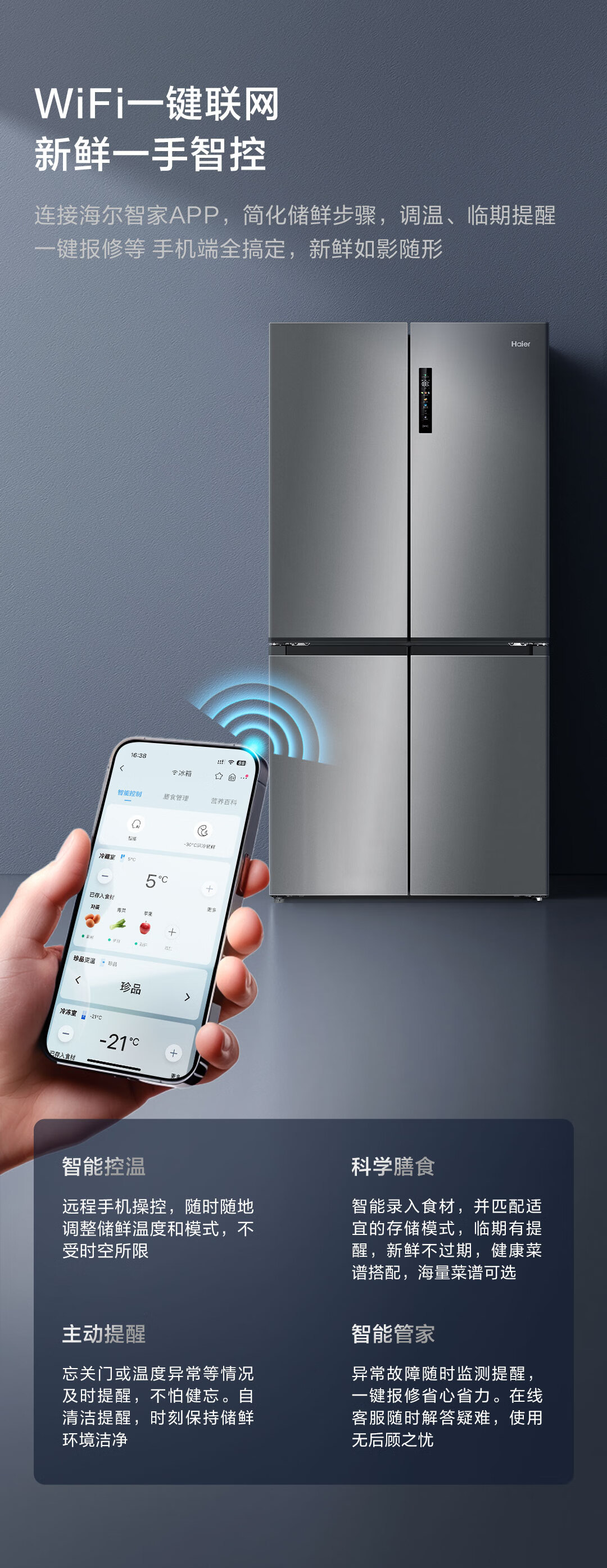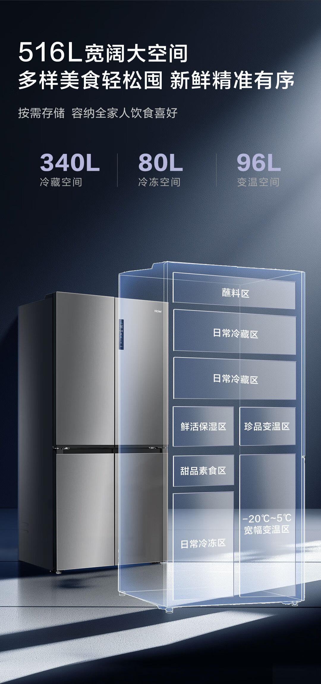 海尔(Haier)516升594mm专业超薄零嵌十字T型四开门电冰箱嵌一级能效BCD-516WGHTDB9GYU1博卡灰