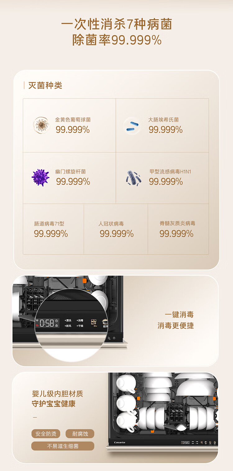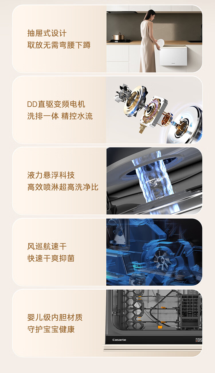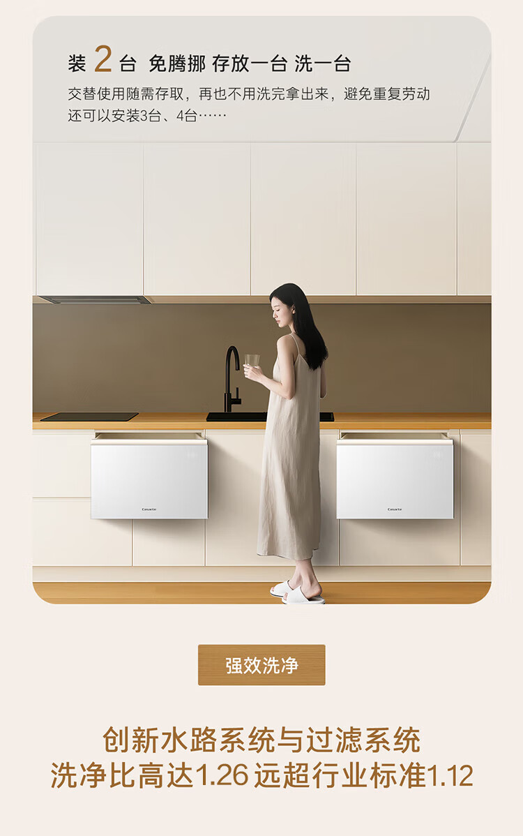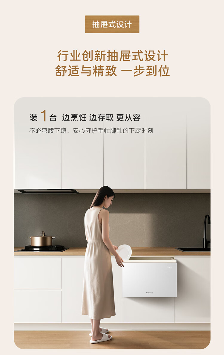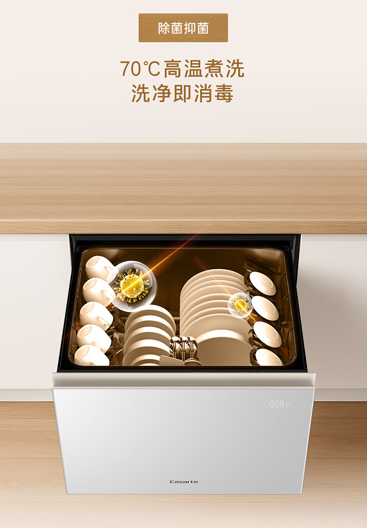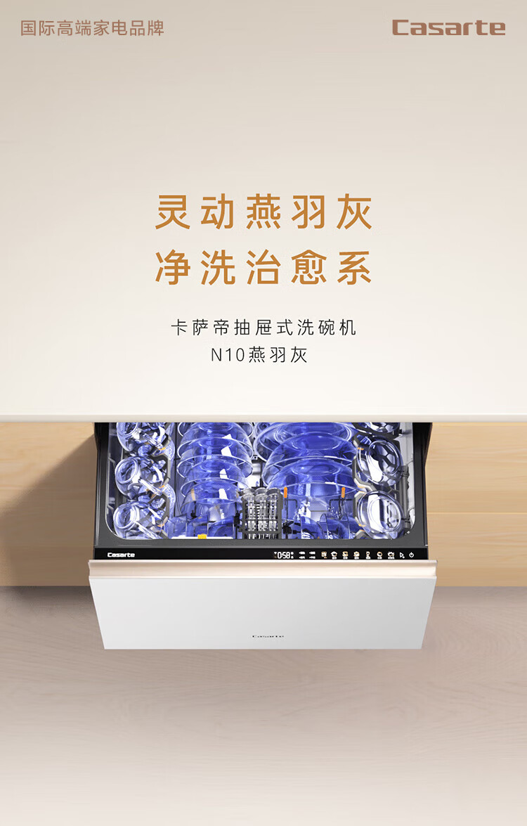 卡萨帝(Casarte)【致境N10】洗碗机抽屉式小型78升燕羽灰嵌入式不弯腰母婴级家用自动烘干消毒一体机CWC8-B57YYU1