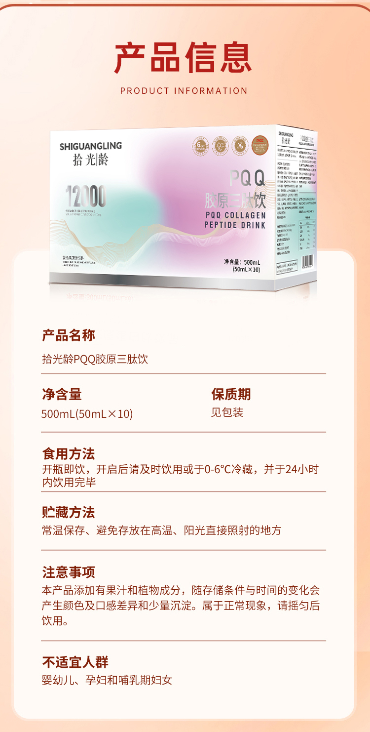 ⁴新日期【旧包材清仓】清仓599元100瓶【12000mg胶原三肽】+γ-氨基丁酸100mg+PQQ 复配 五*女博士代工厂 50ml*10瓶/盒 YC04-CRMM-YXY