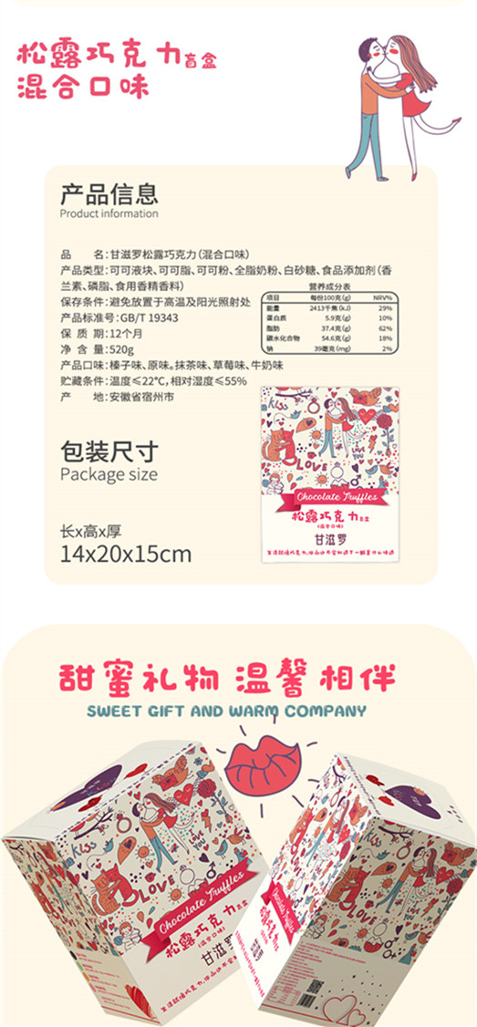 【品名】甘滋罗情人节趣味礼盒松露型巧克力送女友520g
