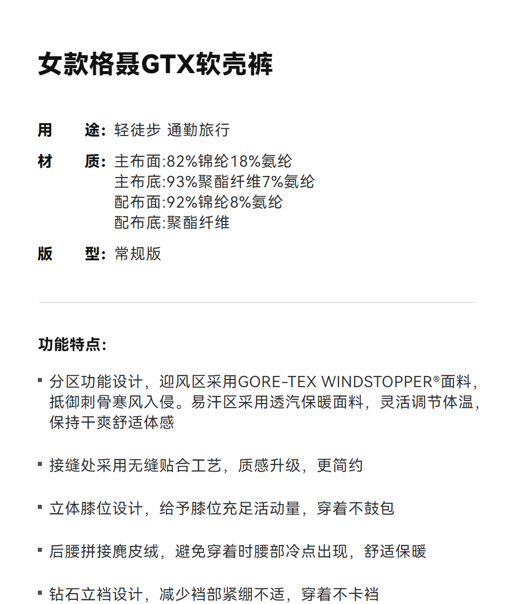 KAILAS凯乐石 户外运动 女款格聂GTX防风软壳裤 KG2439425【Z】