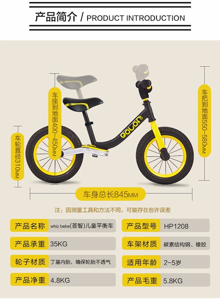 【一般贸易】荟智儿童比赛级平衡车HP1208-M165旗舰版充气轮内置避震滑行车