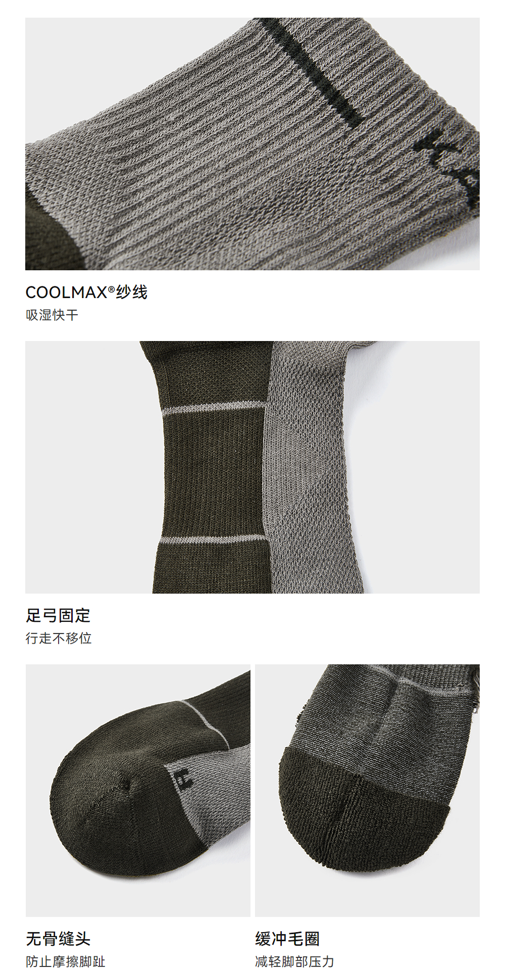 KAILAS凯乐石 男款低帮徒步袜(两双装)KH2502102