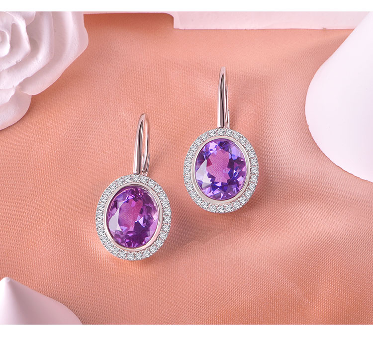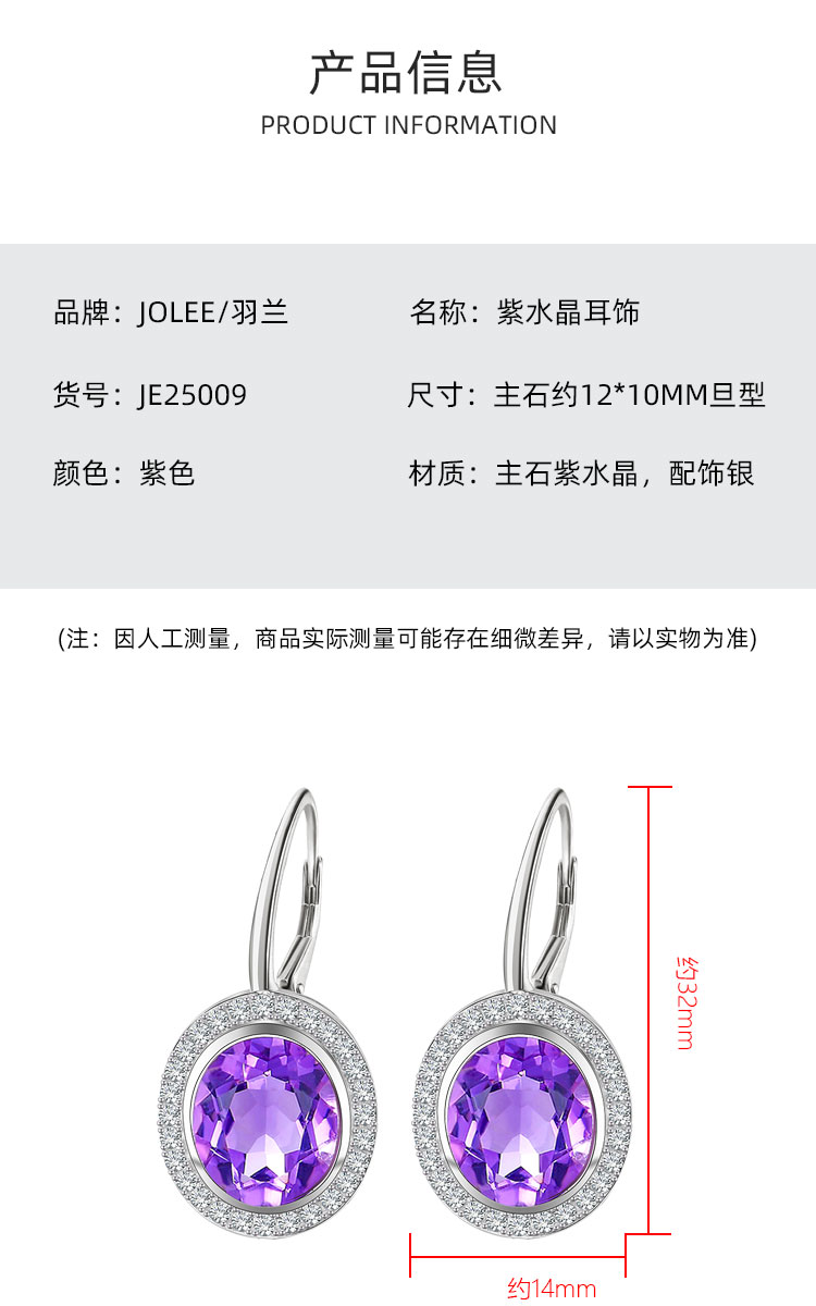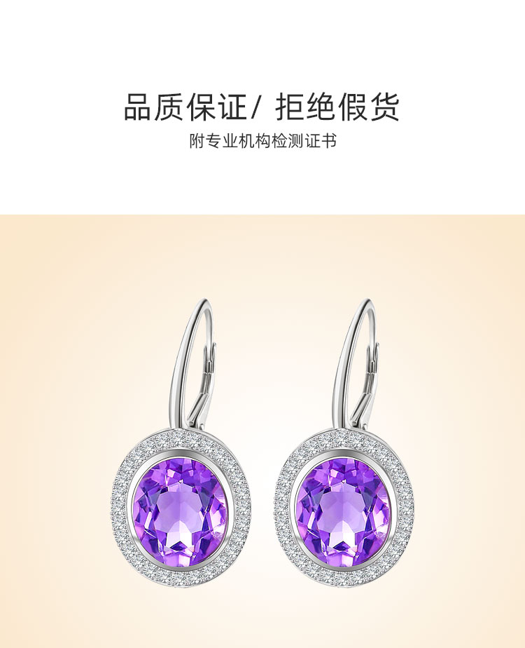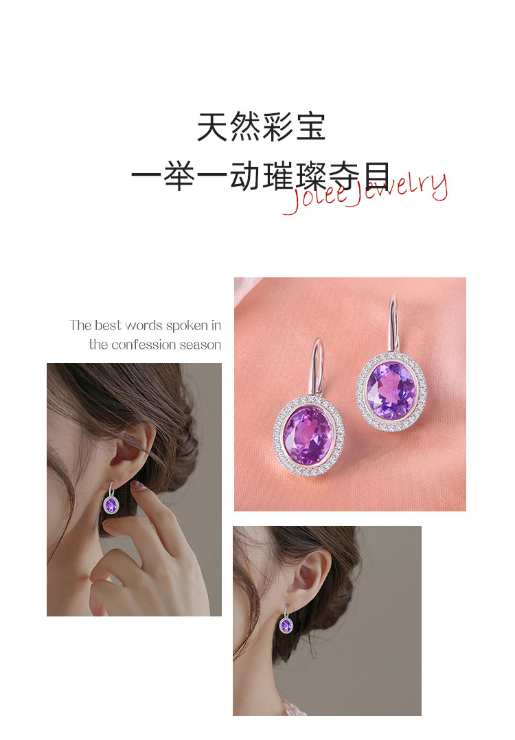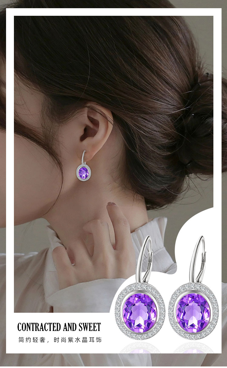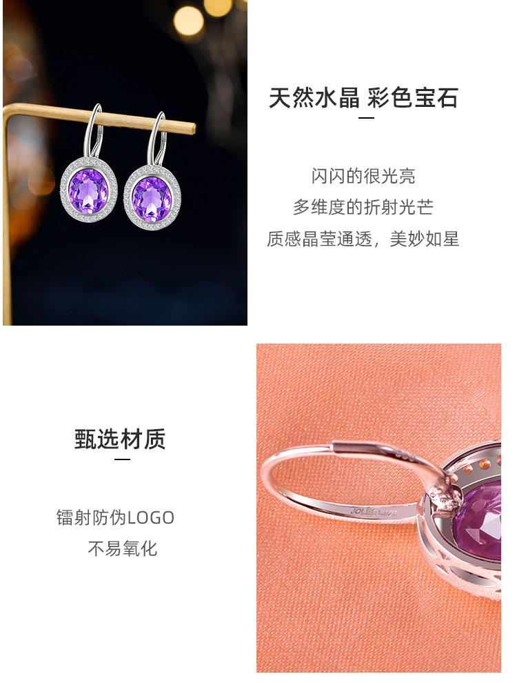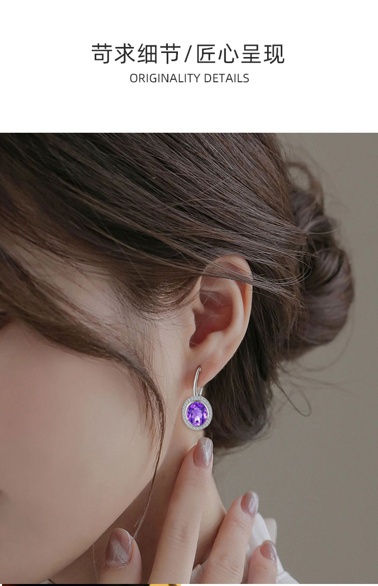 【紫水晶耳环】耳坠女S925银天然紫水晶轻奢时尚耳扣耳环饰品JE25009