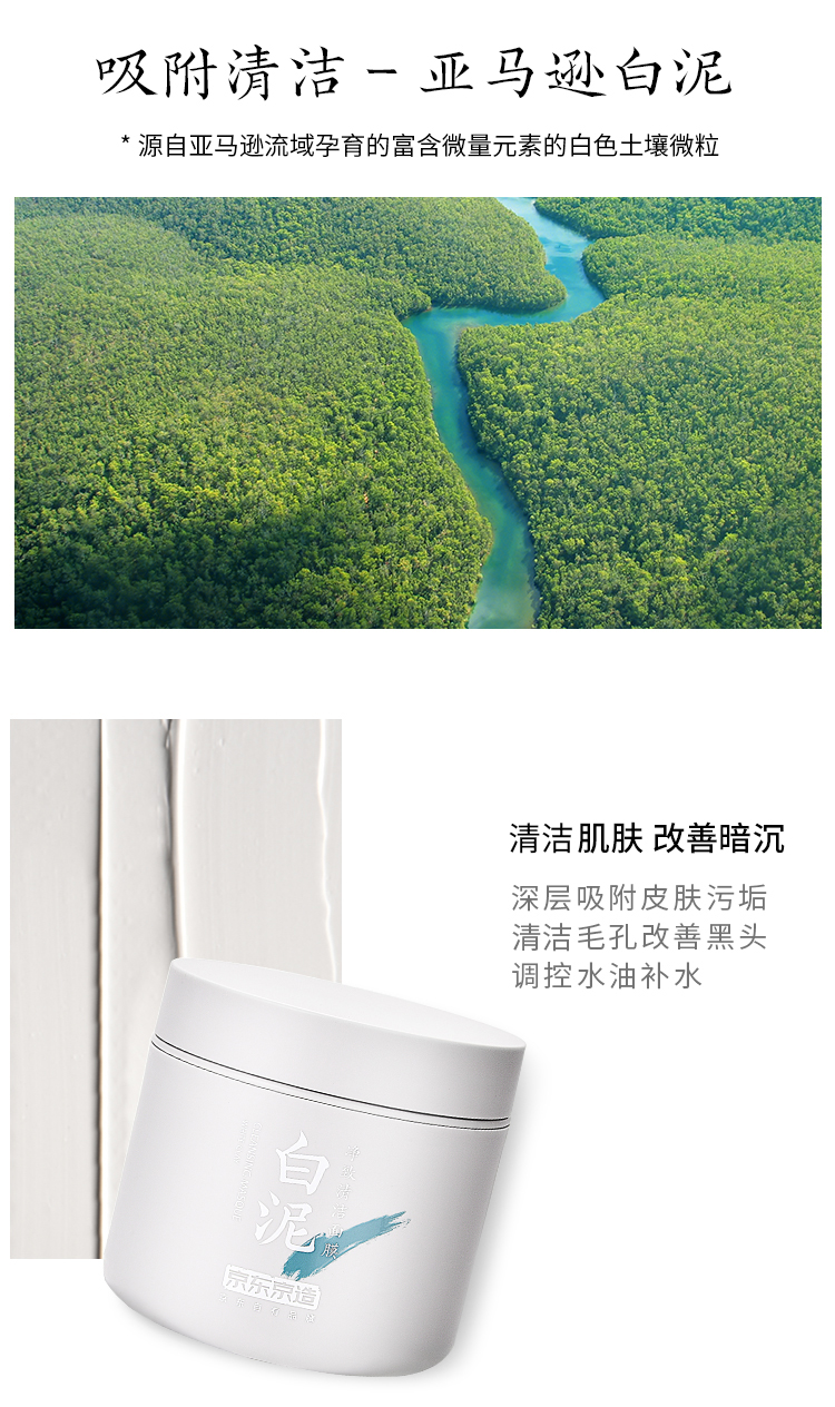 京东京造 亚马逊白泥净致清洁面膜 135g 清洁泥膜补水清洁收缩毛孔改善黑头面膜男女