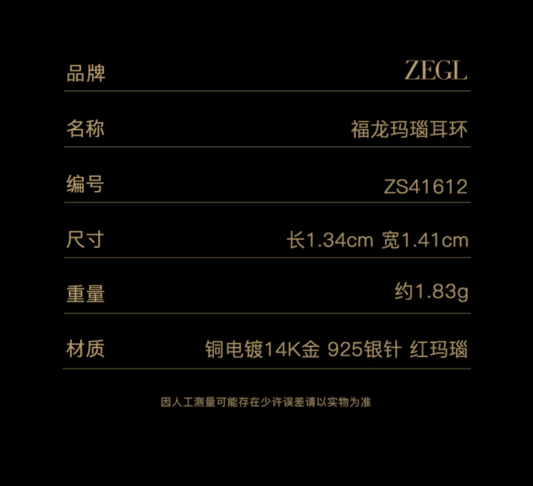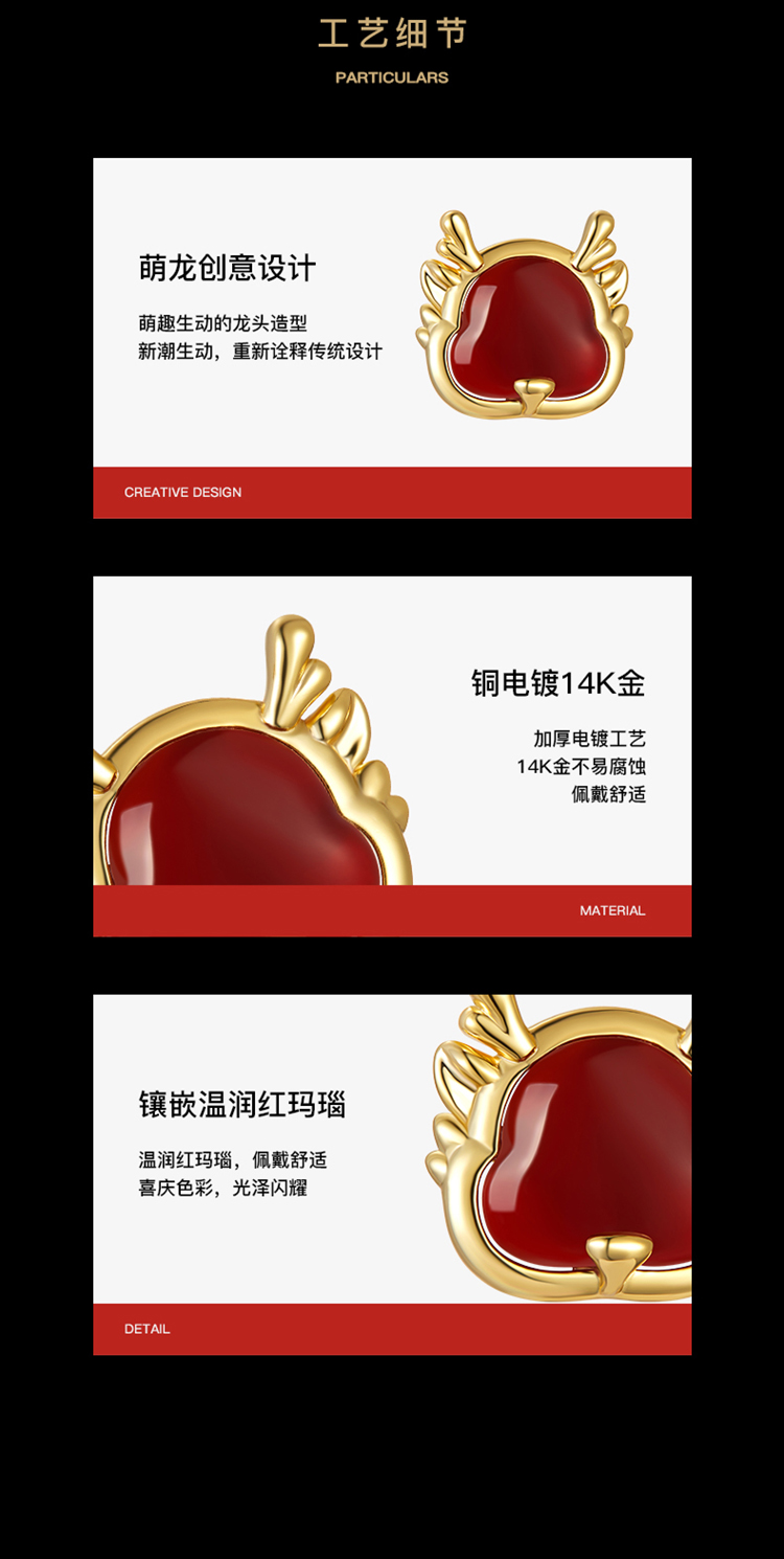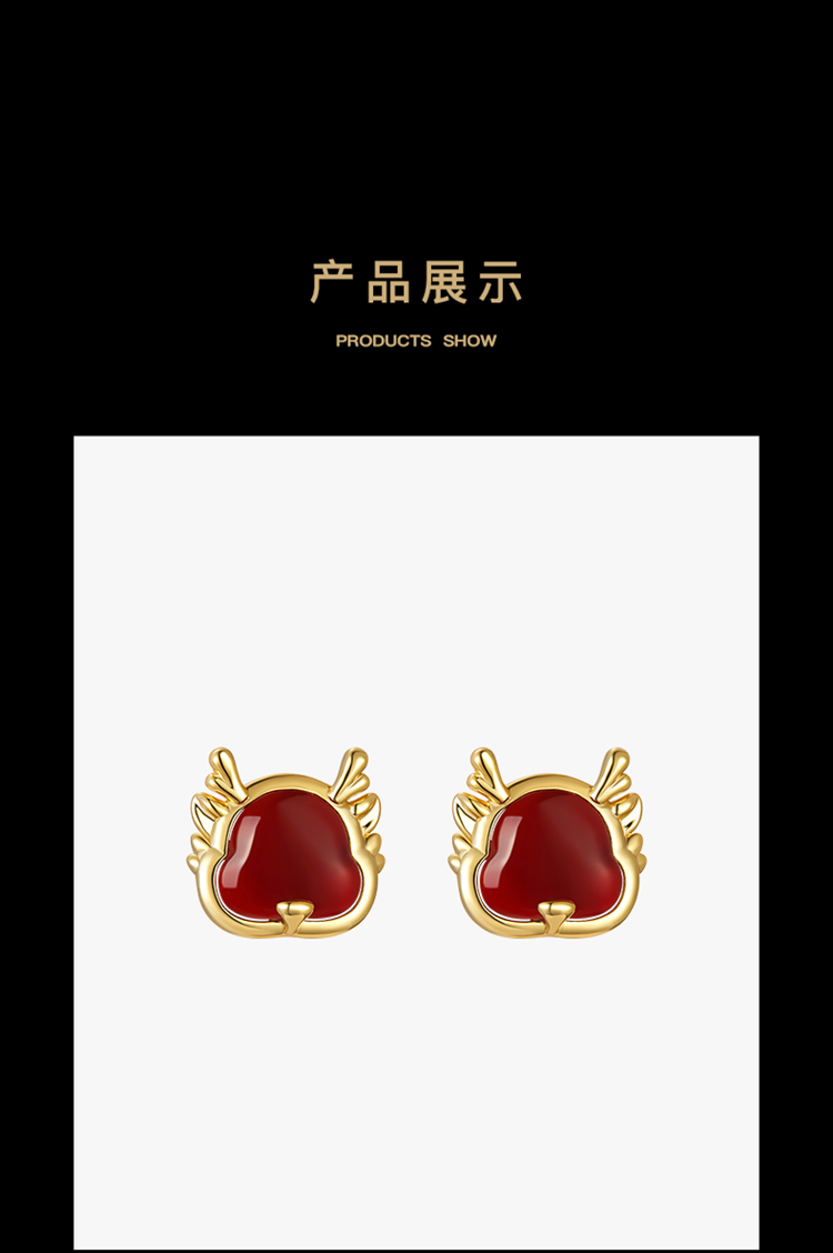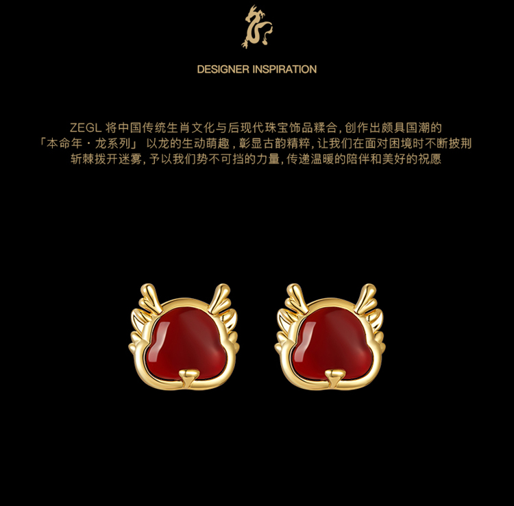 ZEGL设计师本命年龙系列红玛瑙耳环女小众属龙S925银耳钉新年耳饰
