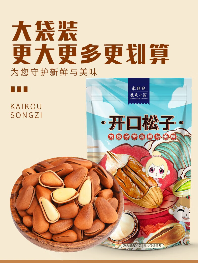 东北松子特大颗粒手剥开口松子仁坚果炒货干果休闲零食