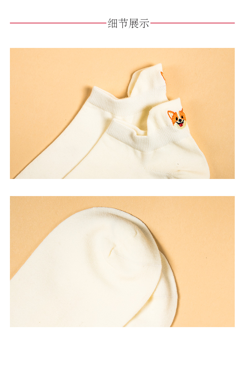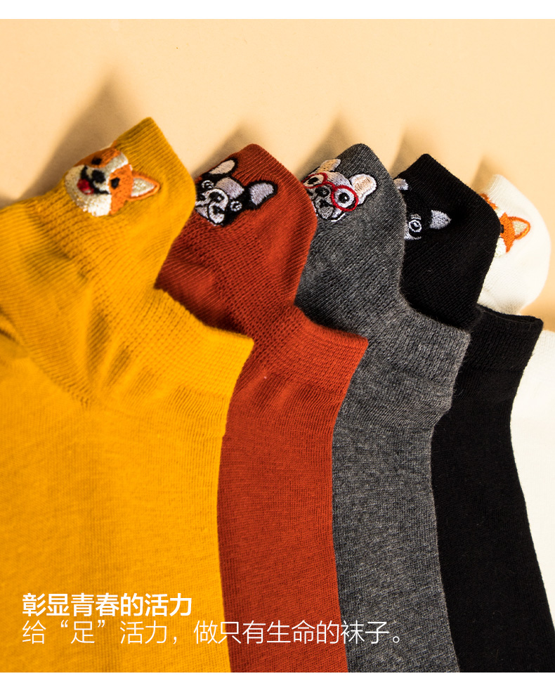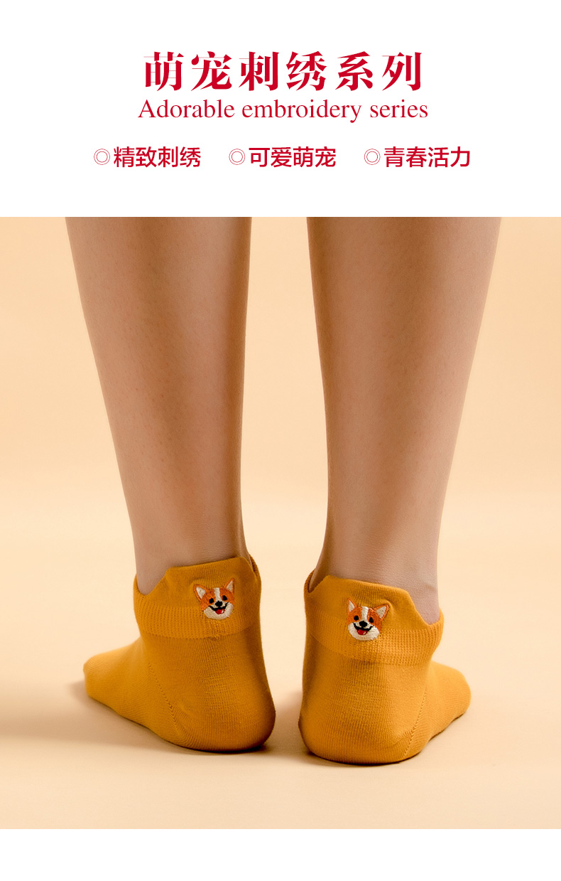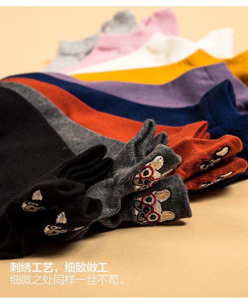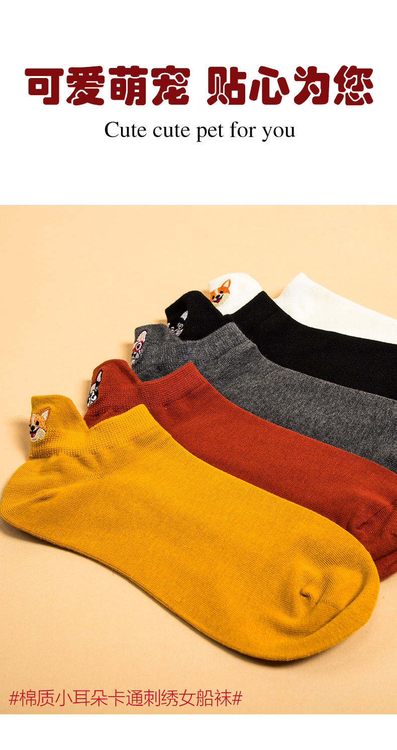 【任选6双79.5】秋冬萌宠狗狗精梳棉手工缝合刺绣工艺棉质小耳朵卡通刺绣女船袜