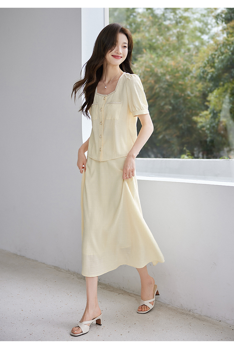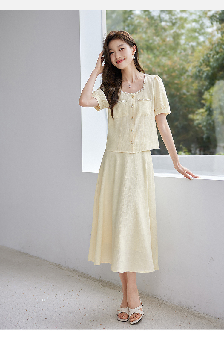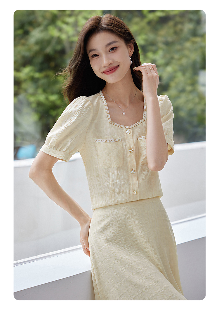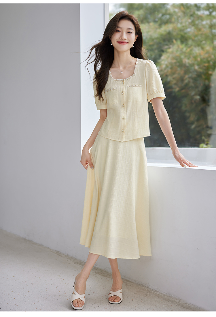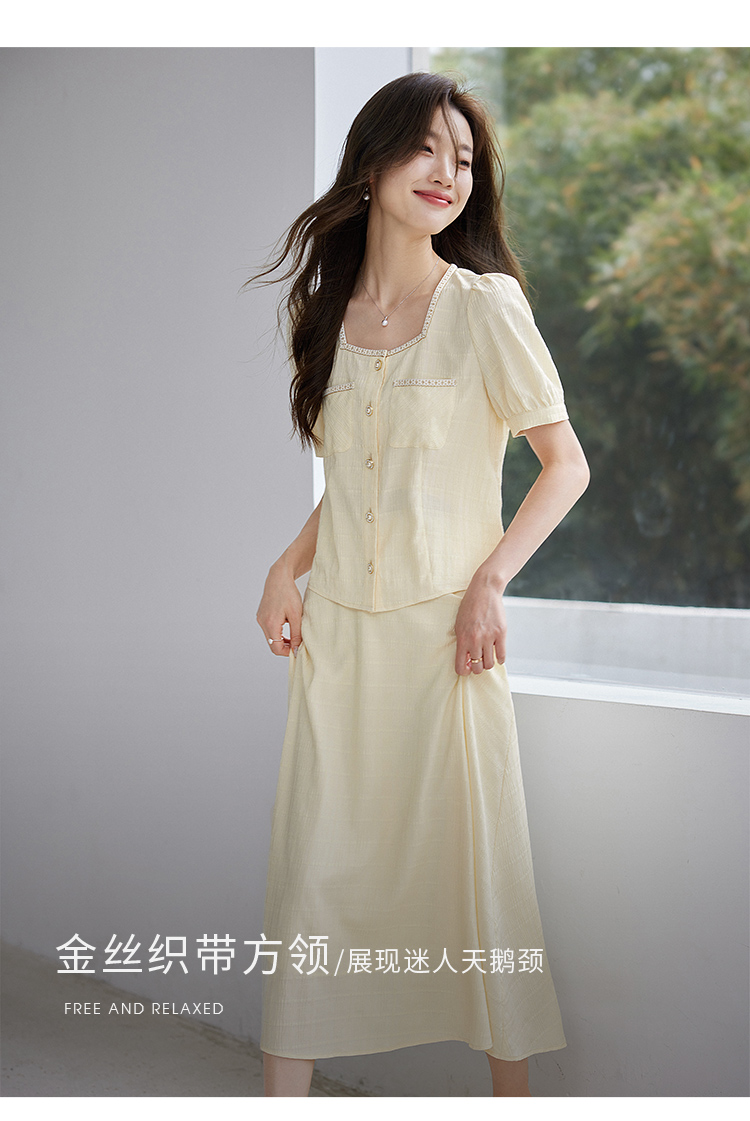【专属特价】熙世界小香风时尚套装夏2025新款法式方领上衣半身裙两件套裙装