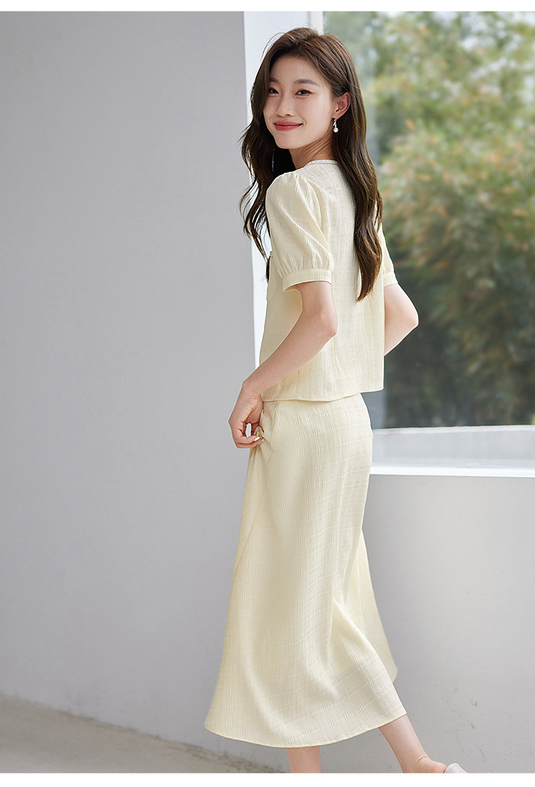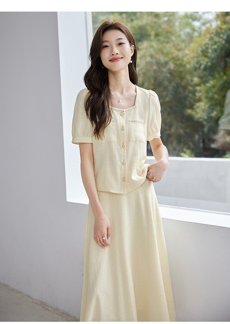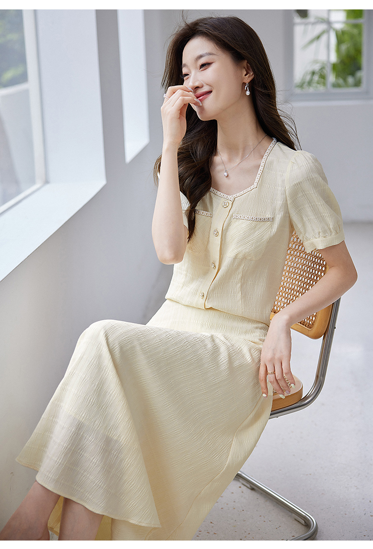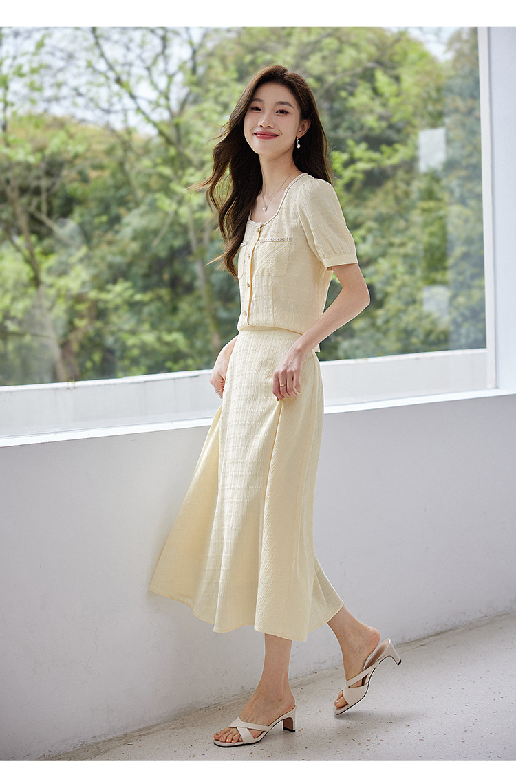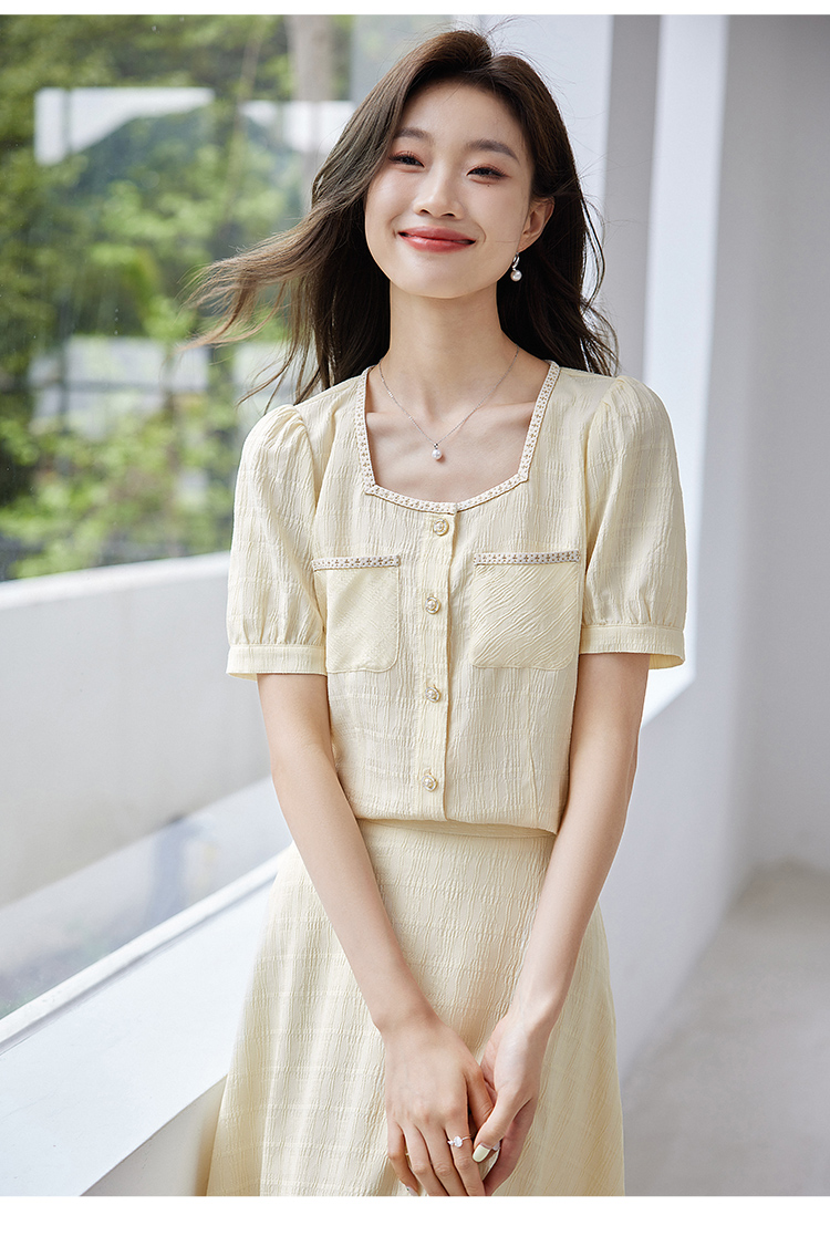 【专属特价】熙世界小香风时尚套装夏2025新款法式方领上衣半身裙两件套裙装