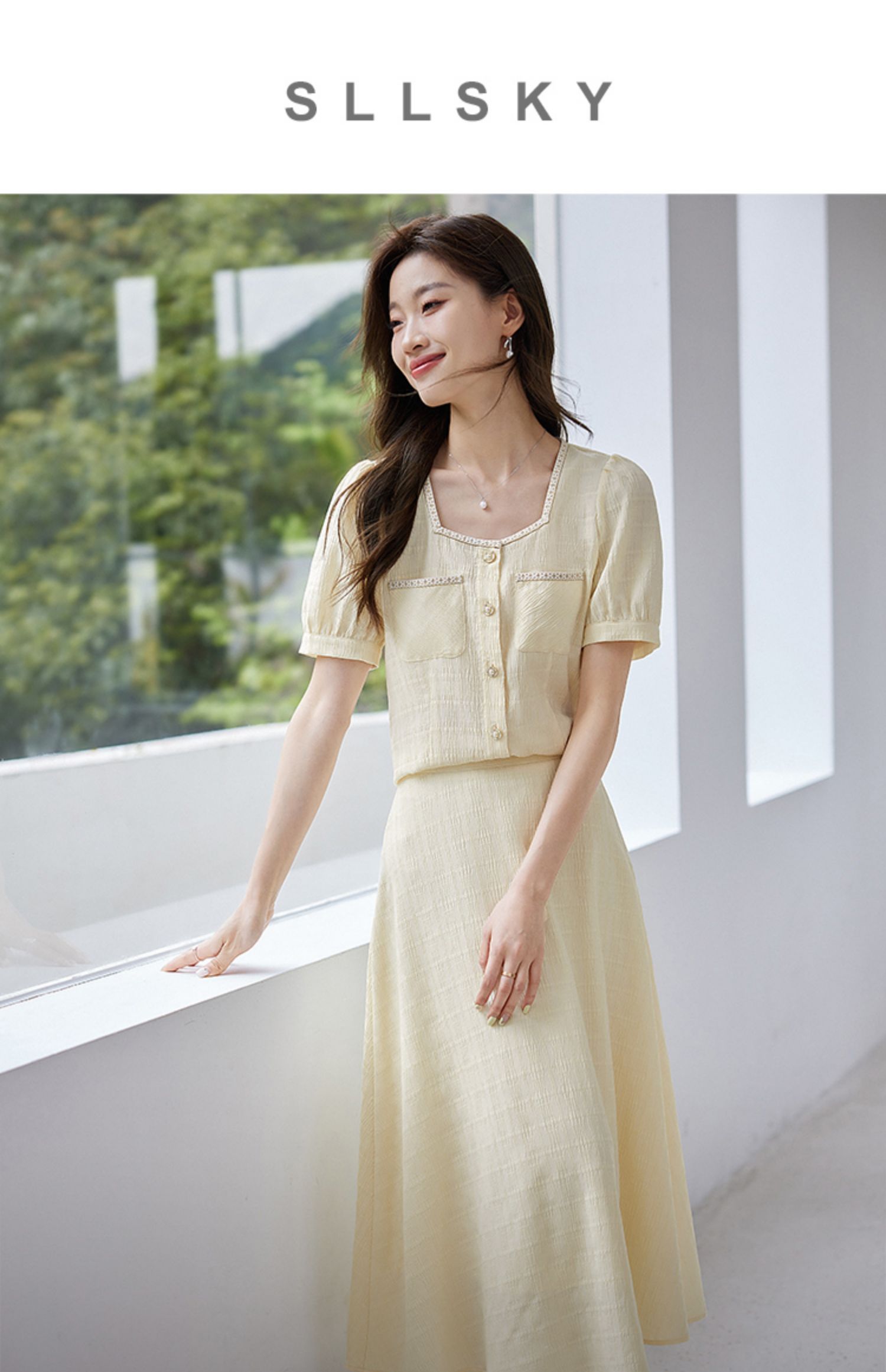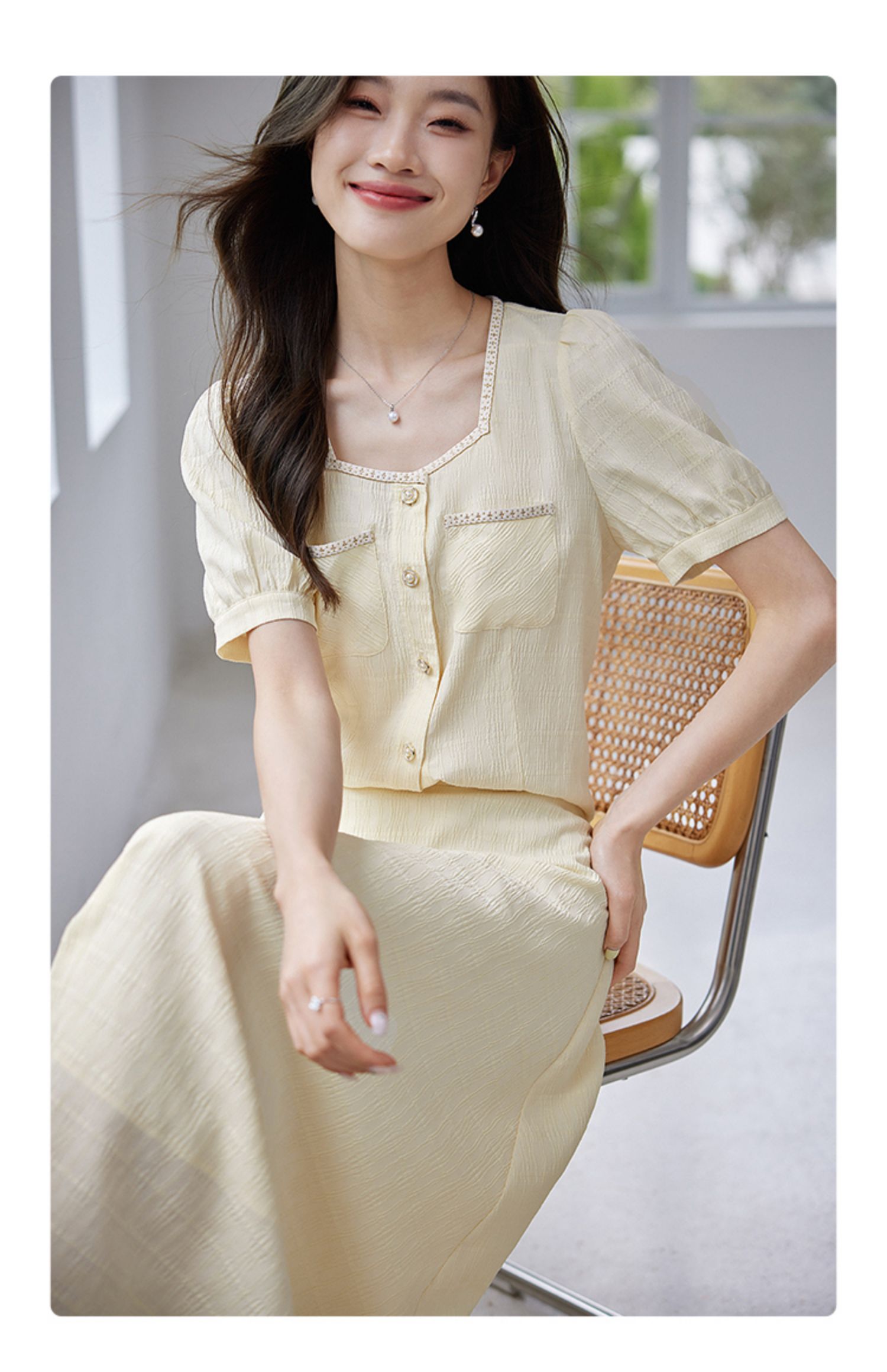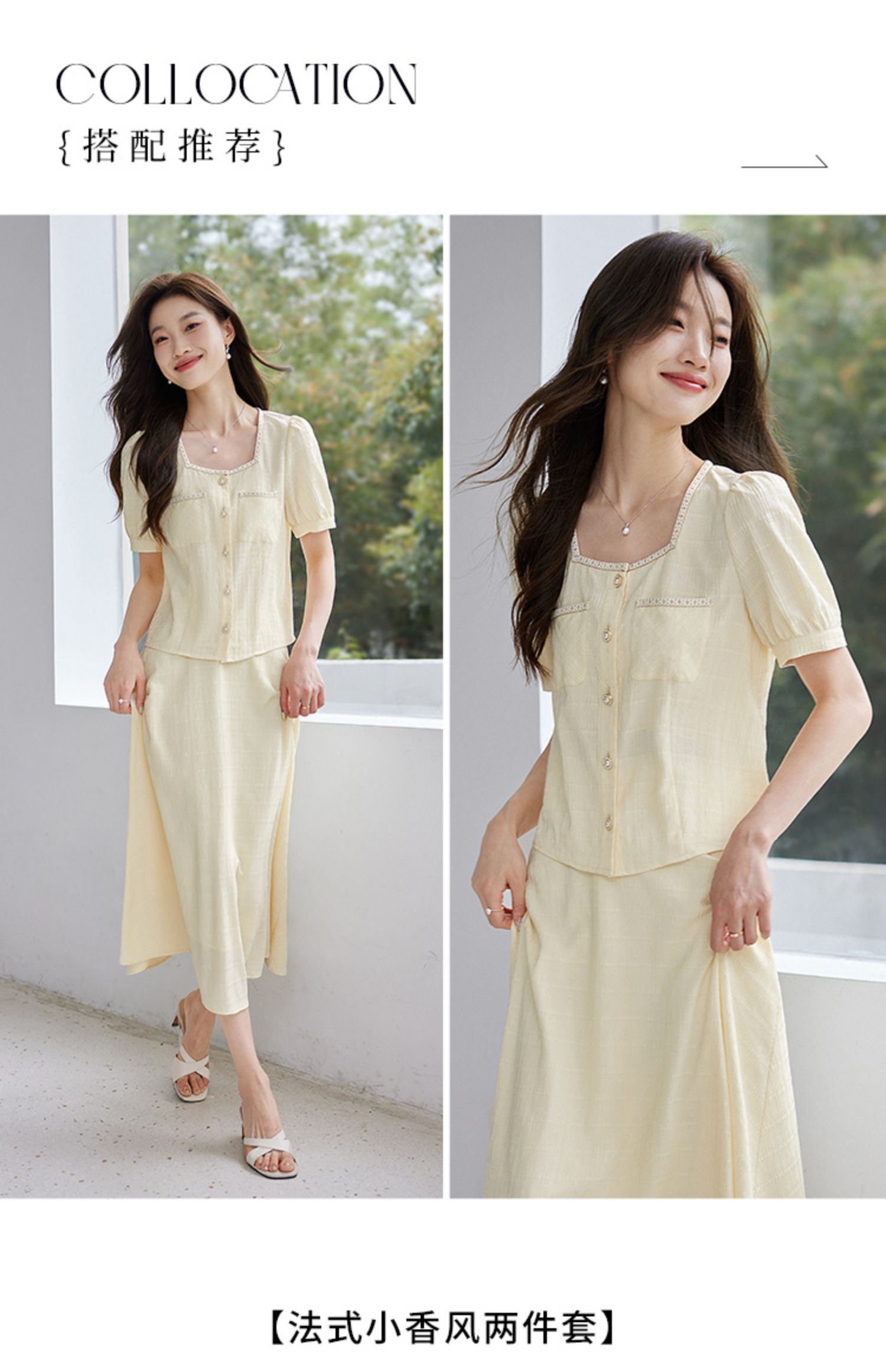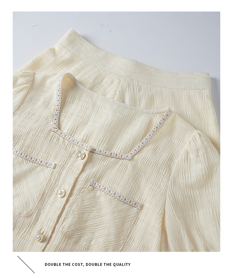 【专属特价】熙世界小香风时尚套装夏2025新款法式方领上衣半身裙两件套裙装