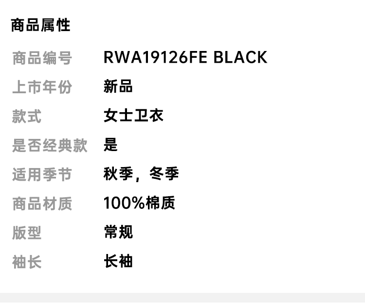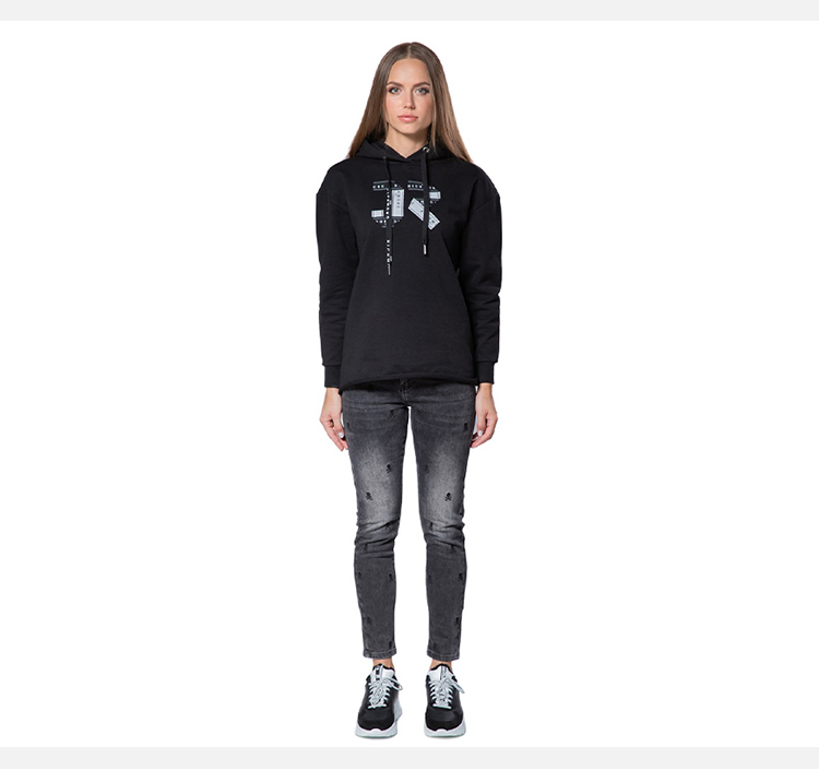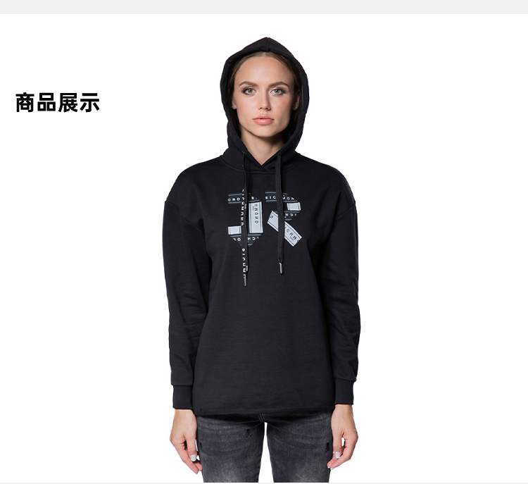 RICHMOND 女士棉质字母印花抽绳连帽卫衣 黑色 RWA19126FE BLACK
