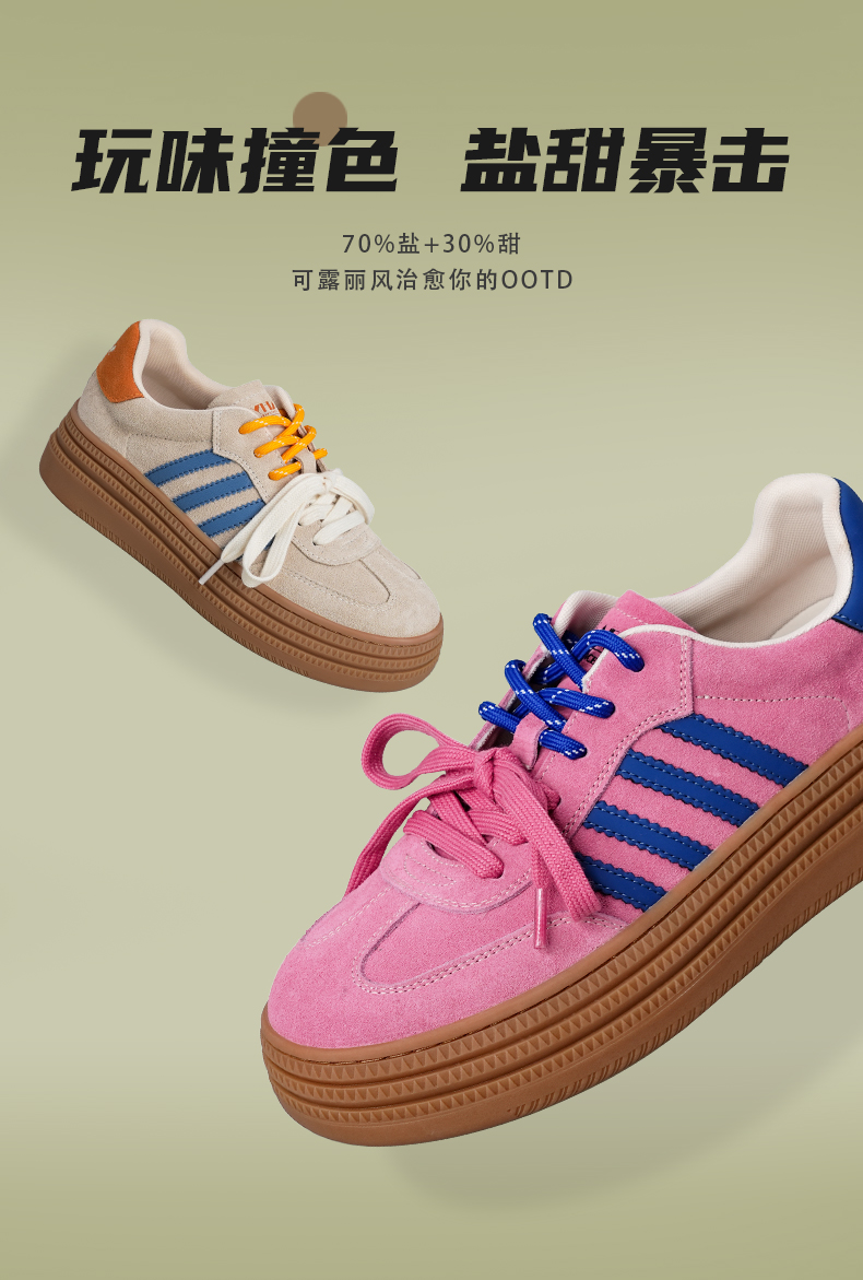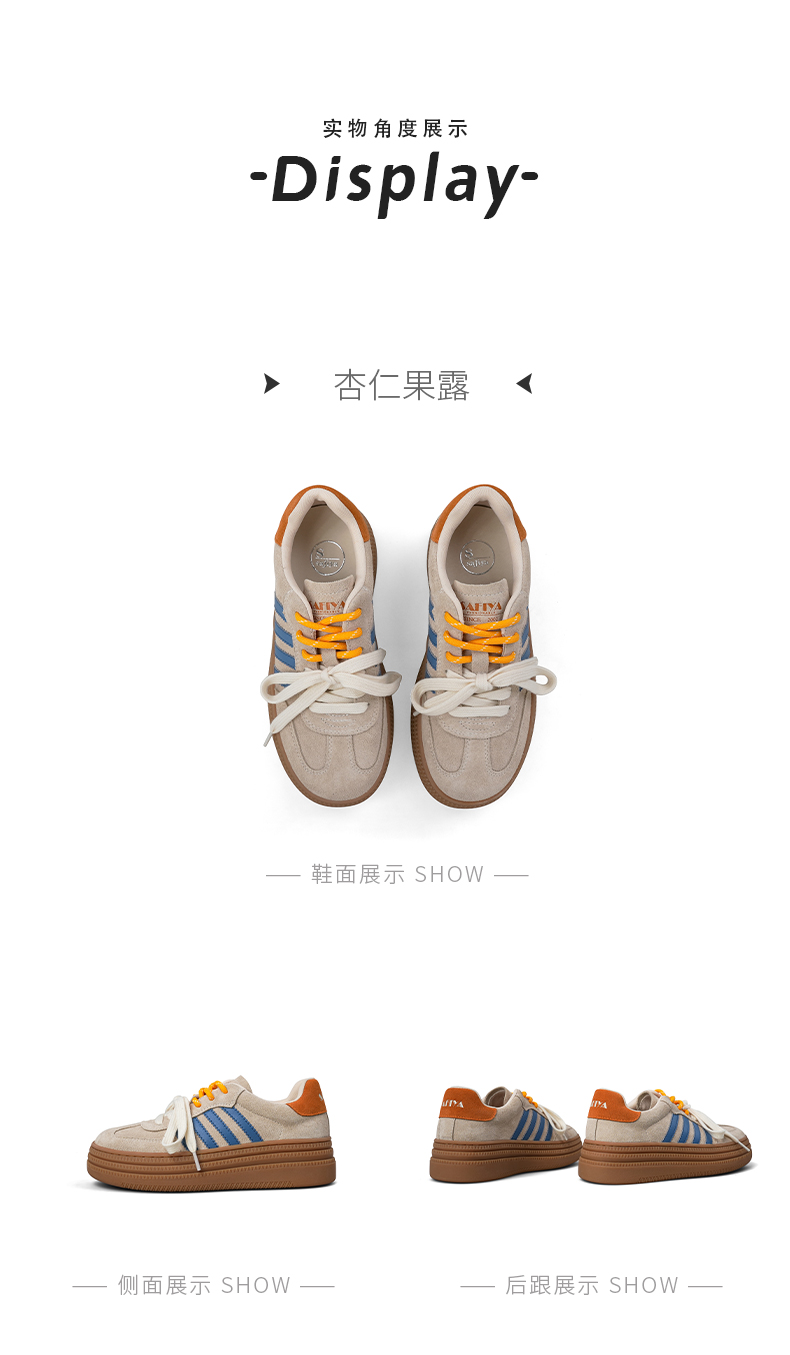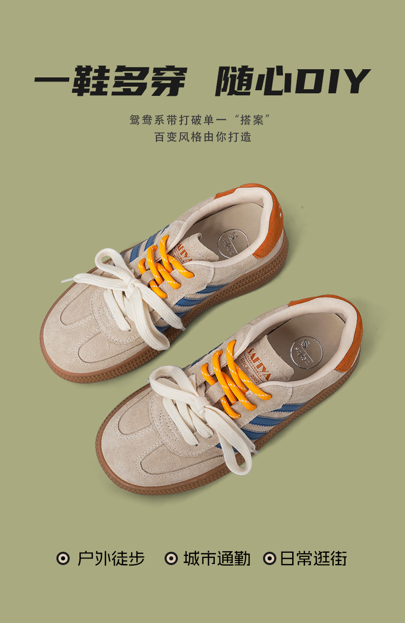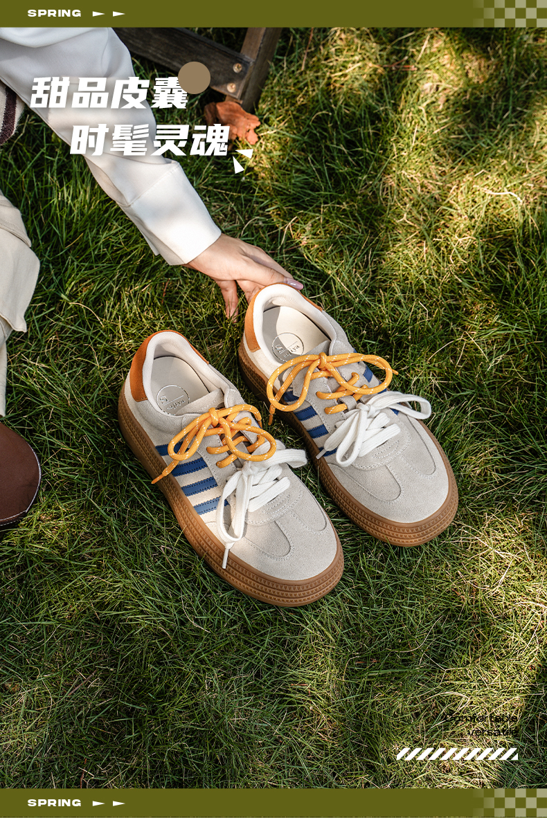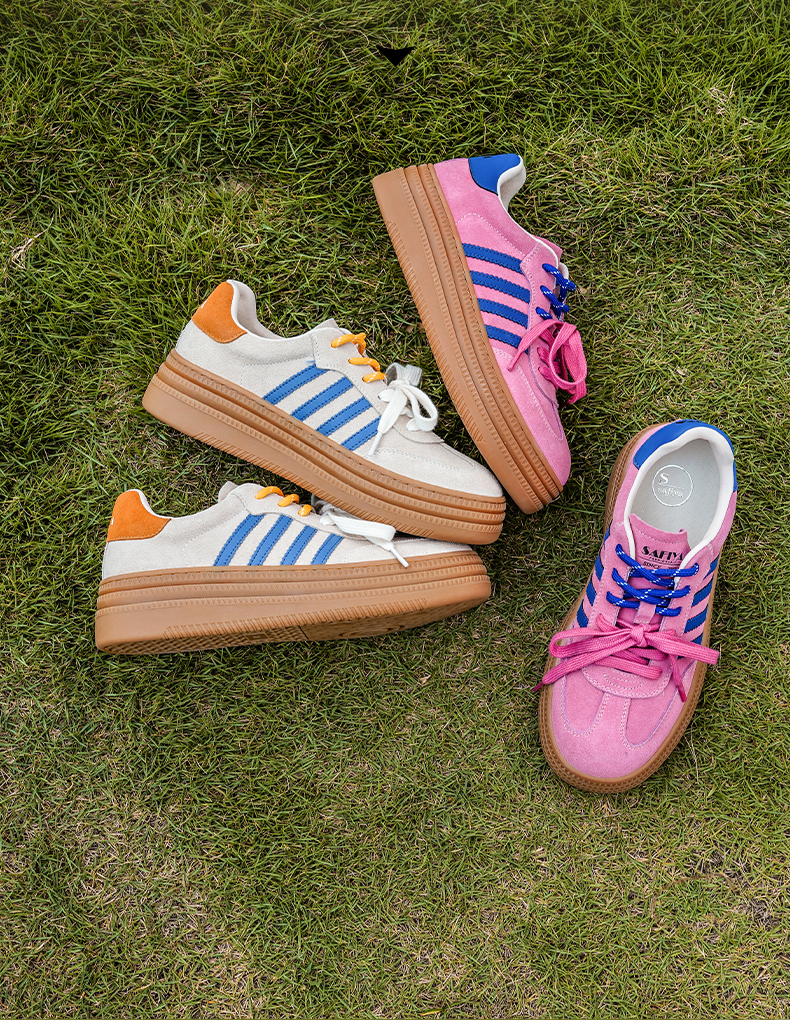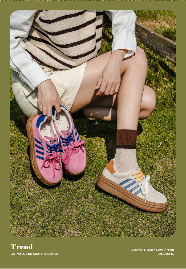 预售7天|Safiya/索菲娅2025可露丽拼色厚底双系带休闲复古百搭德训鞋SFD3112439