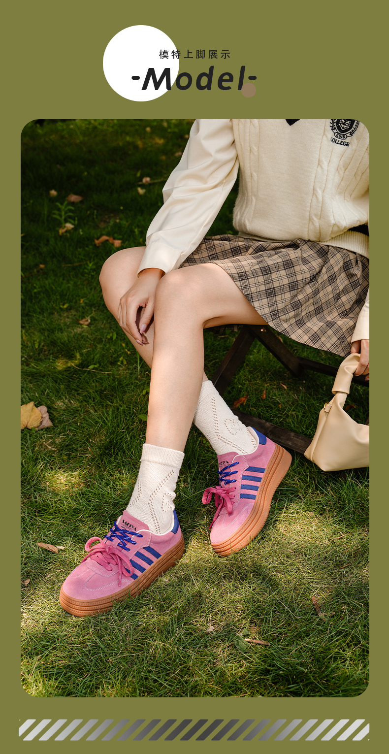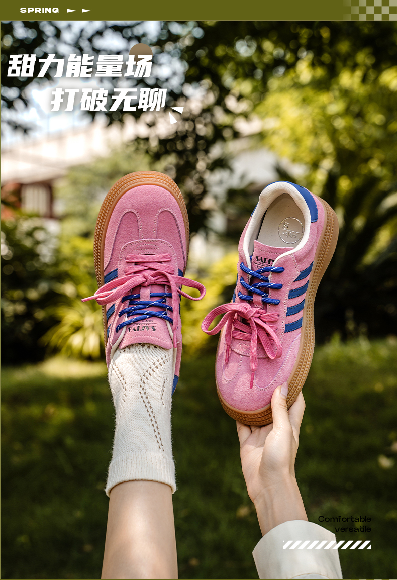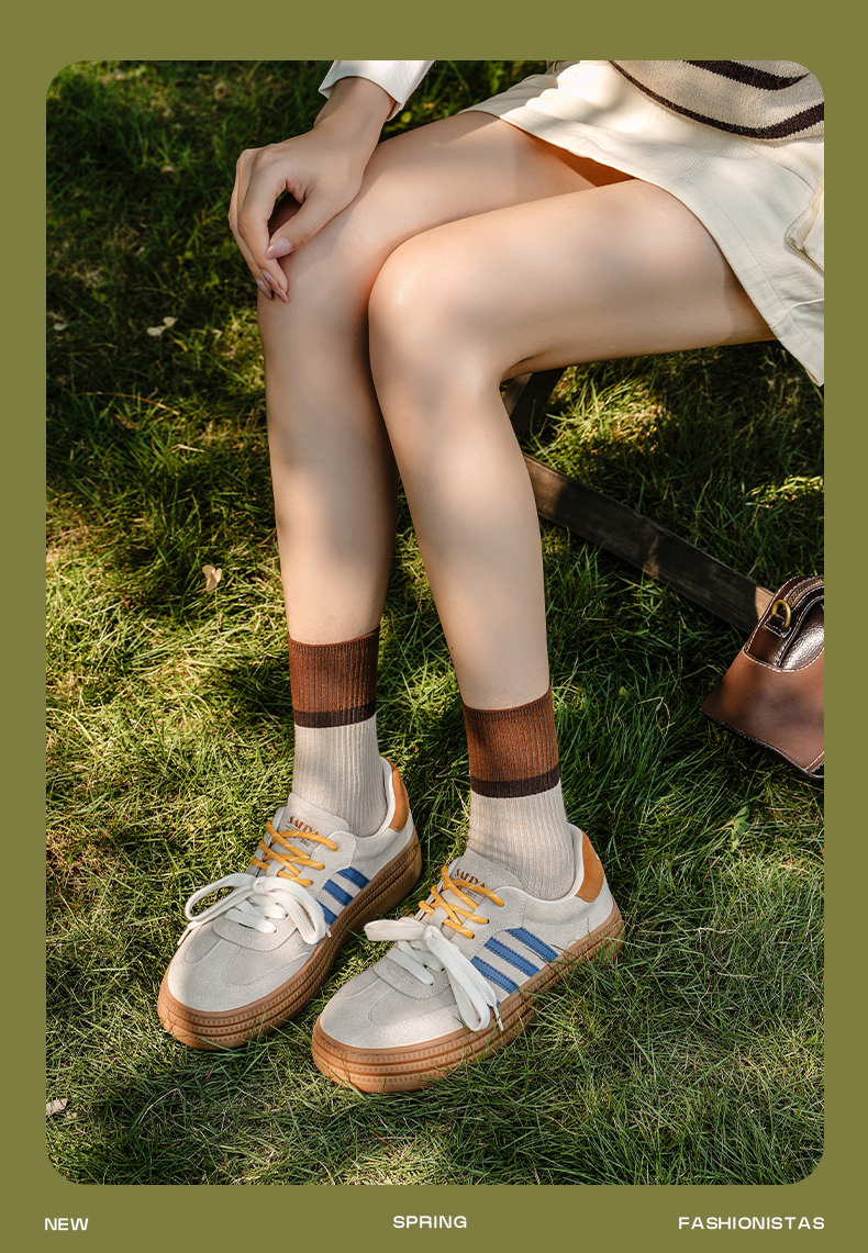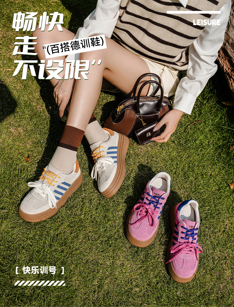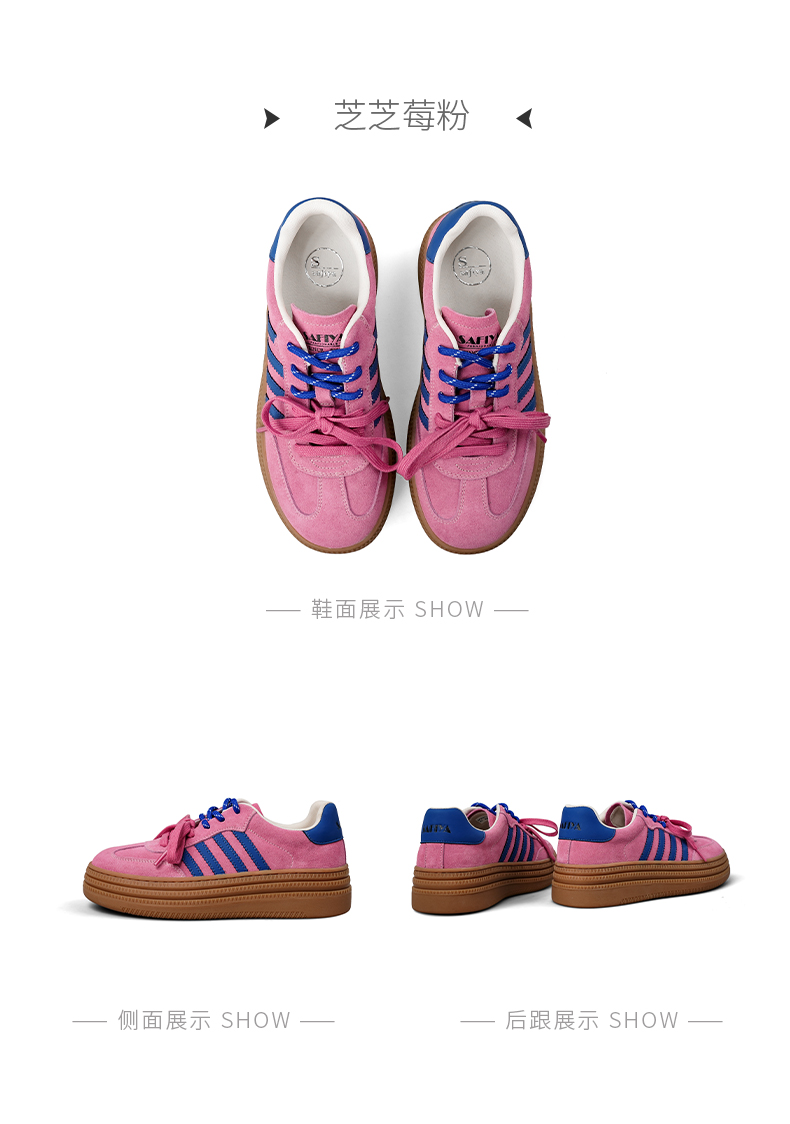 预售7天|Safiya/索菲娅2025可露丽拼色厚底双系带休闲复古百搭德训鞋SFD3112439