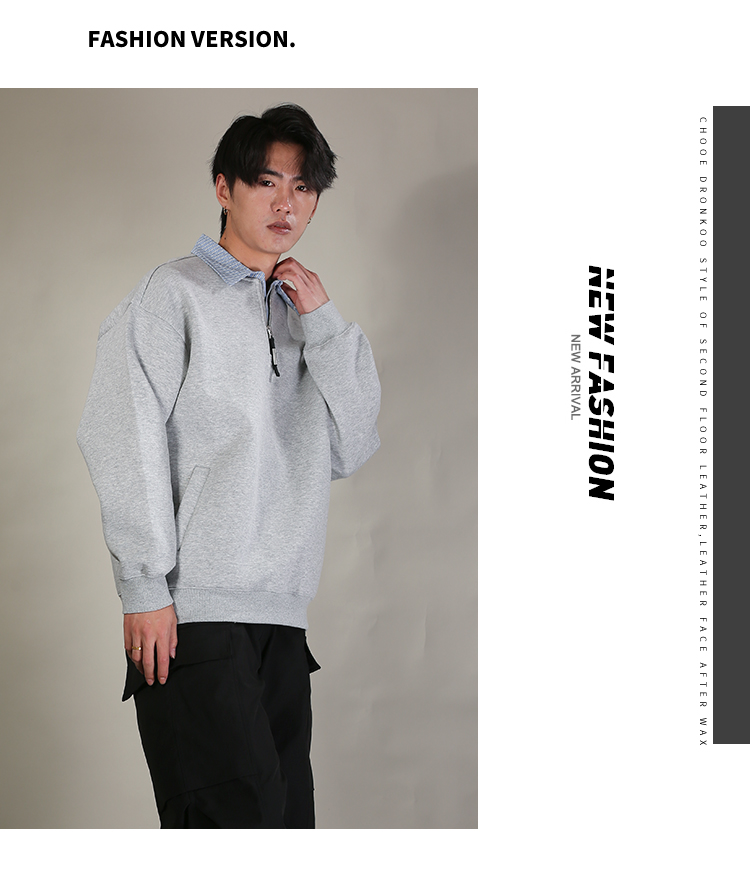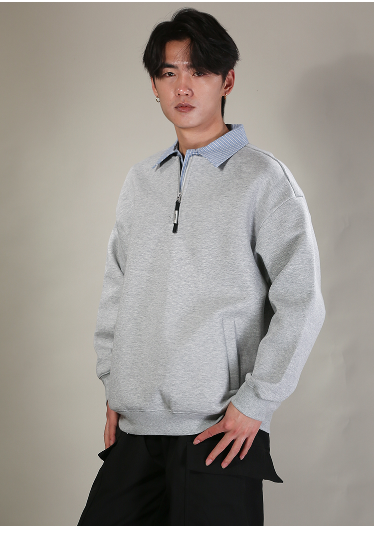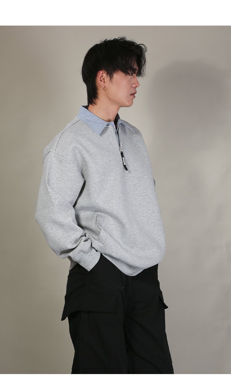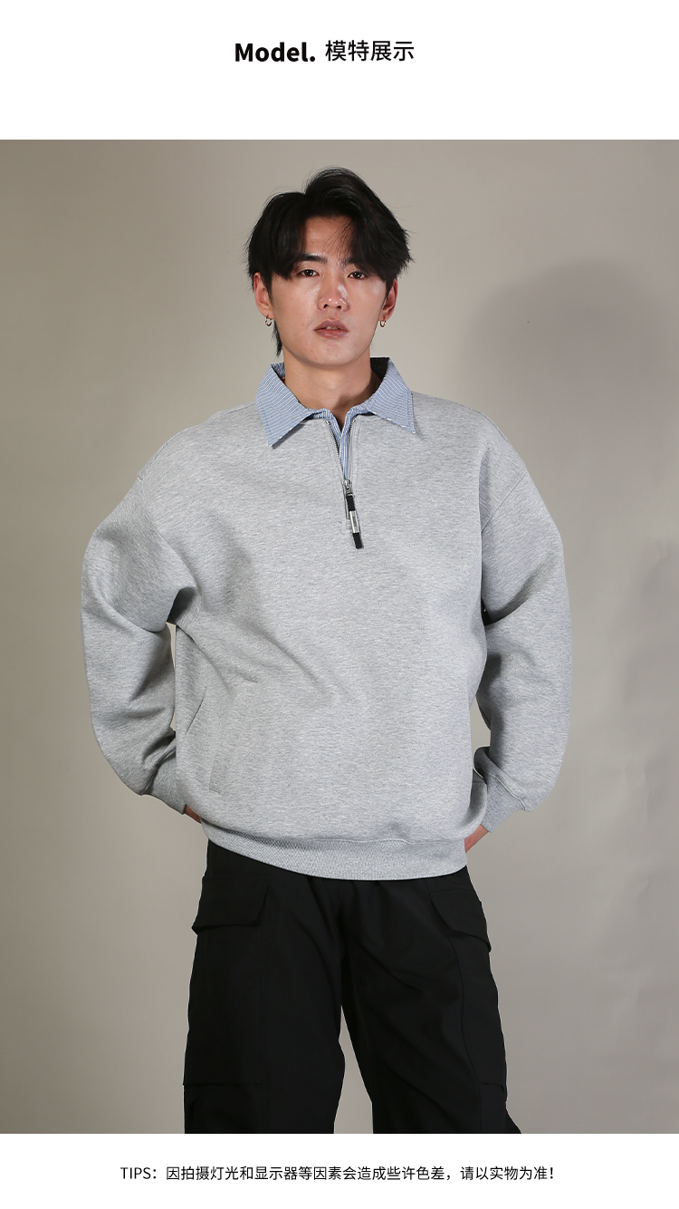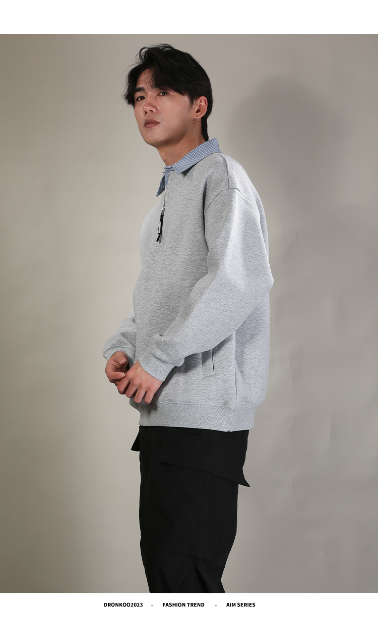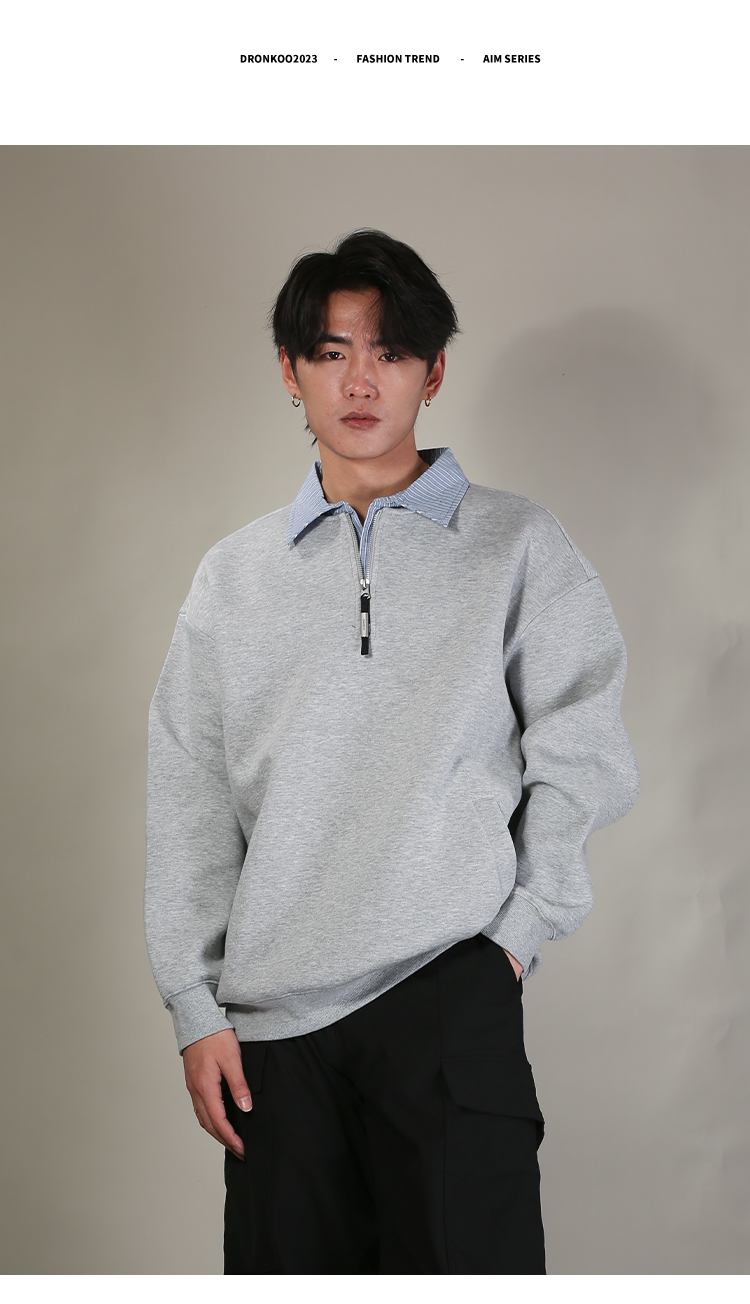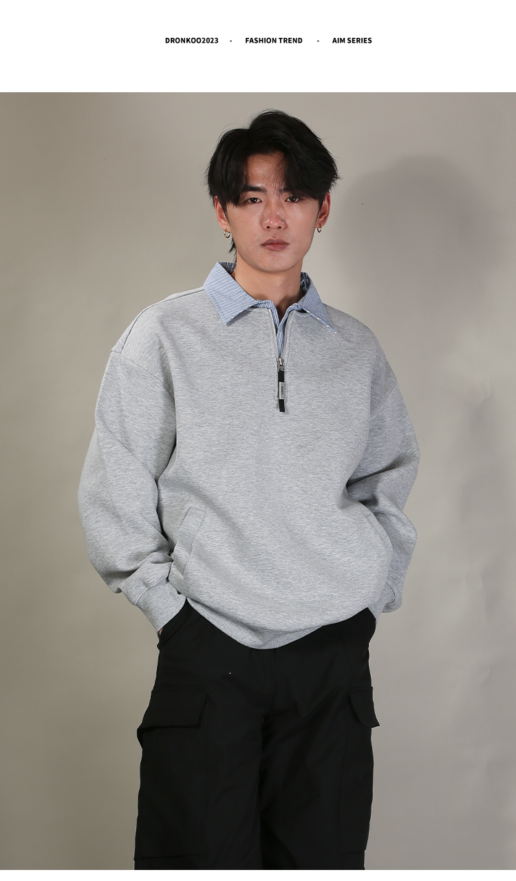 DRONKOO 2026 翻领拼条纹布领口拉链中厚卫衣