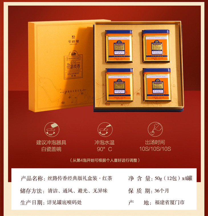 华祥苑茶叶 丝路传香经典特级小种红茶礼盒装200g