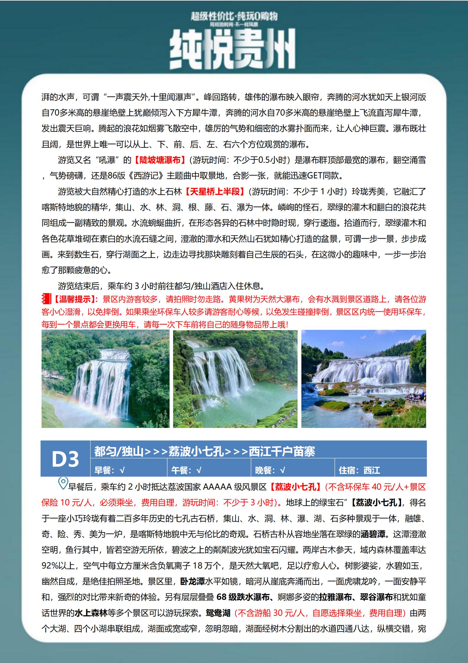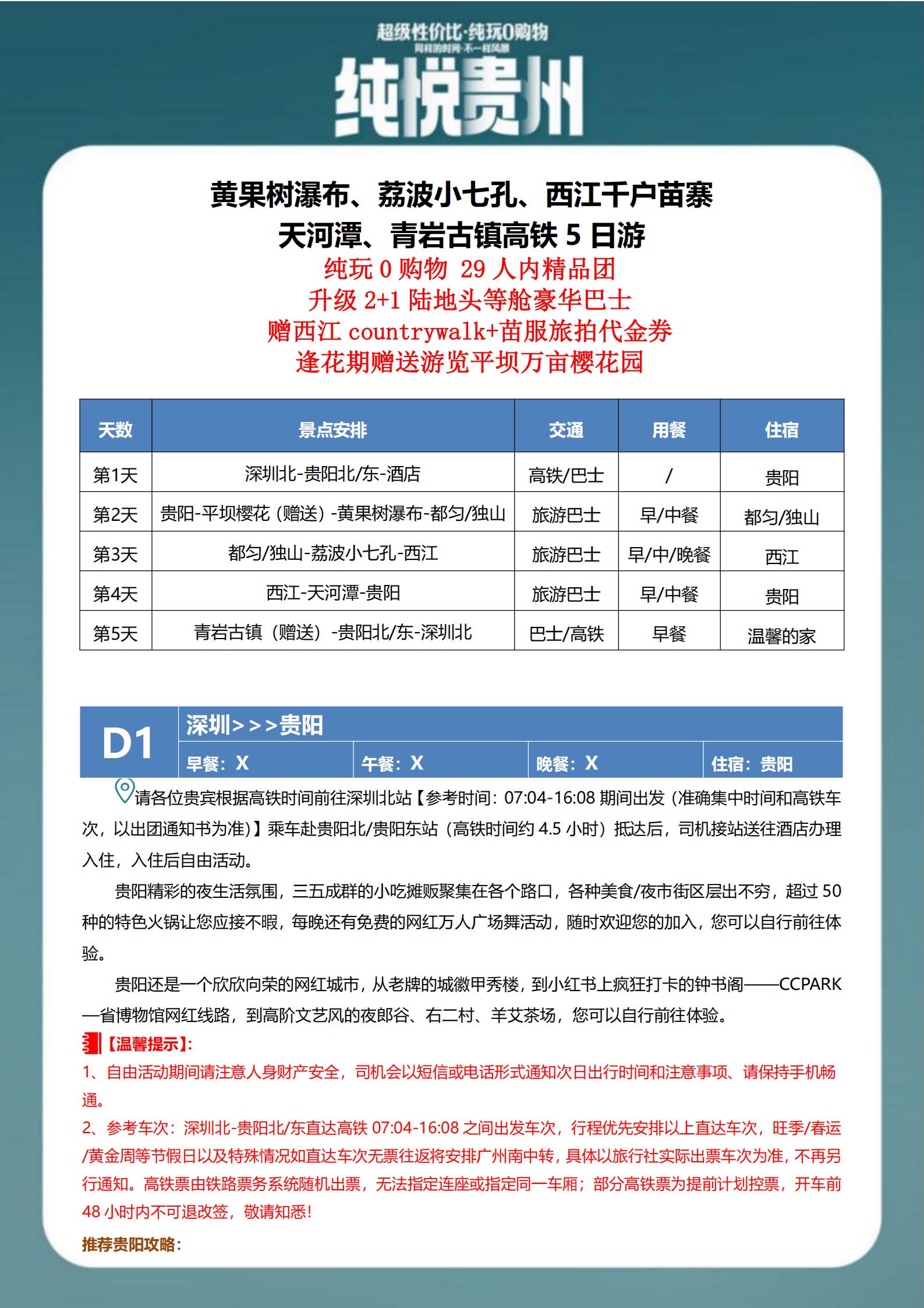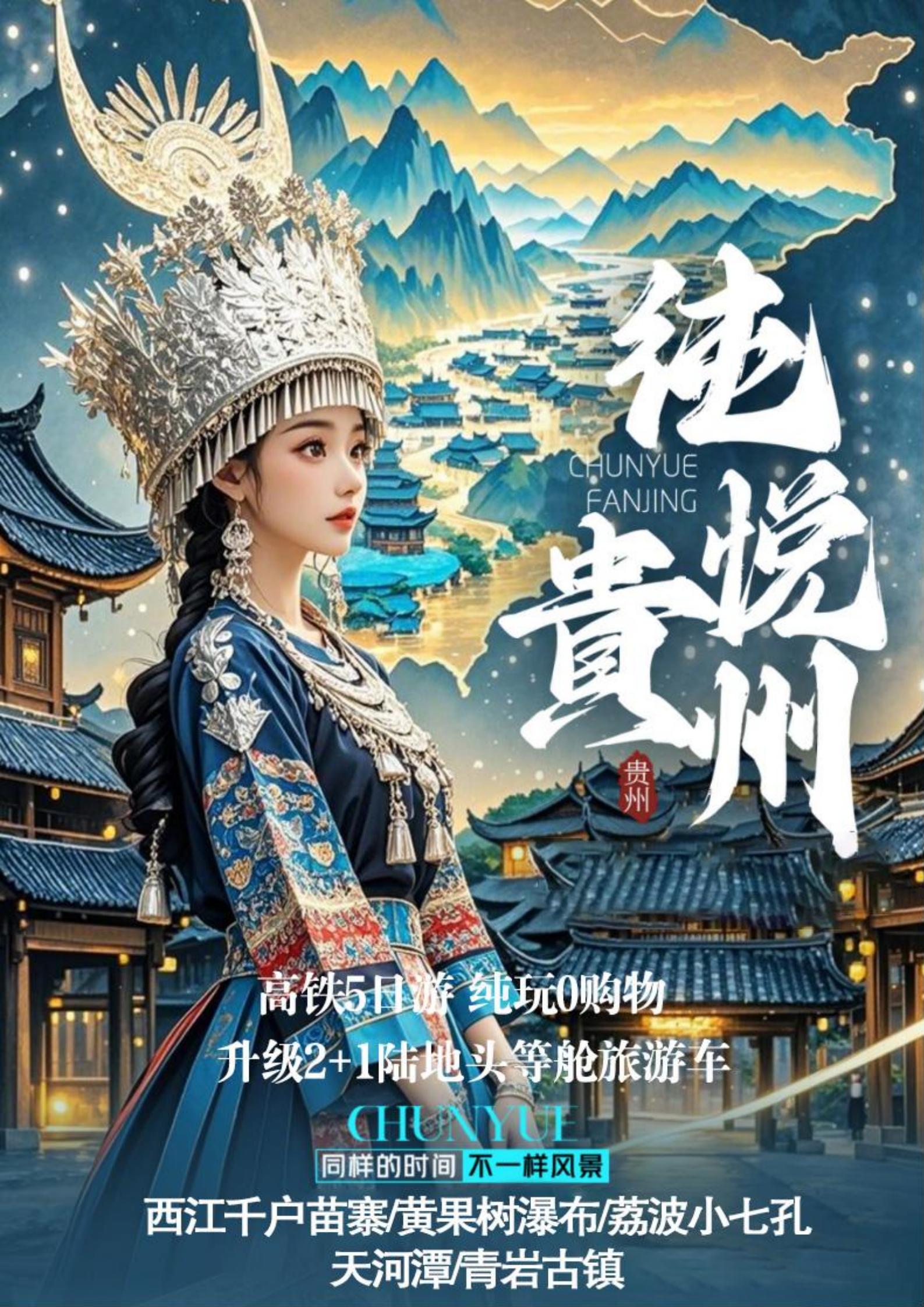 【特惠游】贵州黄果树瀑布+荔波小七孔+西江千户苗寨+天河潭+青岩古镇+平坝樱花高铁5日游