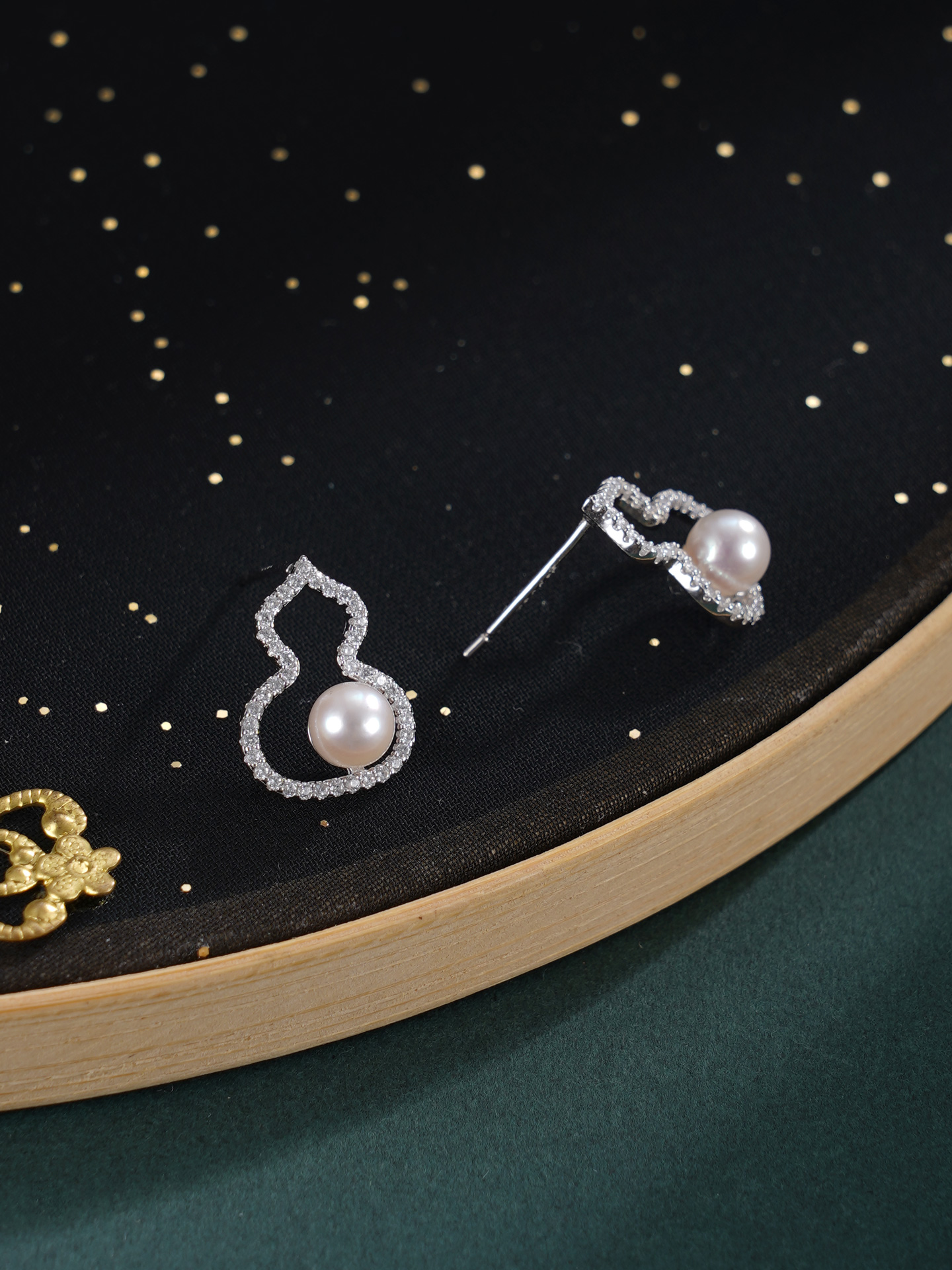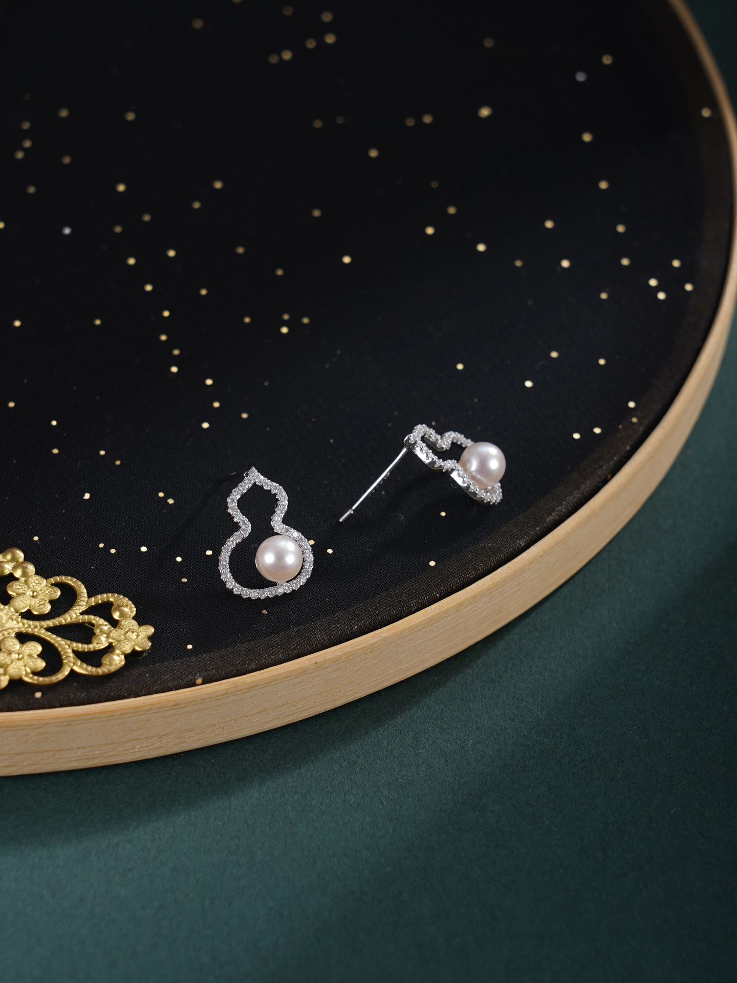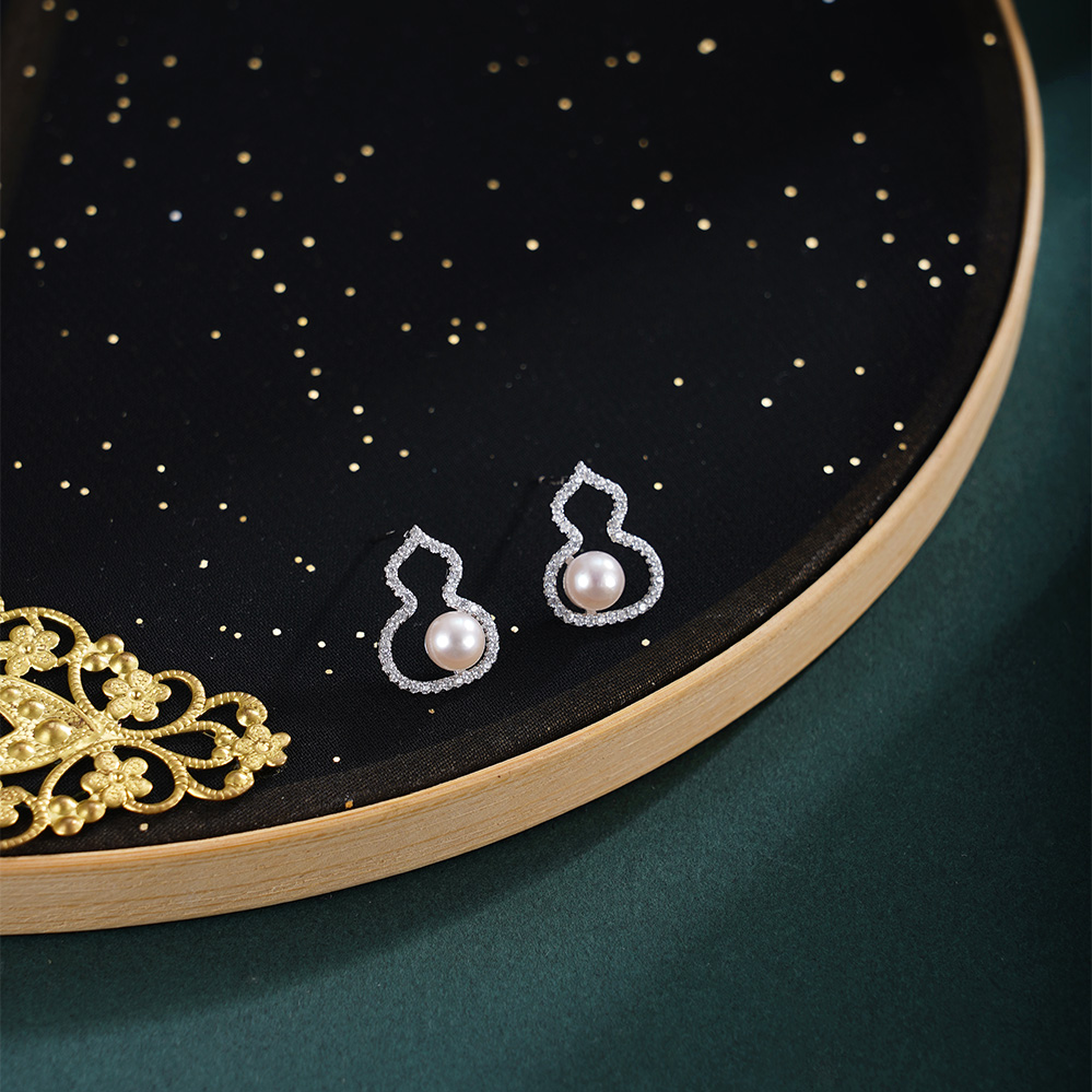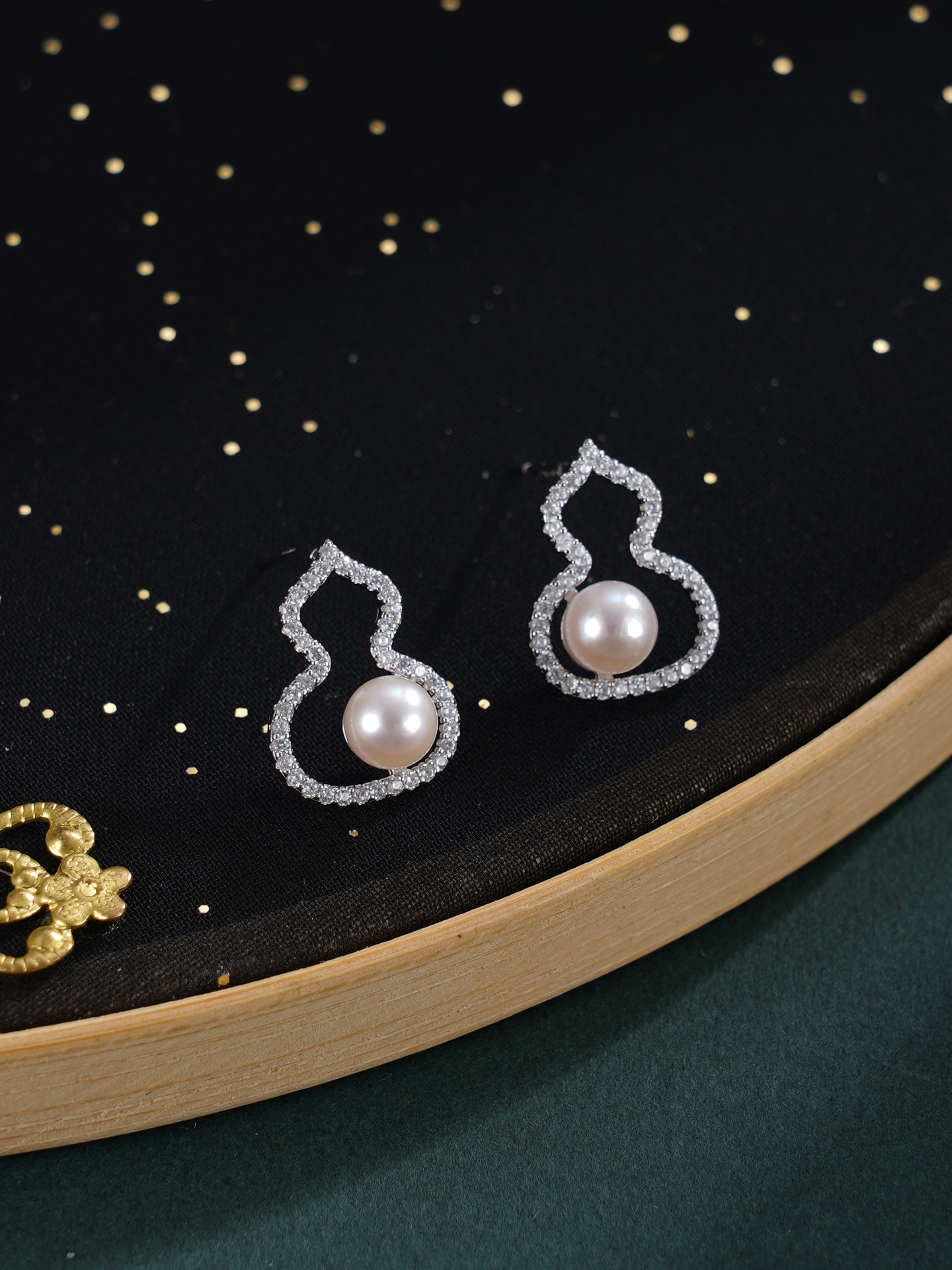 子佩集【纳福之珠】银S925珍珠惜王妃耳钉【XXED001】5mm珠双色葫芦2601