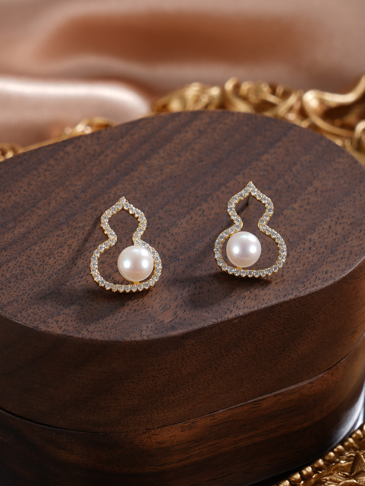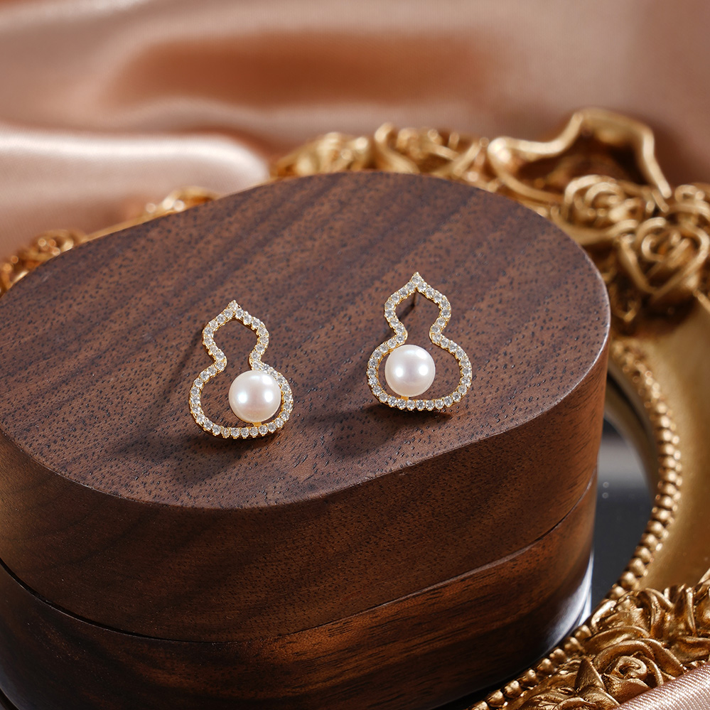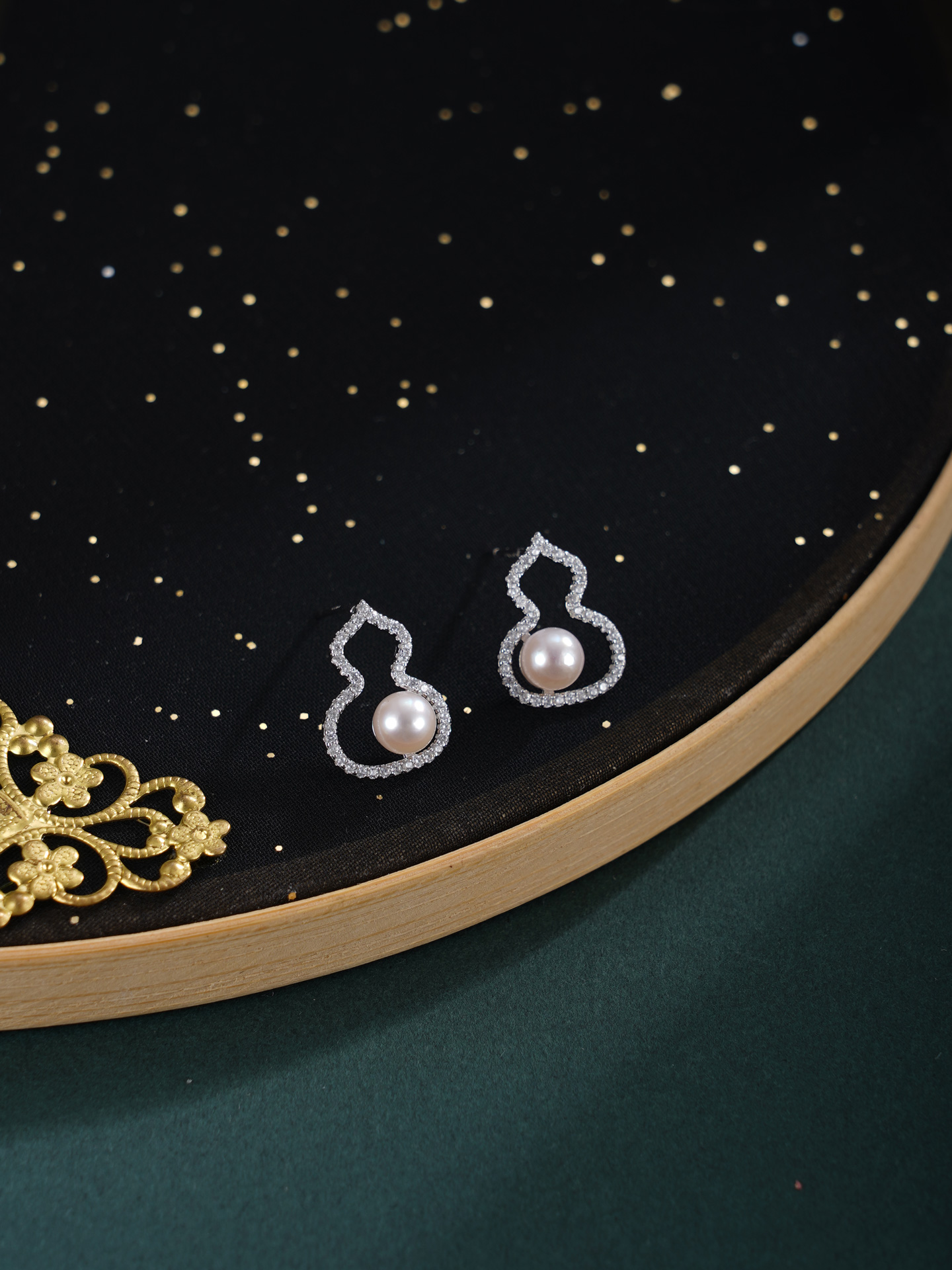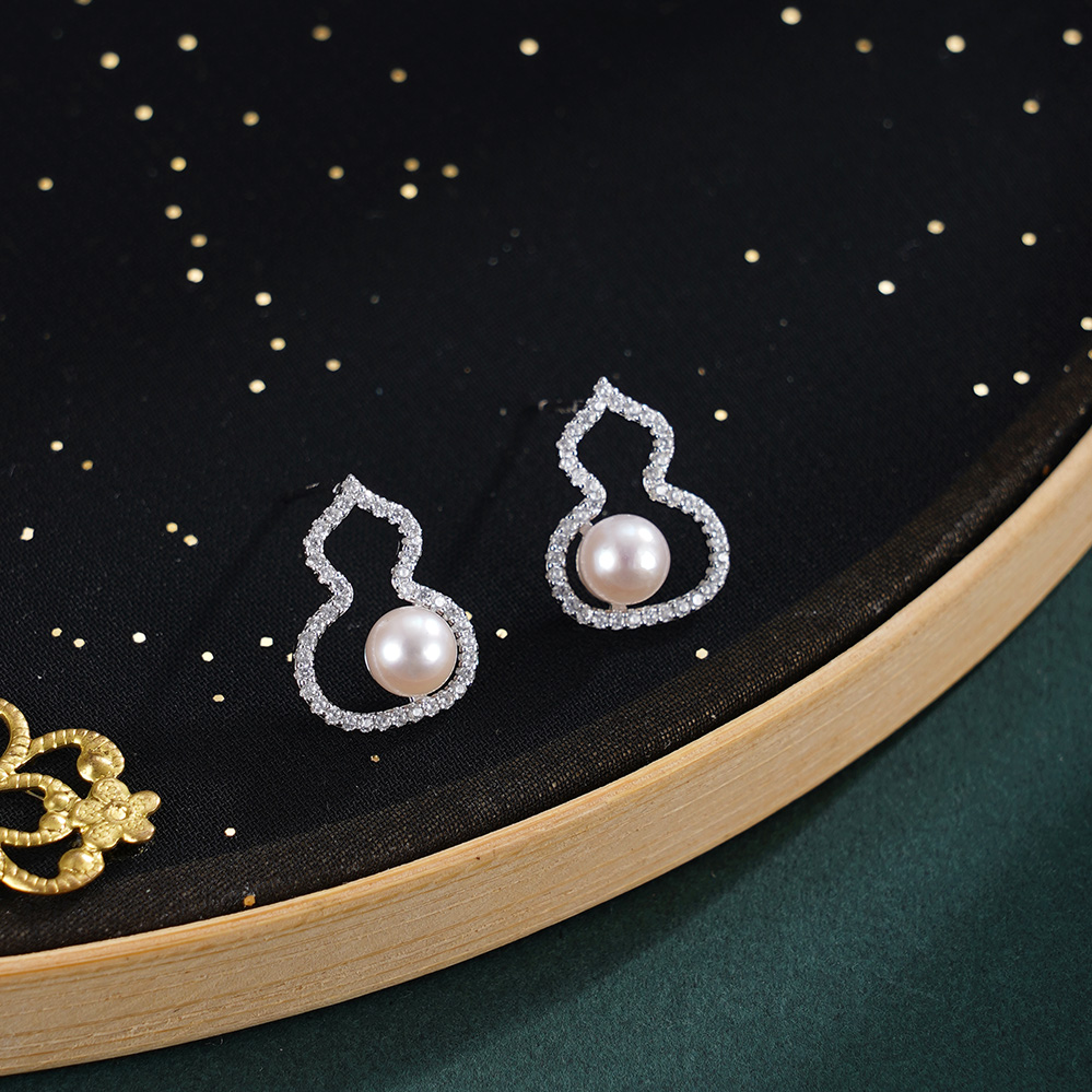 子佩集【纳福之珠】银S925珍珠惜王妃耳钉【XXED001】5mm珠双色葫芦2601