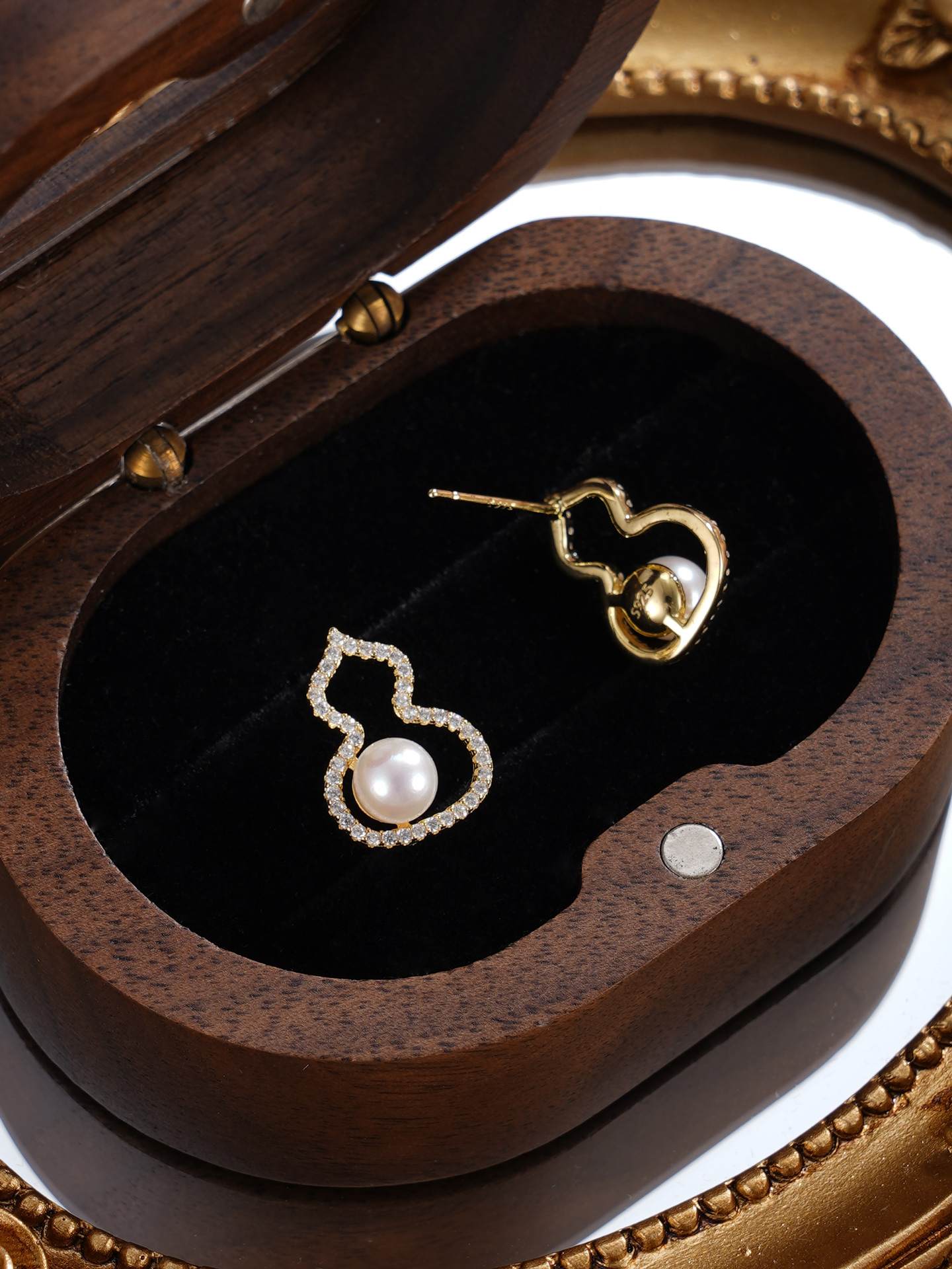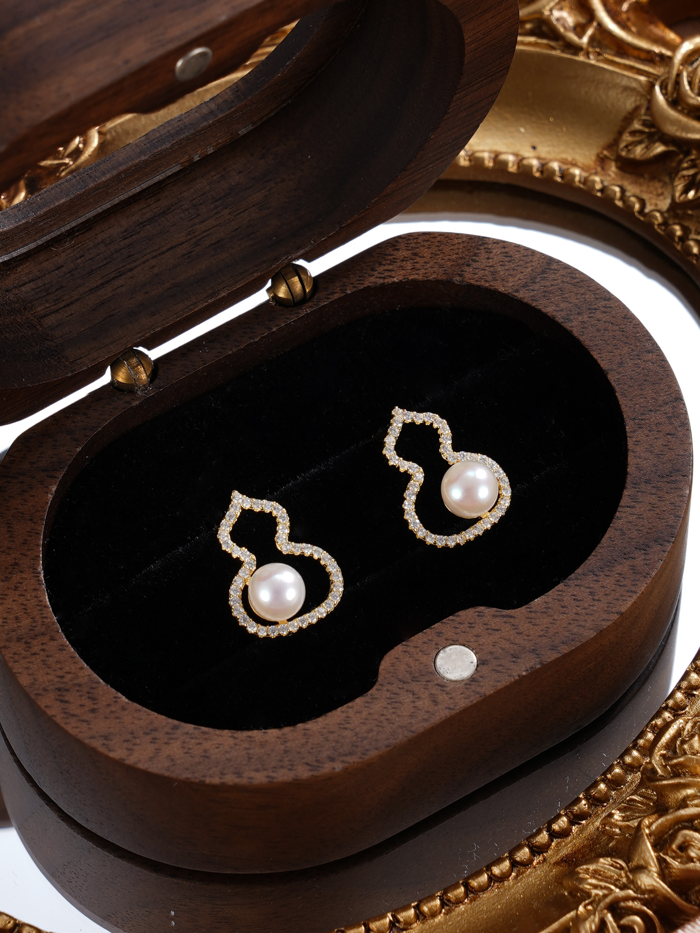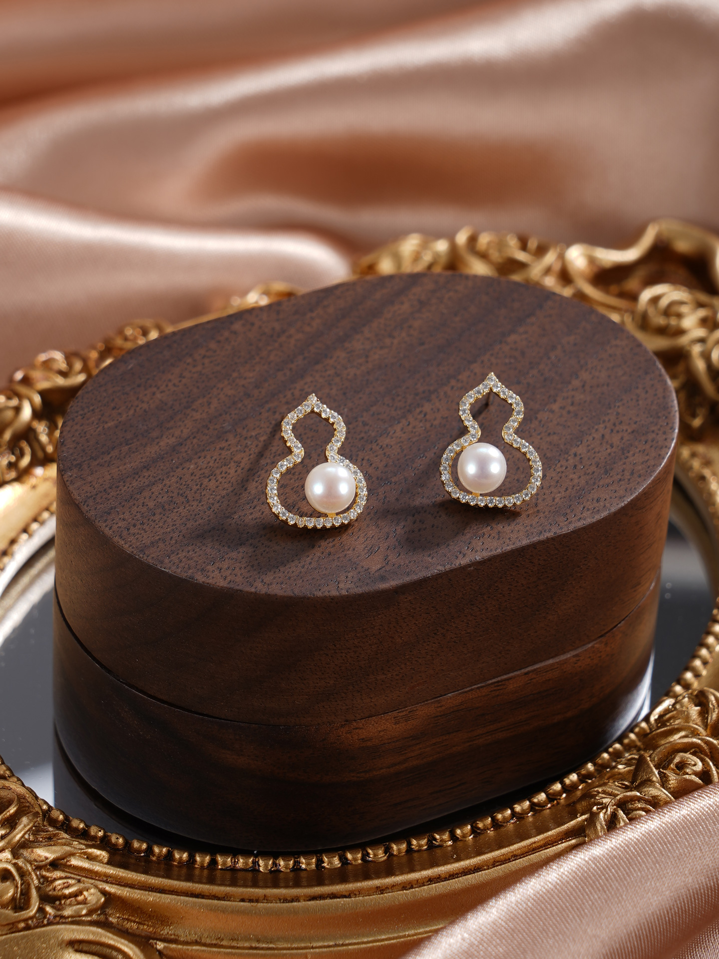 子佩集【纳福之珠】银S925珍珠惜王妃耳钉【XXED001】5mm珠双色葫芦2601