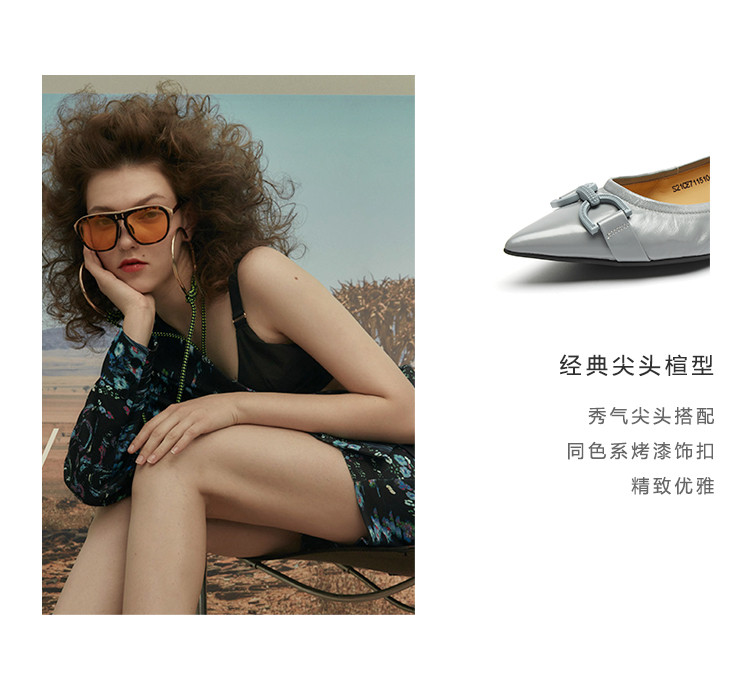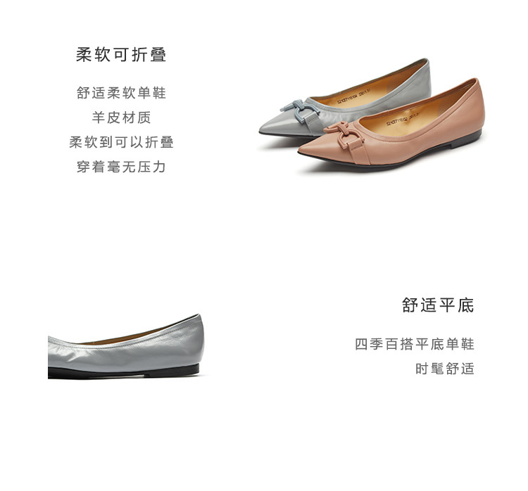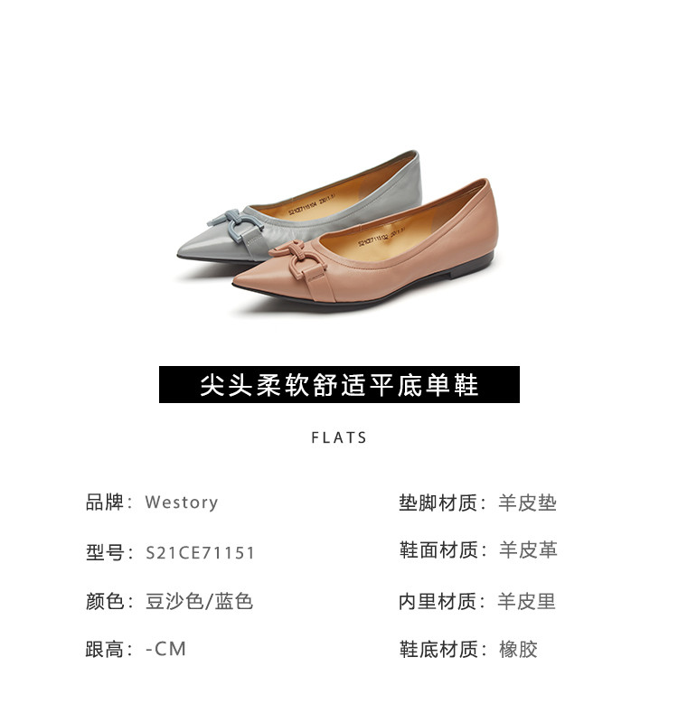 westory女鞋2021夏季新款尖头纯色舒适软底通勤豆豆鞋平底单鞋女S21CE71151