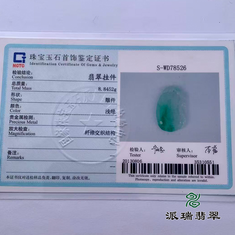 派瑞翡翠 翡翠挂件 糯种 浅绿