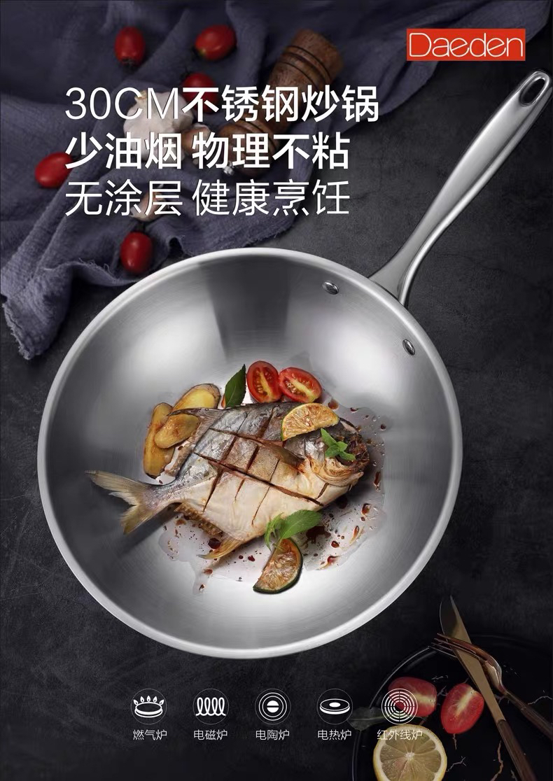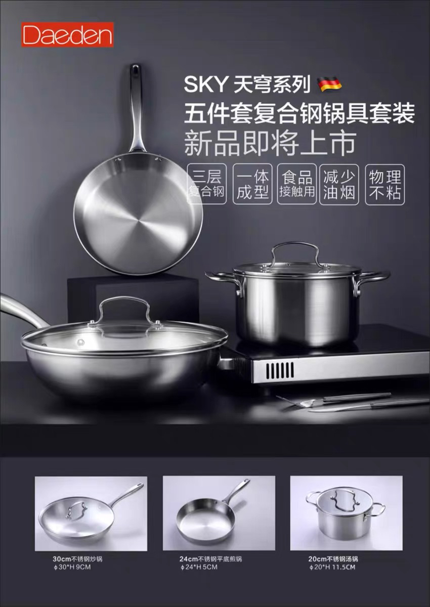 德国戴德不锈钢锅具套装无涂层厨房炒锅平底煎锅汤锅组合五件套