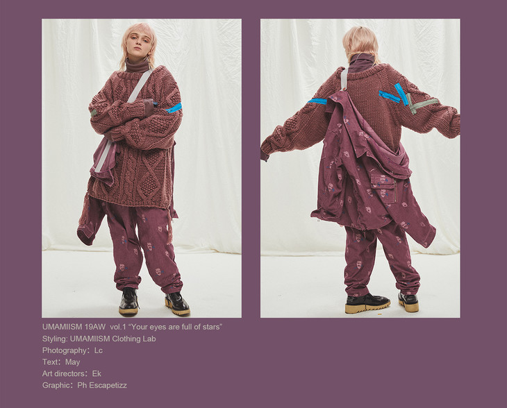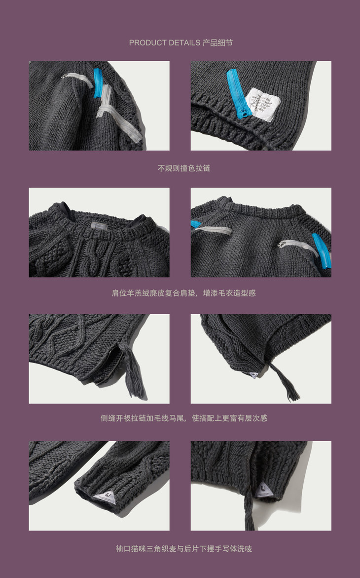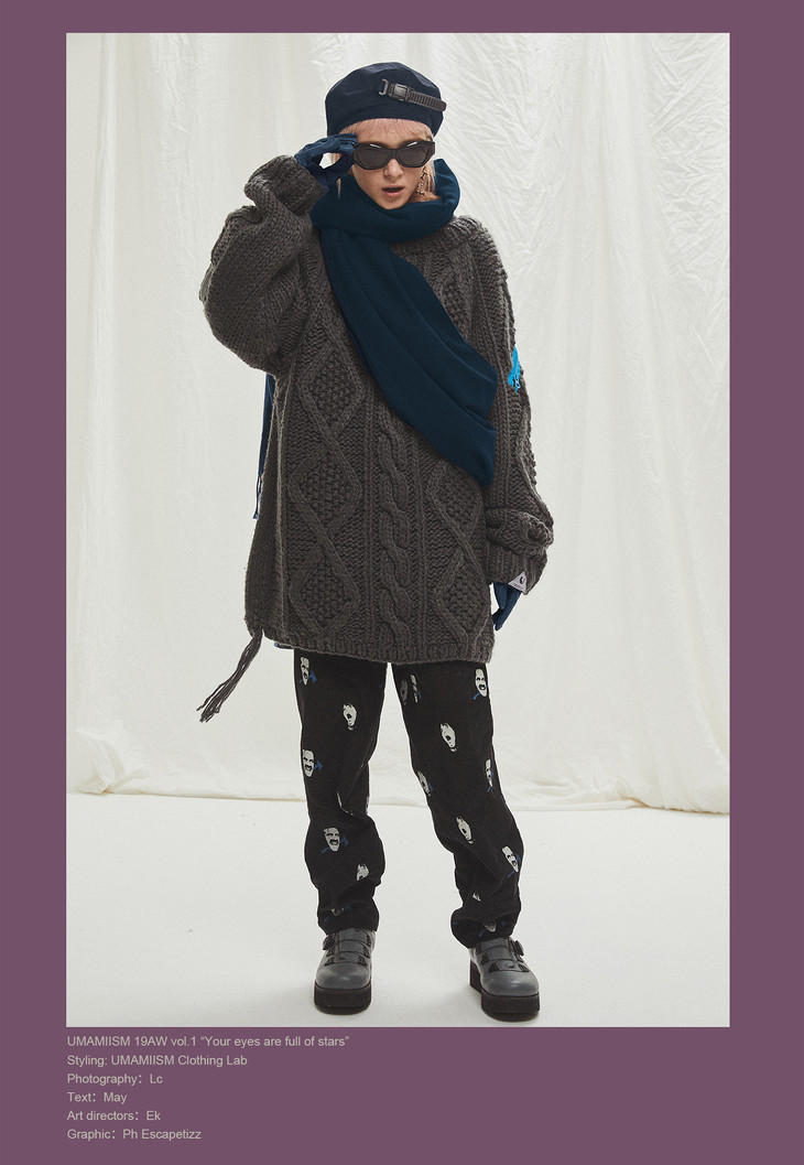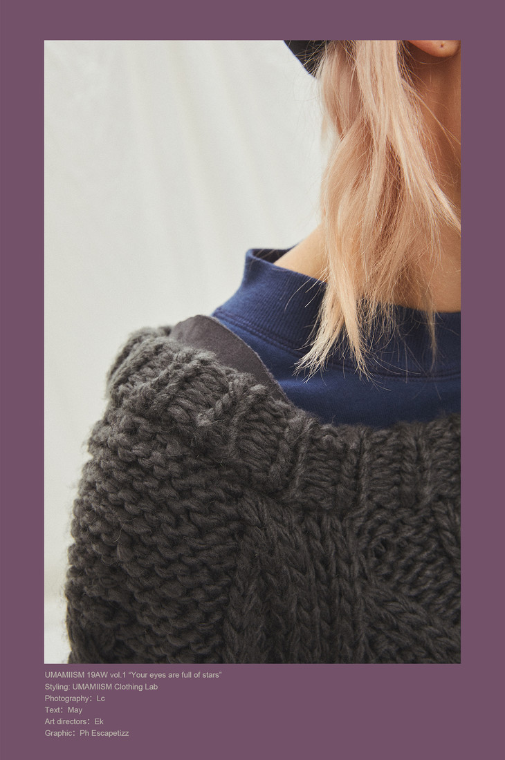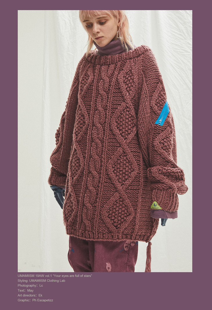 UMAMIISM UM19AW-M1971 棉服厚度复古粗纱线拉链装饰粗针麻花套头长袖手打毛衣
