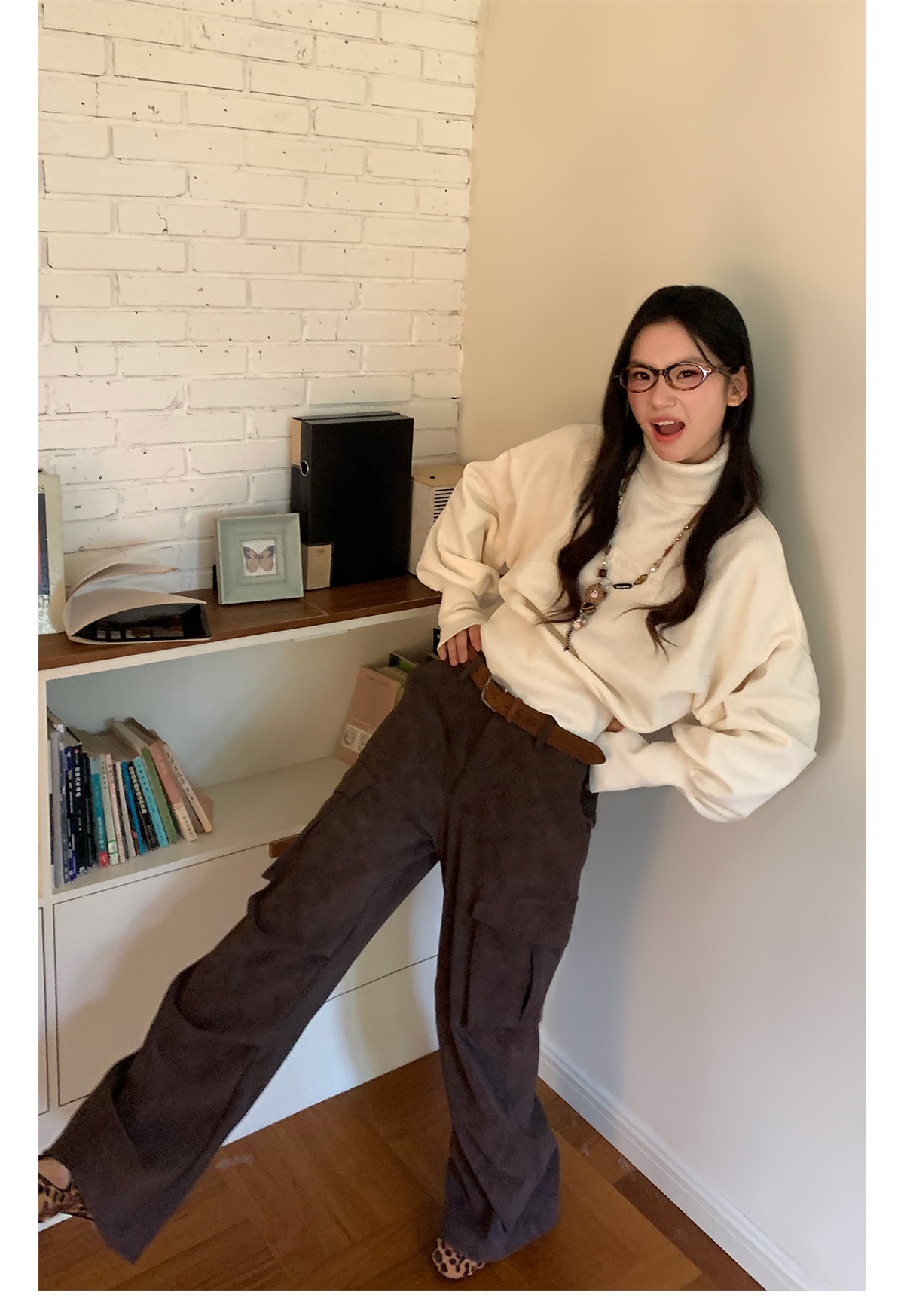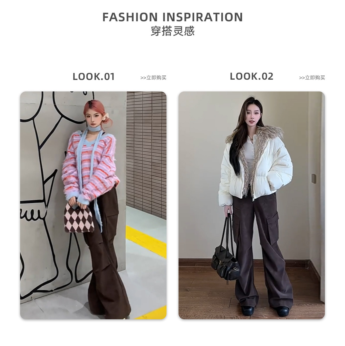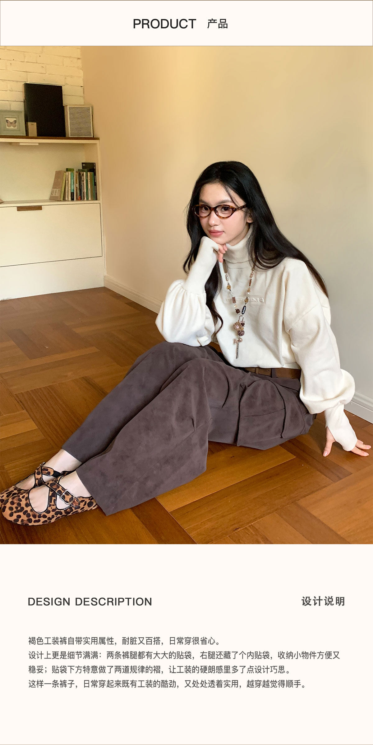 FTT FlyTheTruth『口袋曲奇』 休闲裤秋冬褶皱大口袋咖色工装裤子