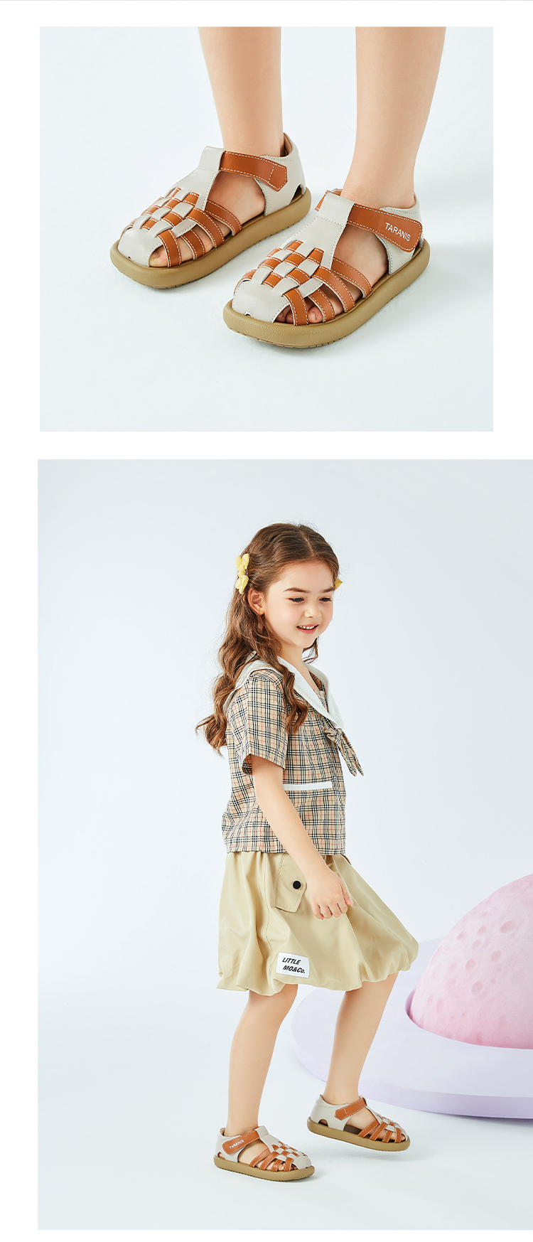 泰兰尼斯夏季小童段复古罗马编制凉鞋M11X3B2748