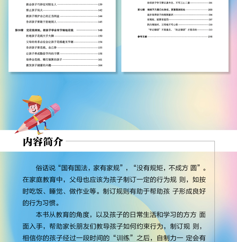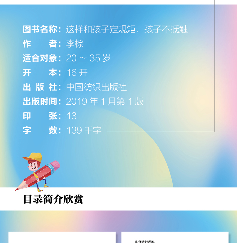 《这样和孩子定规矩,孩子不抵触》从教育的角度,以及孩子的日常生活和学习的方方面面入手,帮助家长朋友们教导孩子如何约束行为,制订规则,相信你的孩子经过一段时间的“训练”之后,自制力一定会有所提升。