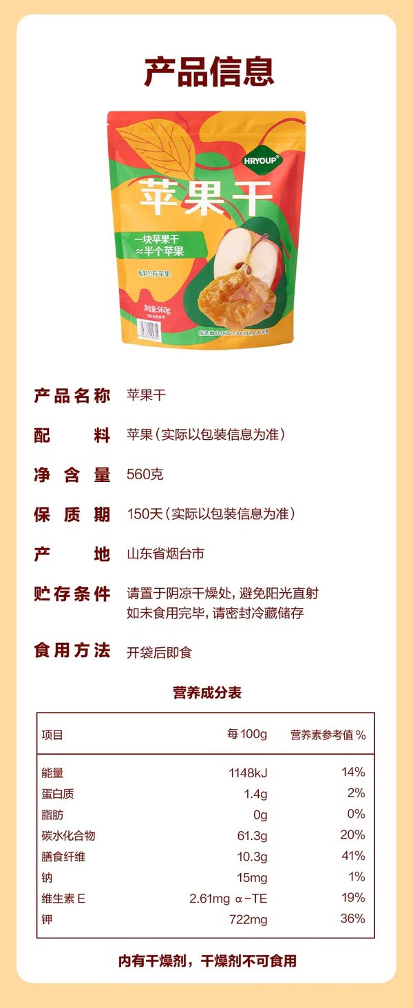 山姆HRYOUP苹果干 560g