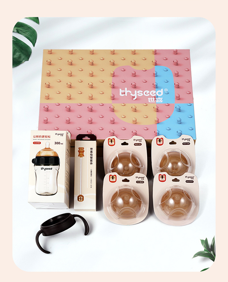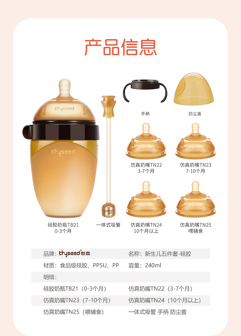 世喜新生婴儿仿母乳实感防胀气硅胶奶嘴奶瓶把手重力球吸管五件套